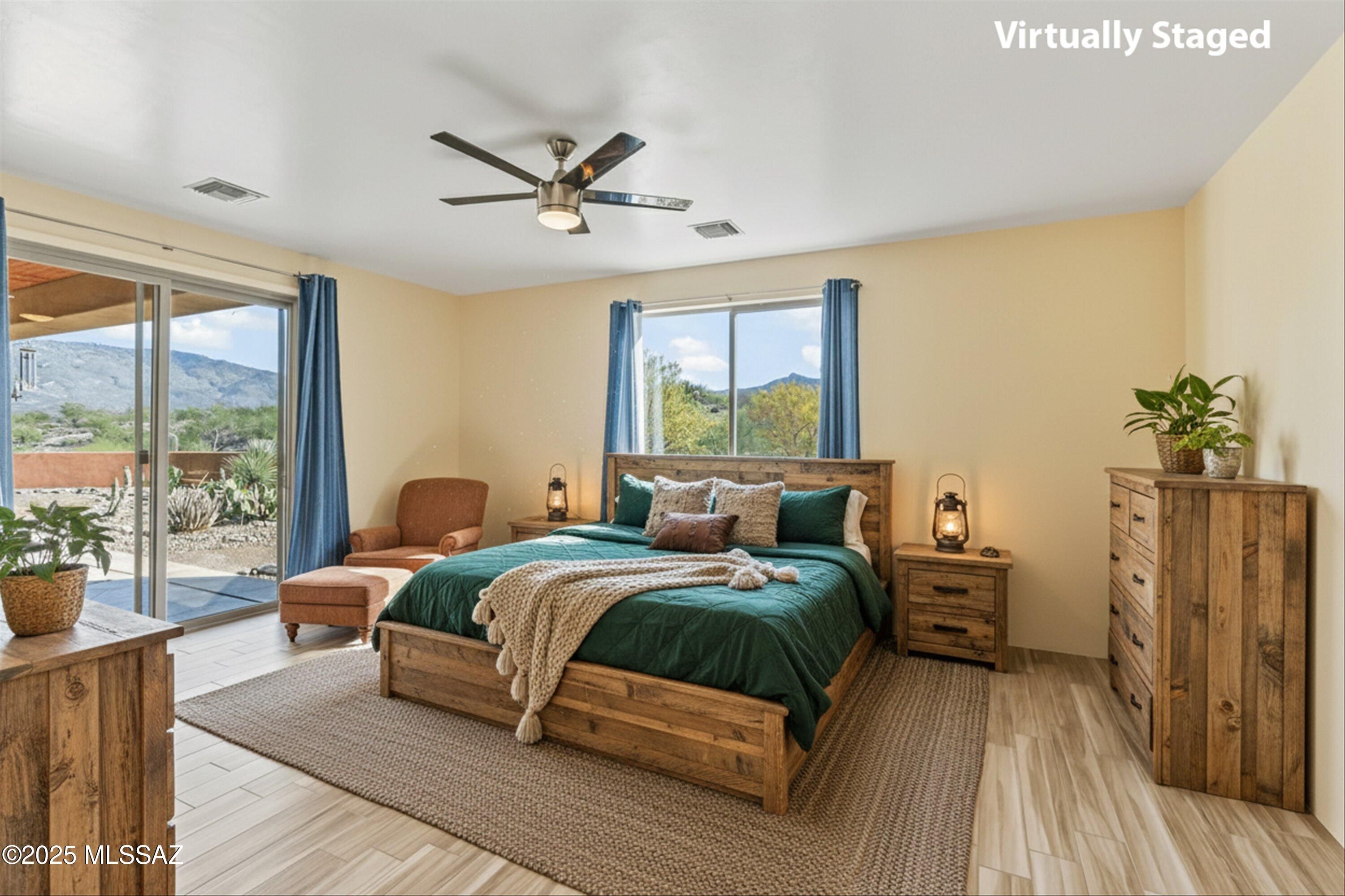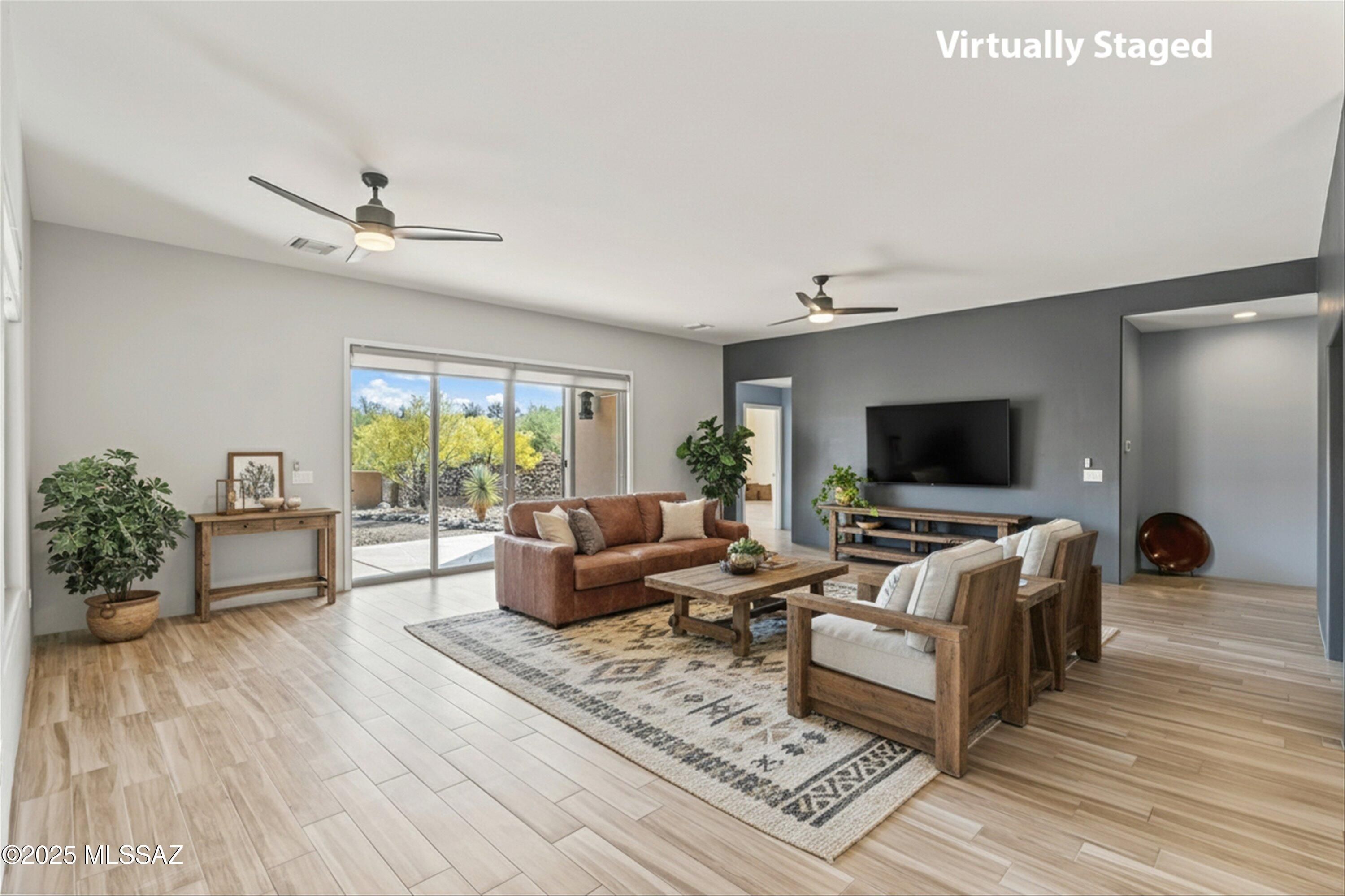 Range price, seller will accept or counter offers between $599,900-$639,900. Rare find in Academy Village! Double lot, 1 HOA fee, .41 acre offers plenty of room to build a casita & provides privacy. Spectacular views from every room in this original owner home. Bright, open floor plan features artistic elements & is perfect for entertaining. SW contemporary design includes wood look tile flooring throughout, ceiling fans, quartz countertops, 5 burner gas cooktop, island, & black S/S appliances. Spacious primary bedroom w/sitting area, luxury bath & walk in closet. Enjoy a spacious front courtyard w/handcrafted Gabion wall, perfect for sunset viewing. Experience year round Tucson living on your wrap around slate patio perfect for outdoor dining or just taking in majestic mtn views!!