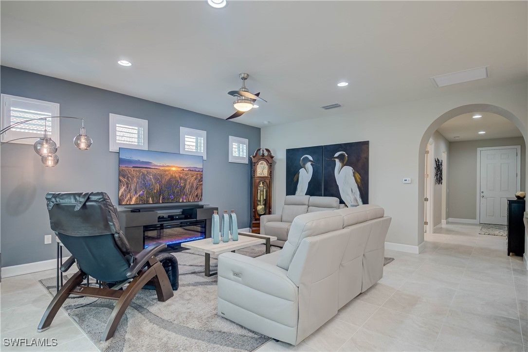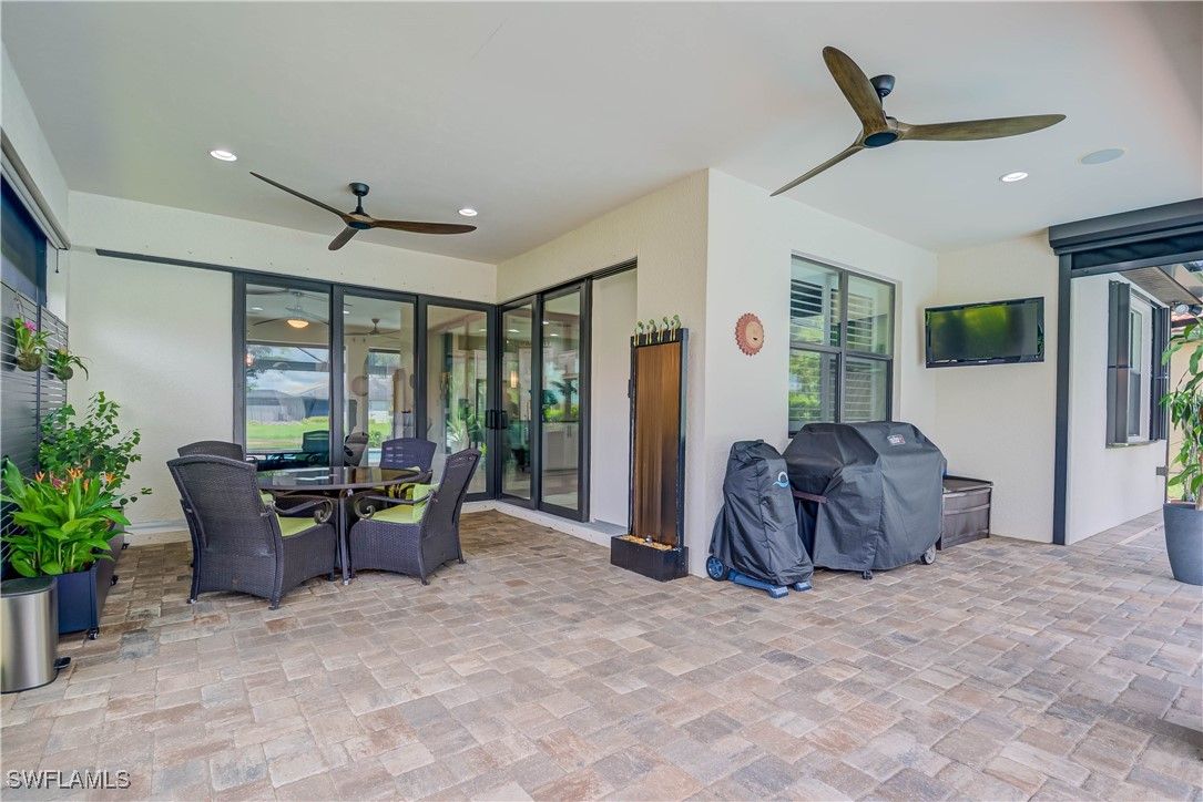 Welcome to 7938 Guadiana Way, a stunning and extensively upgraded Summerwood home situated on a premium lot in Del Webb Naples, one of the area’s premier 55+ communities. This beautifully enhanced 2+Den residence offers exceptional privacy and serene views of two waterways, located just steps from the community walkway. From the moment you arrive, the home stands out with new professional landscaping, exterior uplighting, fresh interior and exterior paint, and decorative interior shutters that add elegance throughout. Inside, the well-designed floor plan includes a spacious den with new French doors, a large laundry room, and numerous upgrades such as zero-edge doors and an installed home generator switch for added peace of mind. The epoxy-finished garage provides parking for two cars, dedicated golf cart parking, and over-the-garage storage—perfect for enjoying the Del Webb lifestyle. The outdoor living space is equally impressive. Sliding glass doors lead to an extended lanai with sealed pavers, a heated saltwater pool, a panoramic picture-window pool cage, and a Storm Smart electric roll-down hurricane shutter. This inviting retreat is ideal for entertaining or relaxing, with beautiful lake views and a built-in sound system on the lanai. Additional enhancements include new landscaping, decorative shutters, and exterior uplighting, all of which elevate the home’s curb appeal. Located in the highly desirable Del Webb Naples 55+ community, residents enjoy resort-style amenities, including a state-of-the-art recreation center, lap pool, infinity pool and spa, pickleball, tennis, billiards, and more. The home is minutes from Panther Run Golf Course and a short drive to the Ave Maria Town Center, which offers dining, shopping, community events, and university activities. Naples’ world-famous beaches and fine dining are less than an hour away. Offering luxury, comfort, and a premium Florida lifestyle, this move-in-ready home is a must-see—schedule your private showing today. X Flood Zone- so NO flood insurance needed! SELLER is crediting the BUYER $4000.00 at closing towards CLOSING COSTS!