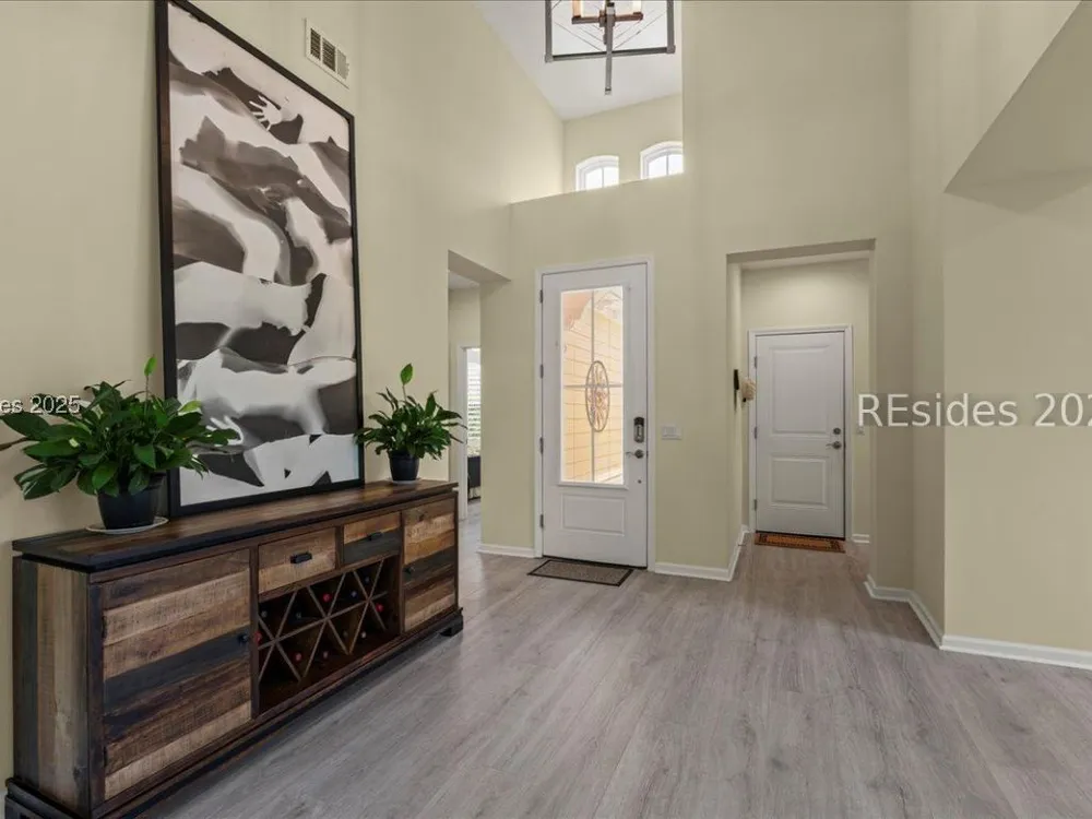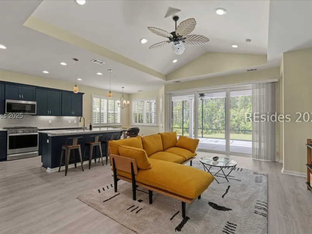 Welcome to Paradise! This immaculate Parrot Model is 3 bedroom, 2 bath, with an extended screened lanai with lagoon views that is perfect for relaxing or entertaining. This Latitude Margaritaville home features an oversized foyer, stunning kitchen, tall ceilings, wide plank LVP flooring, and TONS of natural light throughout. Tons of greenspace next to the home -- you don't have to worry about someone building next to you! Latitude Margaritaville is a gated 55 and better community with resort-style amenities that include a movie theater, restaurants/bars, dog park, pools, tennis & pickleball courts, walking paths, and more!