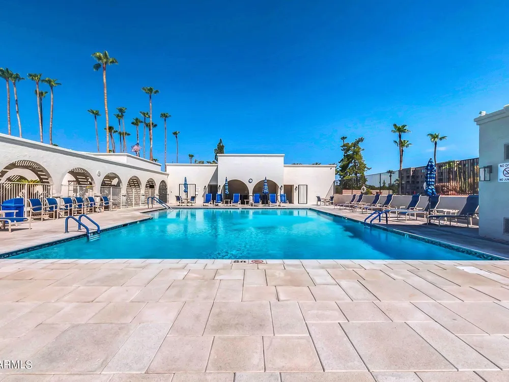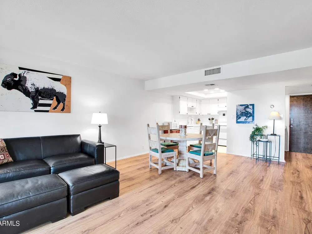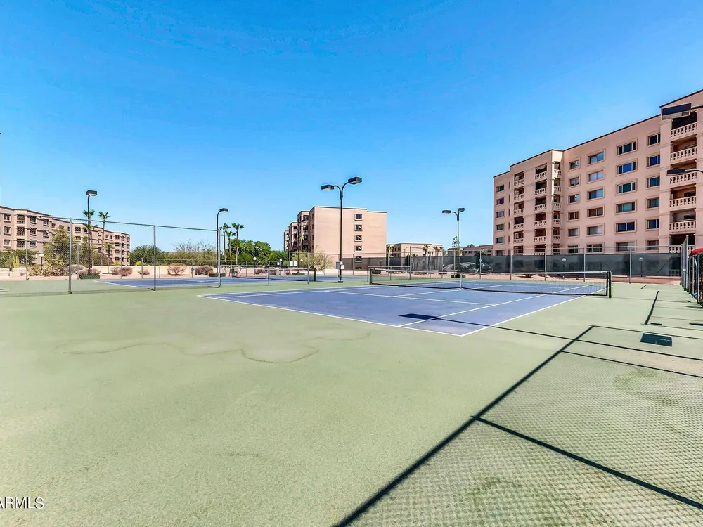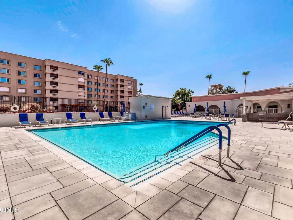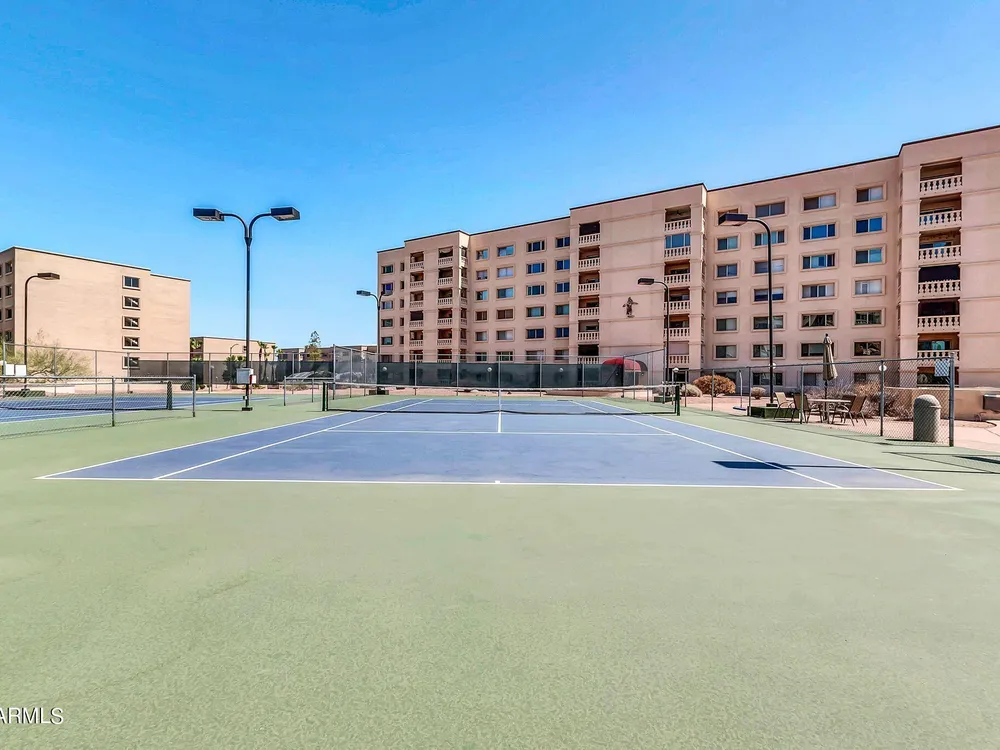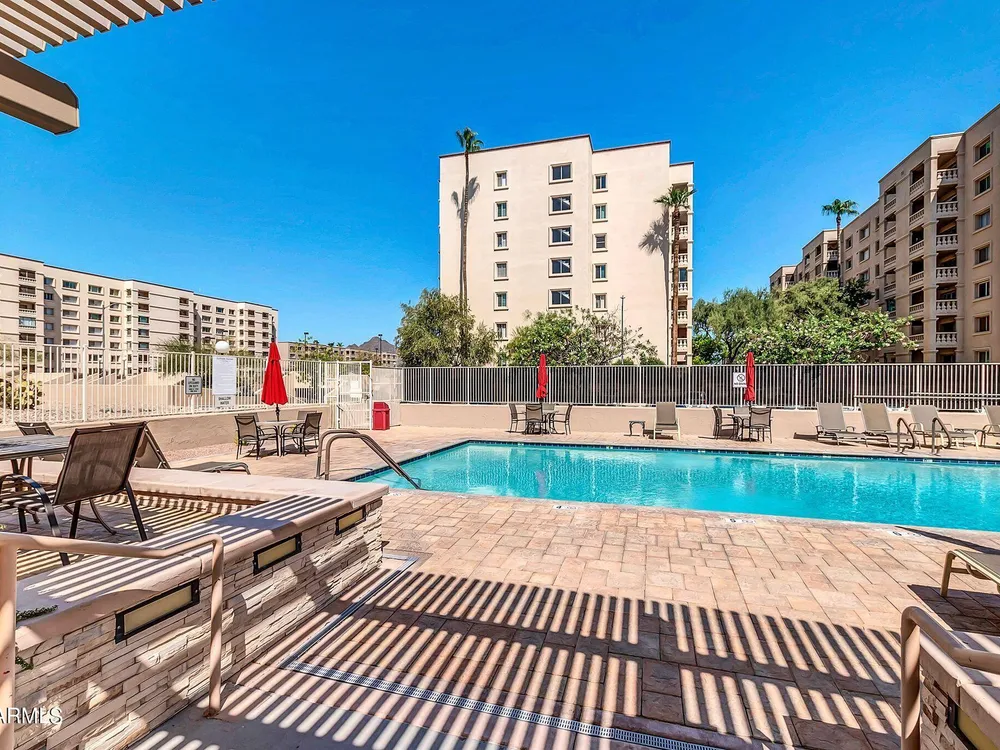 Check out this Scottsdale Gem! A 1 bed/1 bath on the 5th floor with stunning mountain views and it comes fully furnished! This location is spectacular! Near the Scottsdale Waterfront you can enjoy a plethora of restaurants, nightlife, shopping, parks, and cultural events. Near 3 grocery stores and adjacent to the Scottsdale Green Belt. Secure location with guarded entry and underground parking. HOA fee covers AC/Heat, Water, Trash, and All Amenities include 3 pools, a spa, 2 tennis courts, 9-hole golf course, library, ceramics and art studios, fitness center, billiards/ping-pong room, and a wood shop. WOW! Parking Space #41 in Garage #26. 5th floor Community Laundry ($0.50/wash & $0.25/dry). Dogs under 20 lbs. allowed. Rentals allowed after first year. Storage locker approx. 3'x5'.
