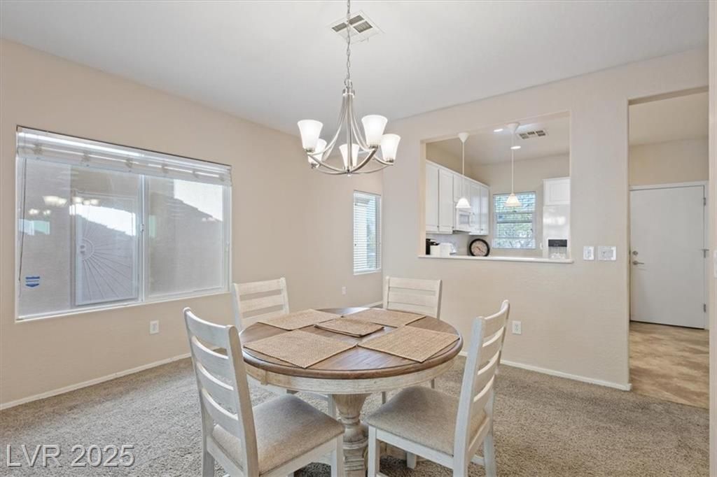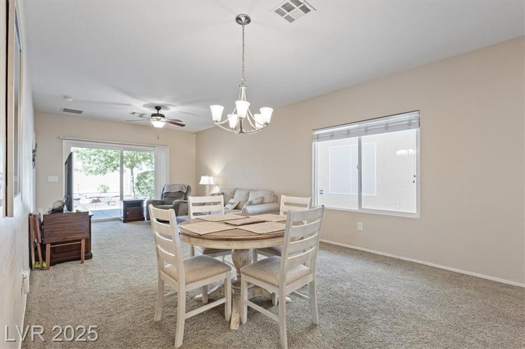 Welcome to Sun City Aliante, an active 55+ community! This charming 3-bedroom, 2-bath home offers 1,246 square feet of comfortable living space and is perfectly situated on a quiet cul-de-sac lot. The spacious great room provides an open layout for living and dining, ideal for entertaining or relaxing. Natural light fills the home, highlighting its warm and inviting feel. Enjoy all of the incredible community amenities, including a clubhouse, fitness center, indoor pool, tennis and pickleball courts, and scenic walking trails. Conveniently located near golf, shopping, dining, and entertainment.