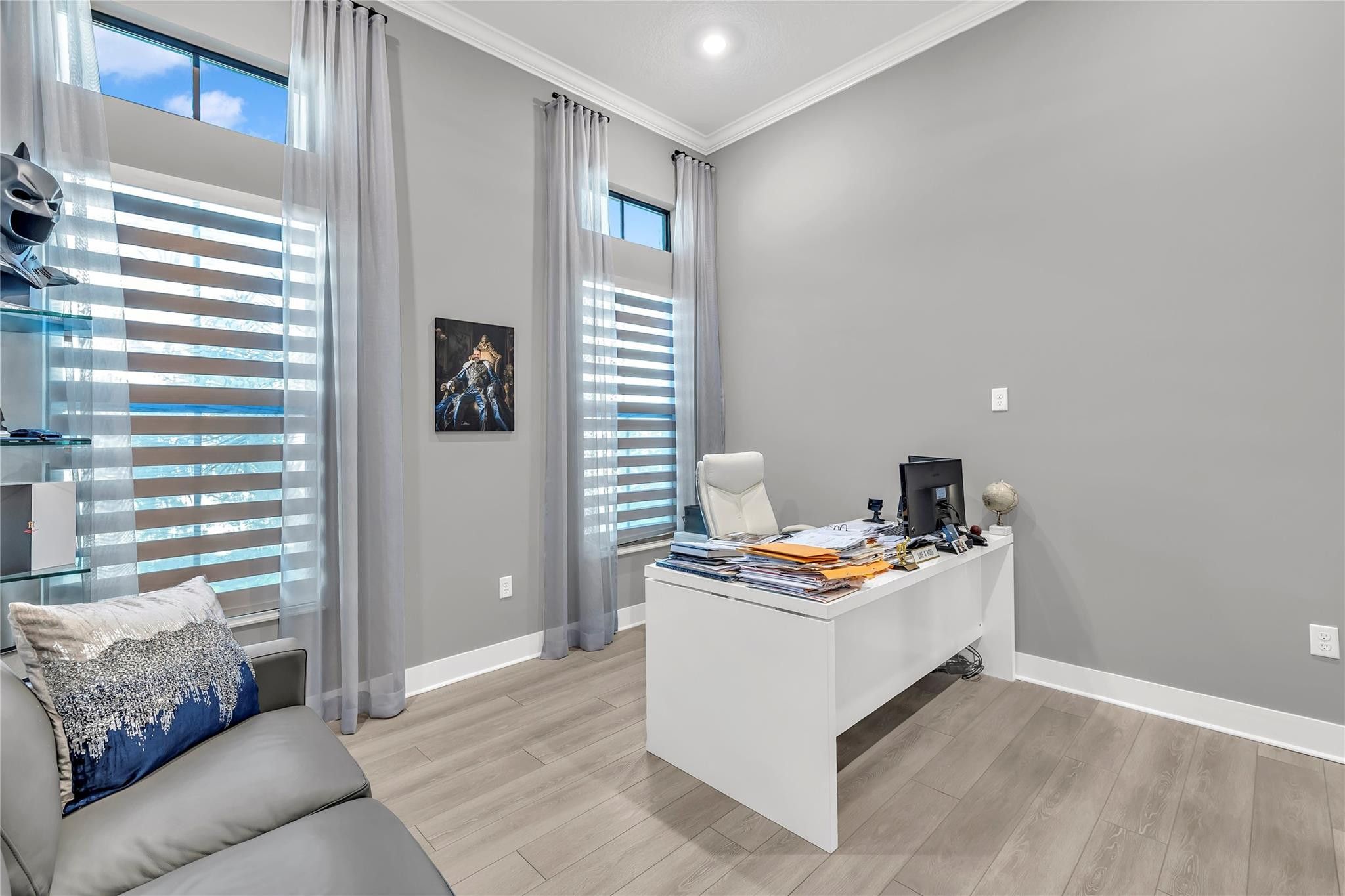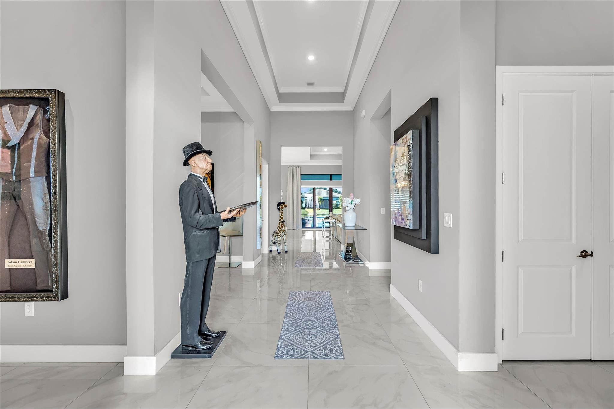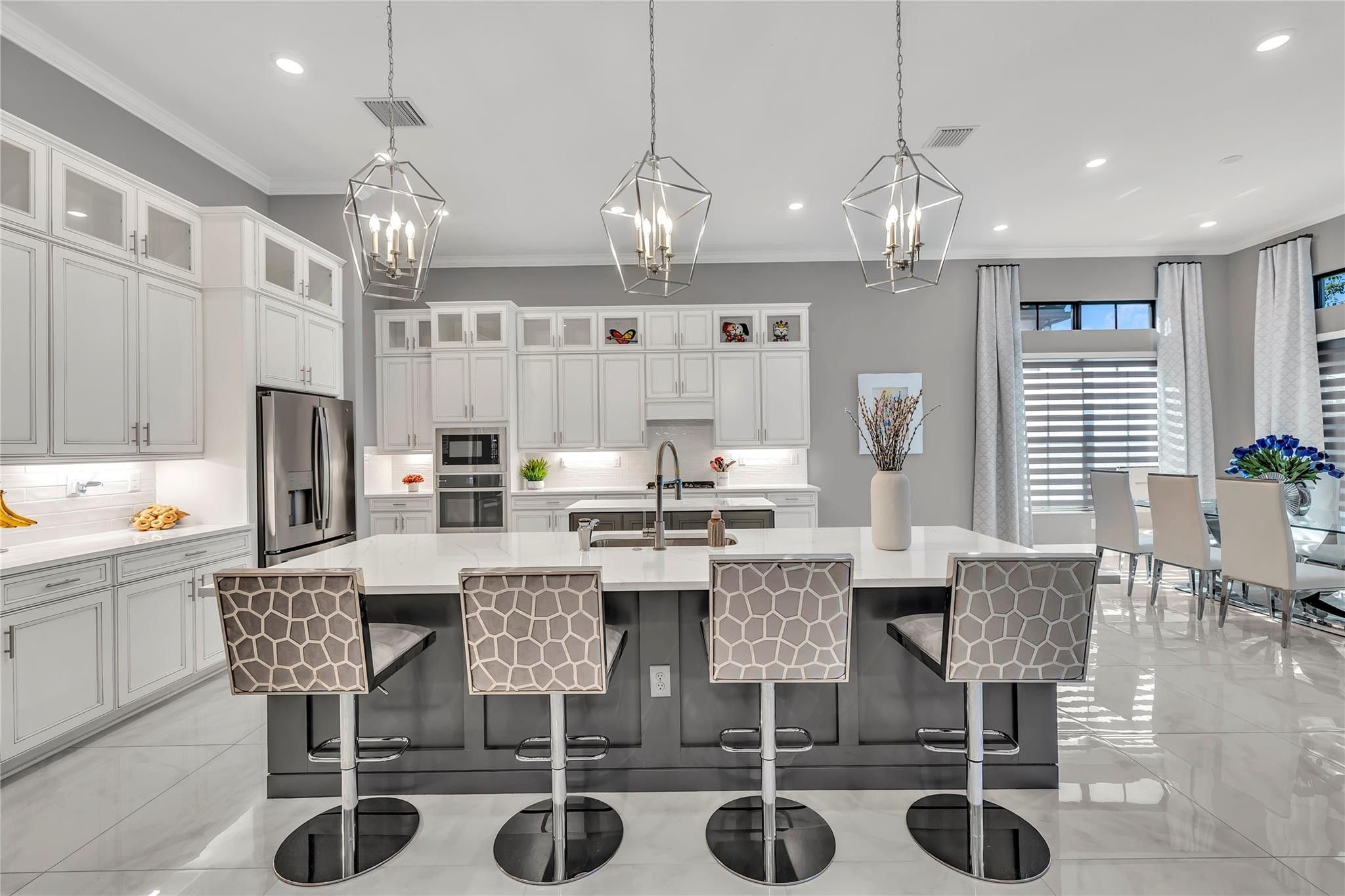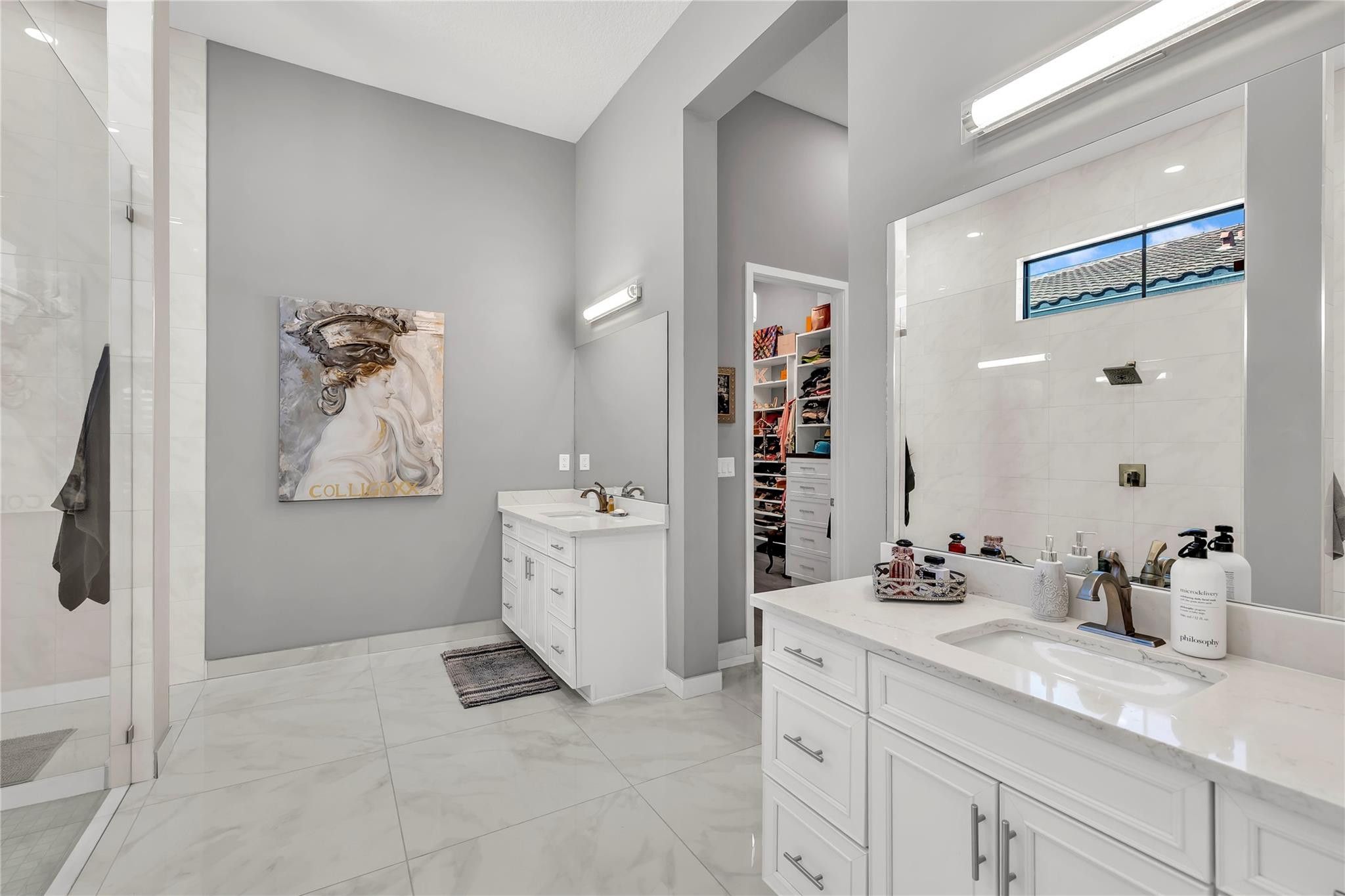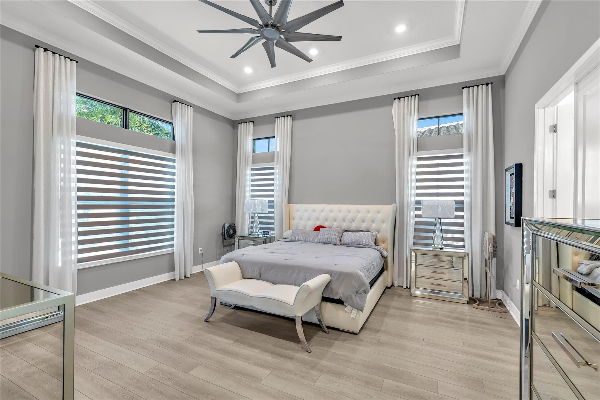 Flawless & no expense spared over $300K in upgrades. Ext Islamorada plan, 3 br + grand office convertible, 4.5 baths on a sensuous water lot w/ alluring pool. Vast kitchen w/Quartz counters, island, pantry, wall oven, SSappliances & breakfast area. Vast FR for gatherings. Premier suite features walk-in custom closet that is a mustsee, sitting area, dual sinks & walk-in shower. Fenced-in backyard w/astroturf, marble deck. Soaring ceilings, impact windows/doors, porcelain floors, security cameras, generator, custom garage, led lights, custom drapes, retractable screens in the back patio & on front doors. Aqualink. Resort Style Clubhouse, Theater, Card Rooms, Billiards, Ballroom, Lounge, On-Site Café, Fitness Center. Resort-Style Pool & Spa. Pickleball & more 55 & over. Walk to worship.