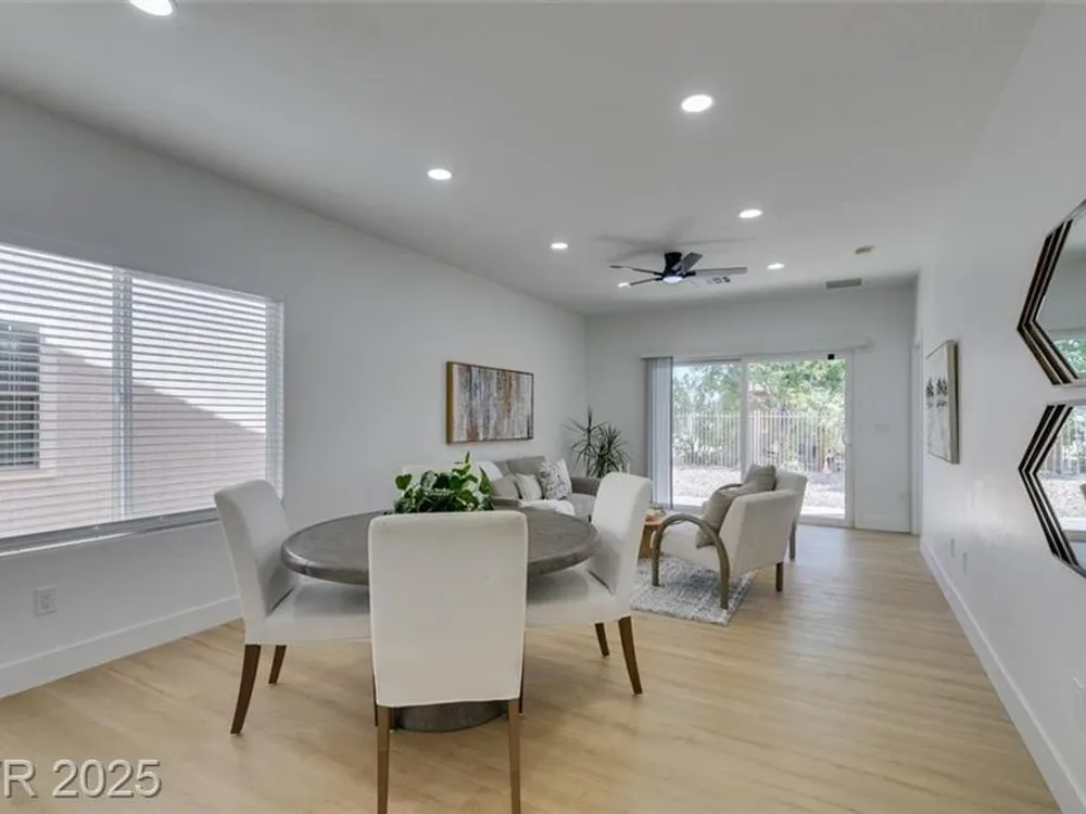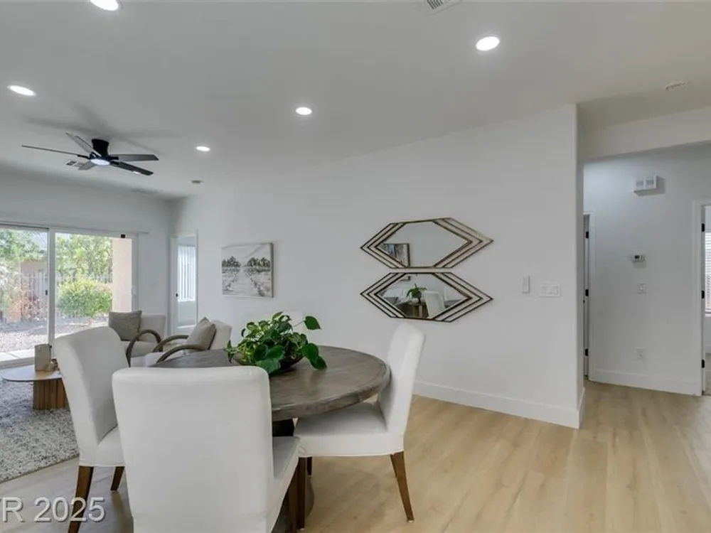 This spacious single story 3 bedroom house is conveniently located in the Sun City Aliante 55+ community, near shopping, dining with quick freeway access. It's equipped with stainless steel kitchen appliances, perfect for cooking gourmet meals and a large living/dining area combo, fit for entertaining. The house has brand new LVP and carpet flooring with fresh paint, new hardware and lighting through out. Don't miss out, schedule your showing today!