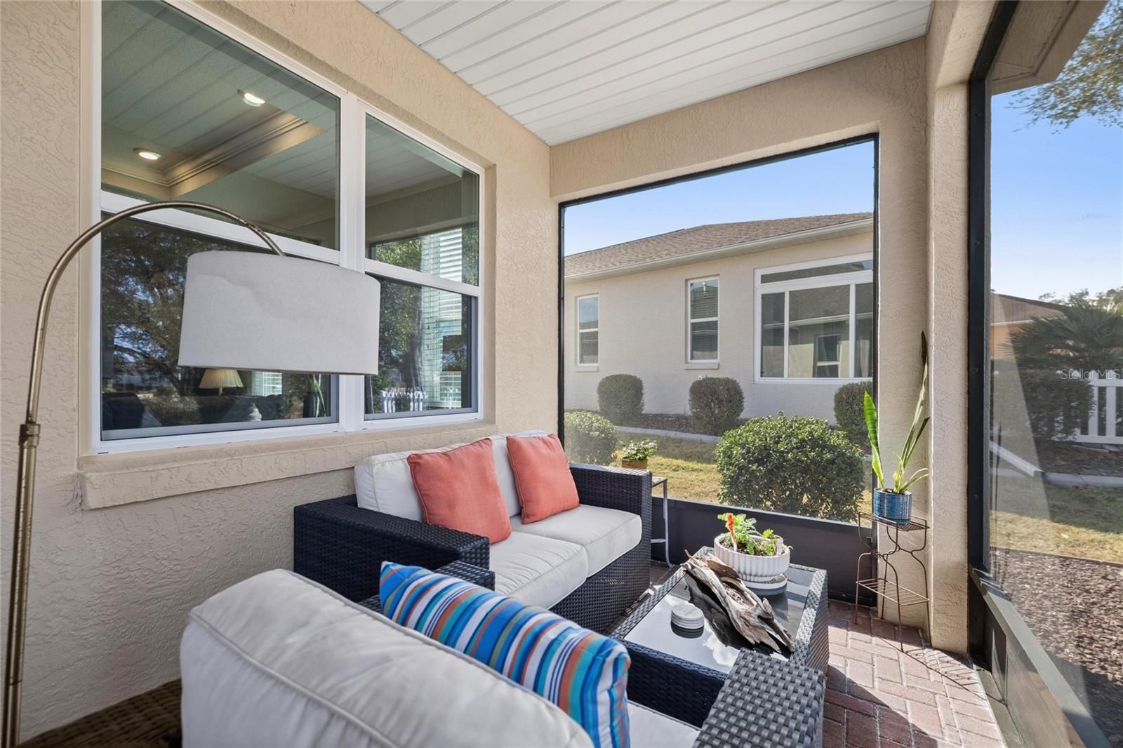 Warm & Inviting Former Model Home in Indigo East — Upgraded, Smart, and Beautifully Situated Welcome to Indigo East within On Top of The World, a premier 55+ community in Ocala Florida. Offering exceptional amenities and recreational opportunities, residents enjoy access to over 17 miles of walking trails, extensive fitness programs, weekly entertainment, three golf courses, and numerous resident clubs. Lightly lived in, this beautifully appointed Ginger floor plan presents like new. Having been originally built as a model home, it features numerous upgraded finishes packaged in 1,737 square feet of comfort, and style. A generous brick paver front porch, striking blue entry door with coordinated shutters bid you a warm welcome to your new home. Step inside and you’re greeted by a foyer with built-in mirror accents and detailed wall trim for an elegant first impression. To the right of the foyer are the guest bedroom and bath, the bath featuring Cambria quartz counter tops, a glass shower enclosure, and designer finishes. The bright, open living spaces of the dining room and great room are enhanced by elegant tray ceilings, extensive molding and detailing. The upgraded kitchen and stainless steel appliances make everyday living feel effortless. The attractive shaker style cabinets, tile backsplash, large Cambria Quartz island, and separate coffee & wine bar make this home ideal for entertaining. The owner’s suite is a true retreat, featuring tray ceiling detail and custom wall millwork, plus a beautifully upgraded en-suite bath with a frameless glass shower enclosure featuring both a standard showerhead and a soothing rainforest overhead option. Out back, a custom-built patio with a fire pit creates the perfect setting for relaxing evenings or casual gatherings. The property backs onto an open area with no neighbors behind you, giving the space a rare sense of privacy and openness. The home’s location, just four houses away from a fitness center and pool, makes it easy to enjoy the Indigo East neighborhood’s amenities whenever you like. This Ginger model home features convenience and peace of mind, incorporating smart-home features such as security cameras, motion detection, a smart thermostat, smart garage door opener, smart front-door lock, Ring doorbell, and smart irrigation system all working together to keep life simple and secure. This is an exceptional opportunity to own a highly upgraded like-new home in one of Ocala’s most desirable active adult communities.