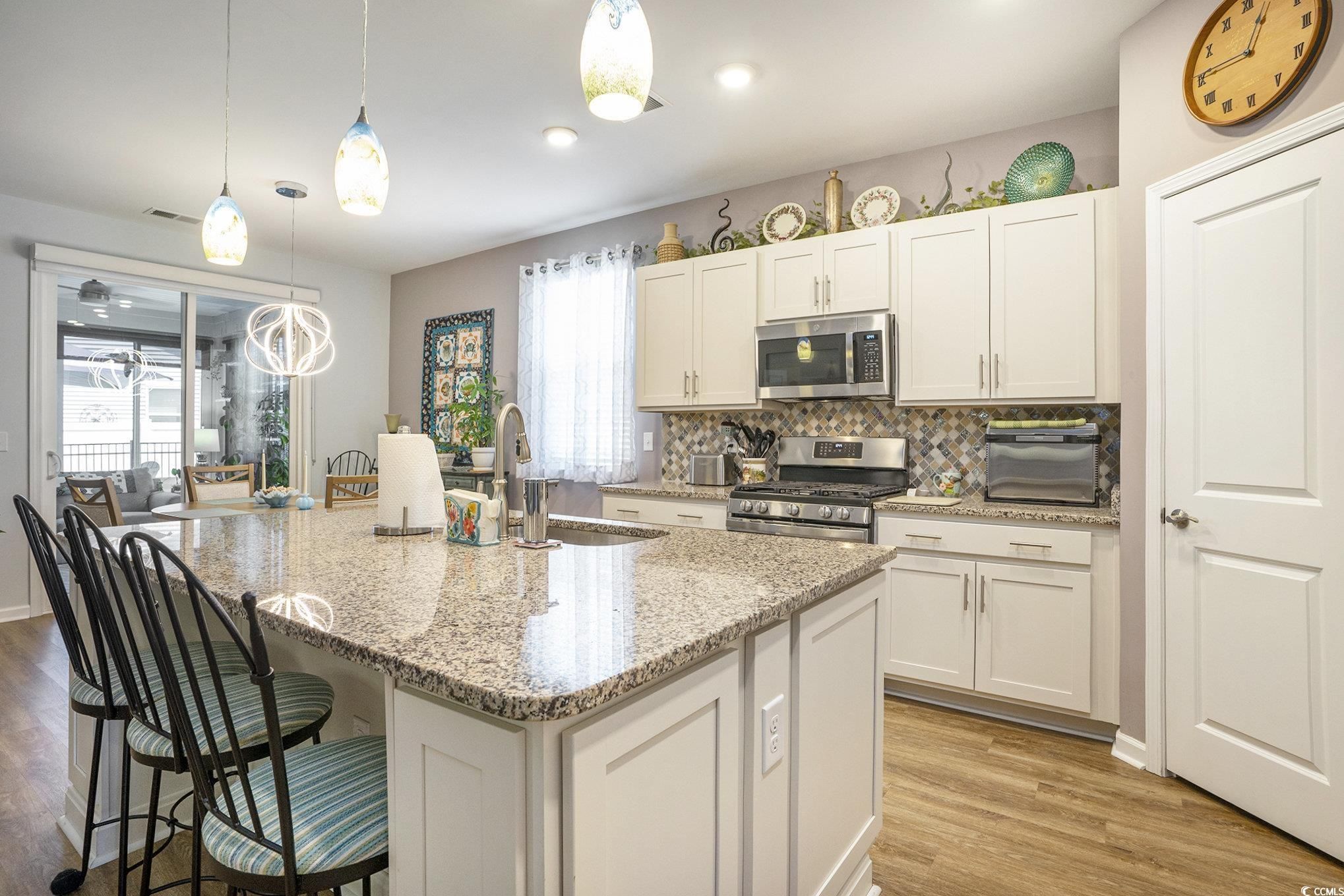 Welcome to this stunning 4-bedroom, 3-bathroom home in the highly sought-after Heritage Park subdivision of Longs, SC. From the moment you arrive, you’ll be greeted by beautifully maintained landscaping and exceptional curb appeal that sets the tone for the rest of this home. Step inside, and you’ll immediately notice the bright, open layout that fills the main living space with natural light. The seamless flow leads into the four-season room, a sunlit retreat which can be enjoyed year-round, perfect for morning coffee, reading, or enjoying peaceful backyard views. The heart of the home is the chef-inspired kitchen, complete with sleek stainless steel appliances, a gas range, stylish tiled backsplash, granite countertops, and a pantry. As part of a natural gas community, this home offers both efficiency and comfort for everyday living. The main-floor master suite is a private retreat, featuring tray ceilings, a generous walk-in closet, and a spa-like ensuite bath with dual vanities and a walk-in shower. Upstairs, you’ll find a spacious second living area that can serve as a media room, playroom, or lounge. The fourth bedroom and a full bathroom are also located upstairs, providing comfort and privacy for guests or family members. Two additional bedrooms and another full bathroom are located on the main floor, completing this well-designed layout. Every detail of this home has been thoughtfully designed, from the bright, airy floor plan to the elegant finishes that make it truly stand out. Outside, you’ll enjoy a landscaped yard and access to fantastic neighborhood amenities, including a community pool, pickleball courts, bocce ball, and a dog park. Heritage Park offers the perfect blend of convenience and charm—just minutes from top-rated restaurants, shopping, golf courses, and, of course, the beach. This home combines space, style, and location into one exceptional package. Schedule your private showing today and discover why this Heritage Park gem is the perfect place to call home!