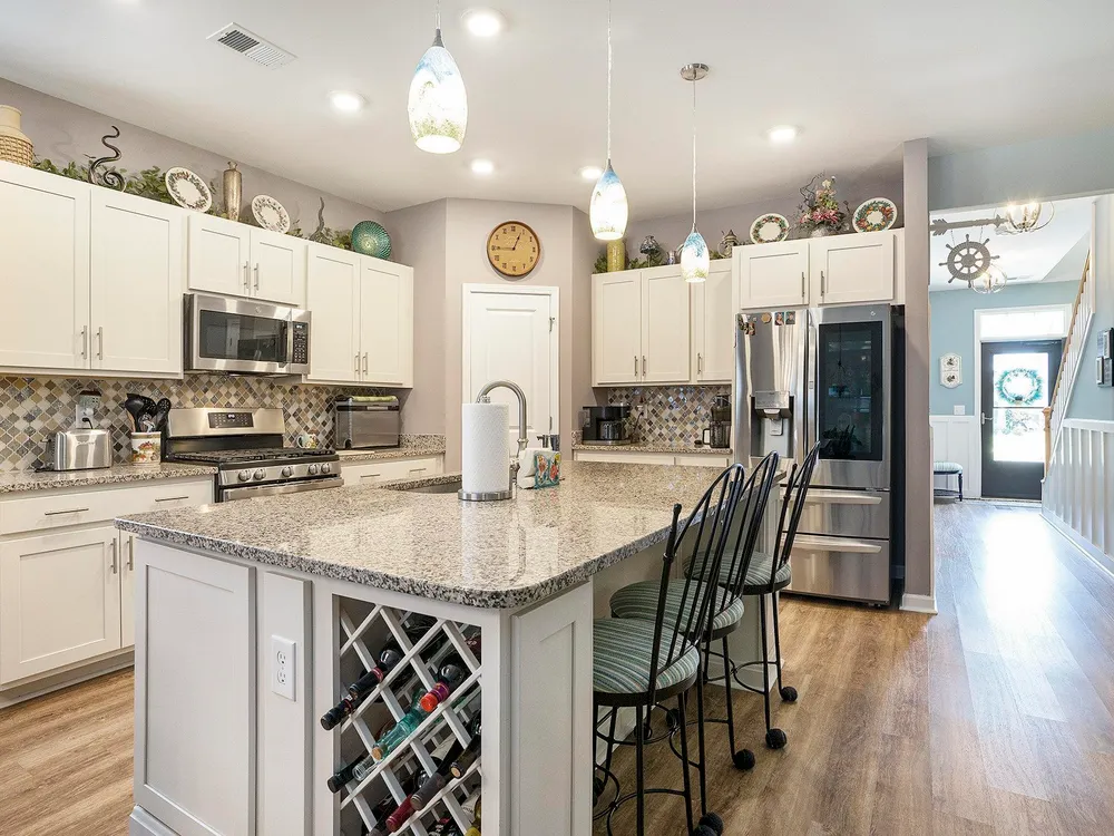- Breakfast Bar, Bedroom on Main Level, Entrance Foyer, Kitchen Island, Stainless Steel Appliances, Solid Surface Counters