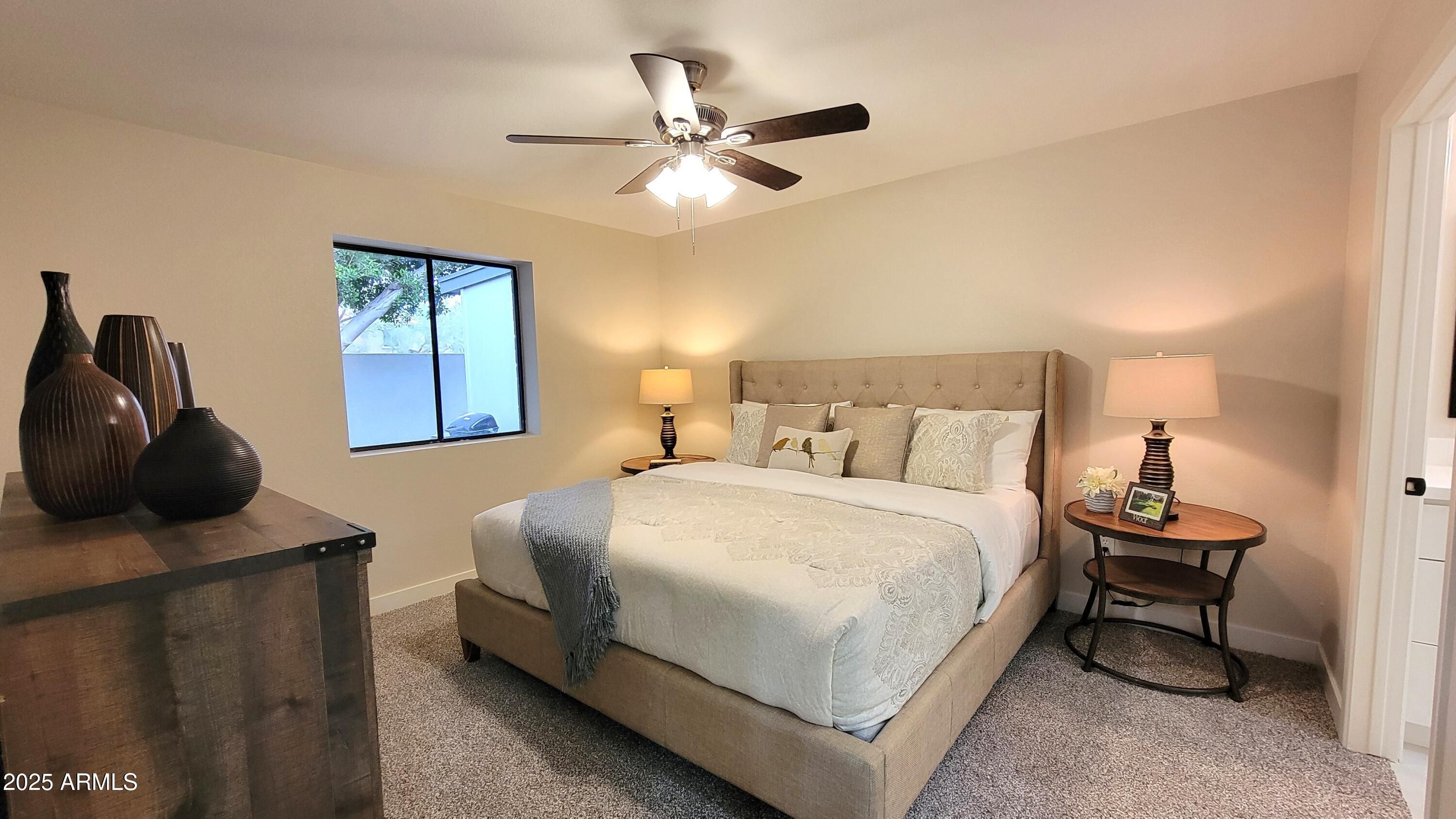 This gorgeous remodel is a must see! Need it fully furnished? Furniture is available on separate bill of sale. This townhome is 1130 sq. ft, has 1 bedroom, 1.75 bathrooms and a bonus room. The remodel includes: brand new cabinets with soft close drawers/doors, quartz countertops, two tone paint, carpet, vinyl flooring, recessed lights, tiled primary shower, stainless steel microwave, dishwasher & stove, door hardware, light fixtures, and more. 55+ community. Owner/agent.