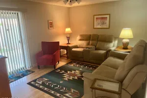 Great price for this remodeled Sunland Village East end unit condo. Some of the funrnishings will convey with purchase. 2BR 2BA split floorplan. 2022-2023: interior painted, countertops replaced, bathrooms remodeled, some flooring replaced, 8-10 inches of insullation added. windows have plantation shutters and metal privacy roller shades. A/C 2014. All the amazing SVE amenities !! Association takes care of maint, water, exterior, roof, garbage etc. Lock and Leave :) SORRY NO PETS. 55+ community. See SVE office for details.
