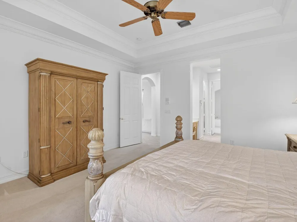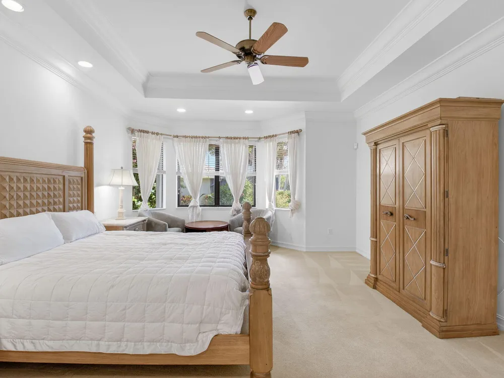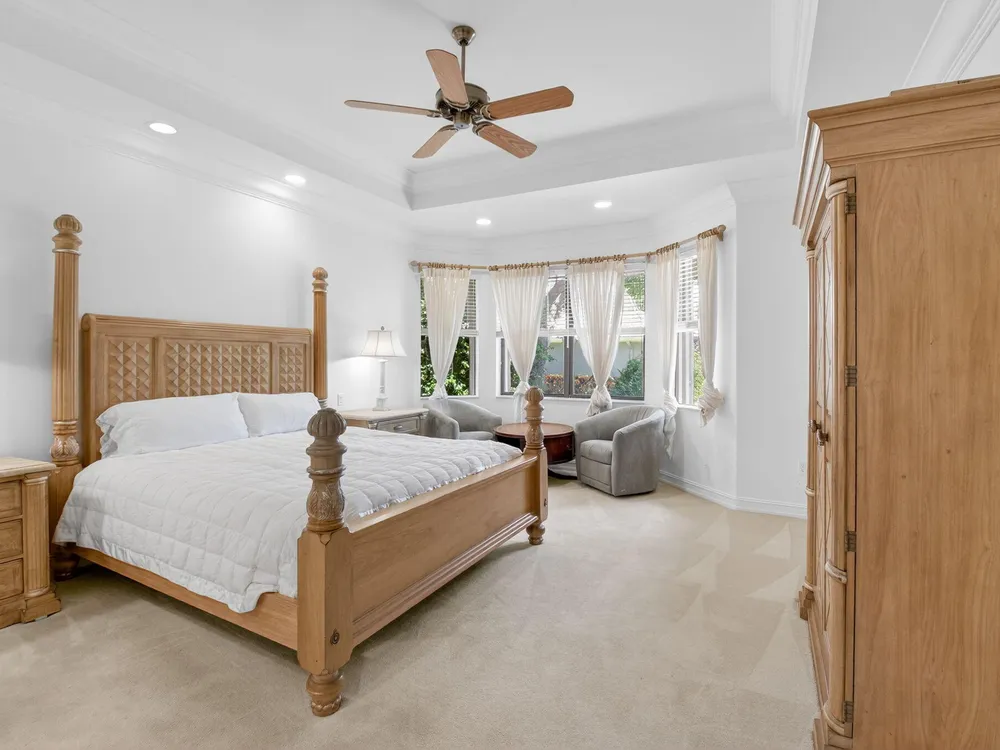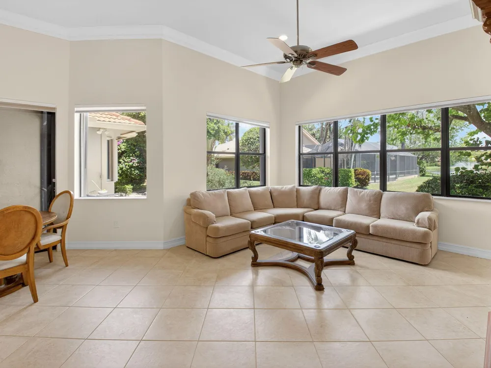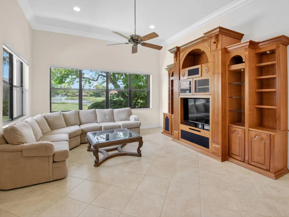 MOTIVATED SELLER!!!Welcome to the highly sought-after Palazzo Roma model, one of the most spacious and thoughtfully designed floorplans in Tivoli Reserve, a prestigious 55+ gated estate community in Boynton Beach. Ideally located with tranquil lake views, this expansive 4 bedroom, 3 bathroom residence with a 2 car garage offers a rare triple-split layout--perfect for multigenerational living, hosting guests, or creating dedicated work and hobby spaces. From the moment you enter through the elegant double-door entry with clerestory glass, you're greeted by soaring volume ceilings, a bright and open foyer, and abundant natural light streaming through oversized windows and sliding glass doors.