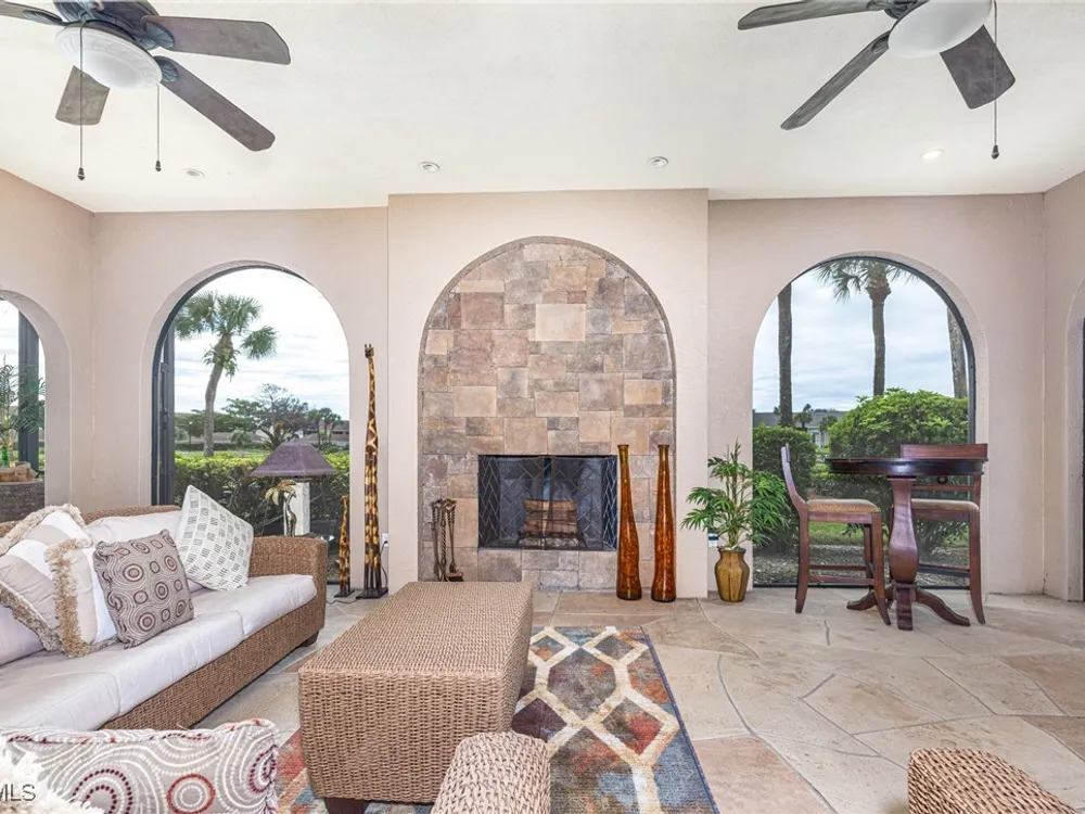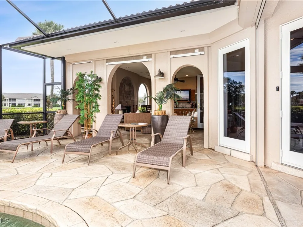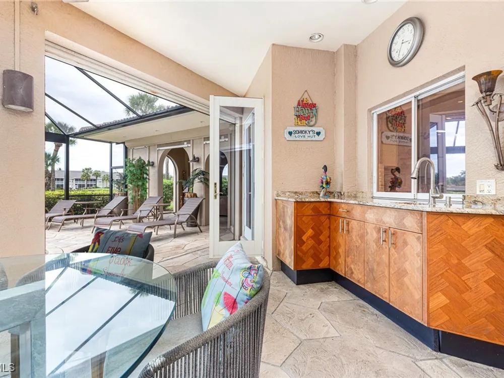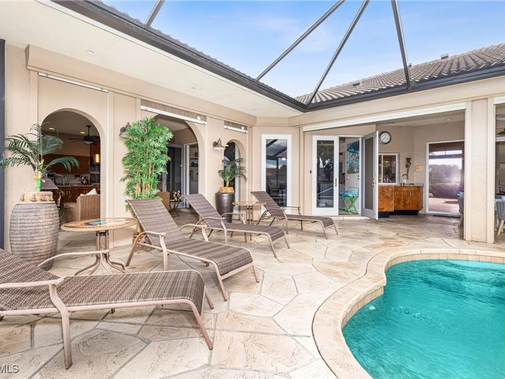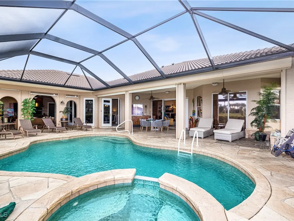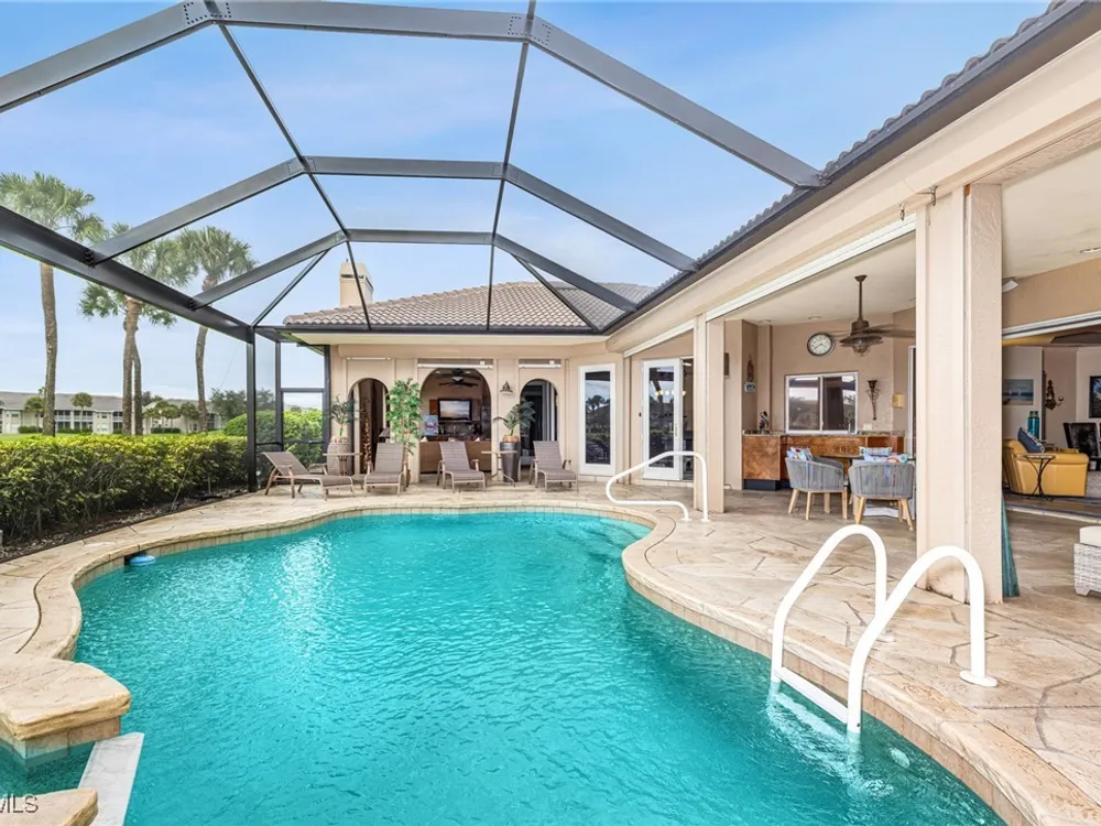 This exceptional home in Heritage Palms is truly one of a kind and possibly the best in the community. If you are seeking to enjoy outdoor living in Florida, look no further. This home features a stunning pool and spa with a "margarita ville" flair, as well as a new Florida room with a fireplace and outdoor kitchen that seamlessly blends indoor and outdoor living. Electric hurricane shutters make it easy to enjoy year-round. The picture window cage and pass-through from the kitchen add to your resort experience in your own home! Upon entering the home, you will be impressed by the elegant living room and dining room. The updated kitchen offers plenty of space for entertaining and opens to a comfortable family room. TV will magically appear out of your beautiful cabinet. There is also surround sound and intercoms throughout. High-end appliances, pull out drawers and a pantry that is to die for! The four bedrooms are split, allowing for two master suites on one floor, a rare find. The spacious home office is equipped with custom built-ins for a professional setting. Crown molding throughout, custom closets and plantation shutters add to the luxury that this home exudes. The floors are all wood or laminate, with no carpet in sight. Additionally, the home boasts a new roof and a three-car garage for all your toys. Offered turnkey, the home comes furnished with high-end furniture that will provide enjoyment for years to come. Situated at the end of a cul-de-sac overlooking ponds and golf, this home offers a private oasis. This is a unique opportunity to own a stunning home in Heritage Palms, a community that has received awards for its golf, restaurants, and amenities. Residents can enjoy 36 holes of bundled golf, a clubhouse, grill room, banquet room, fitness center, tennis courts, nine pools, and a brand new Lodge and Tiki bar set to open soon. Are you ready to start enjoying luxury living in paradise? Don't wait!