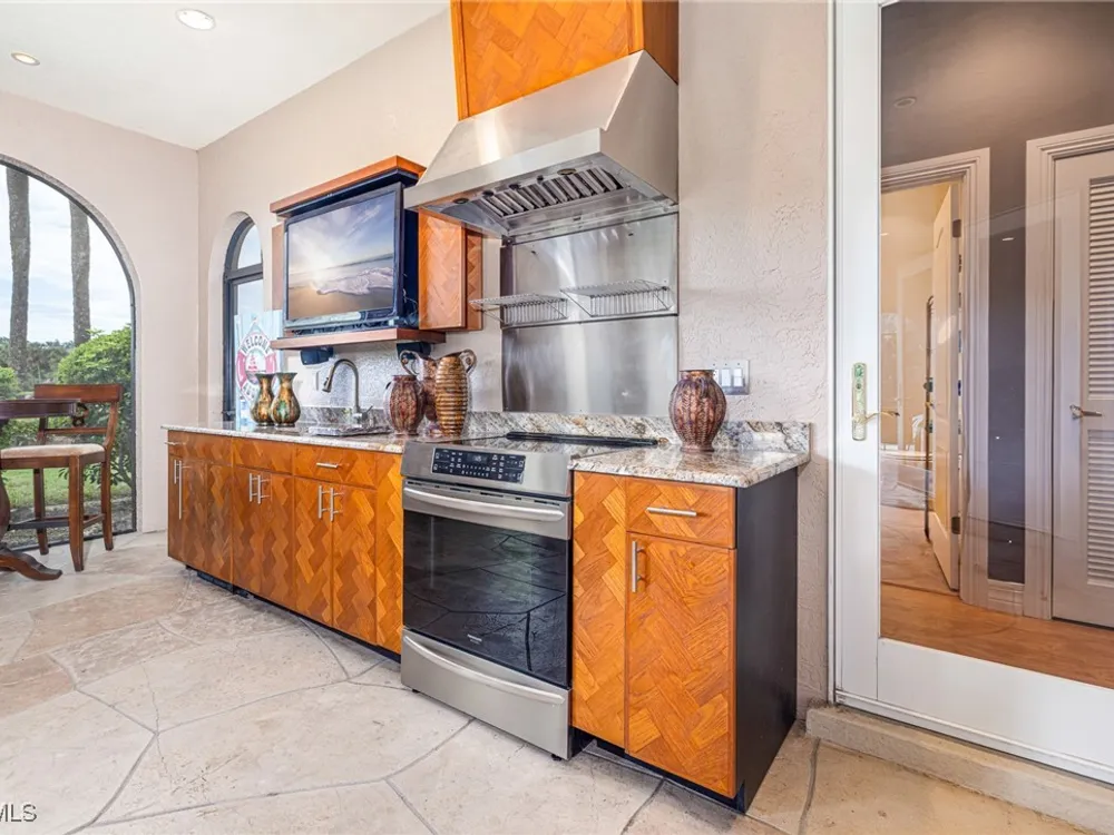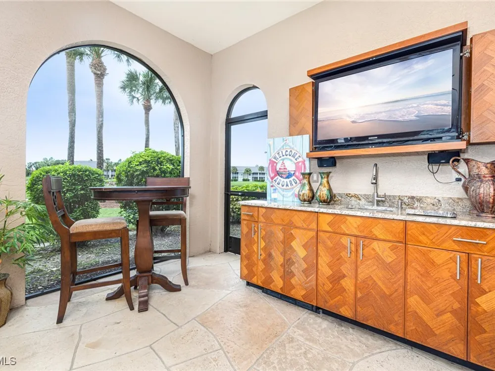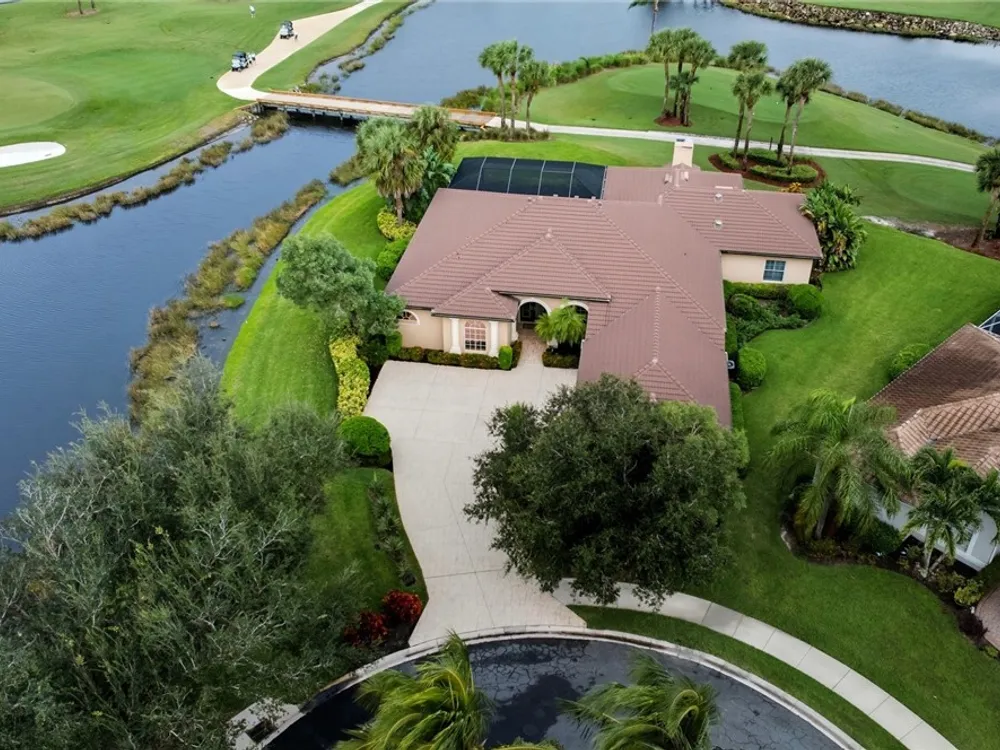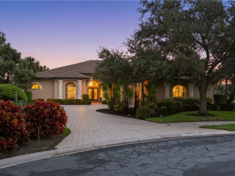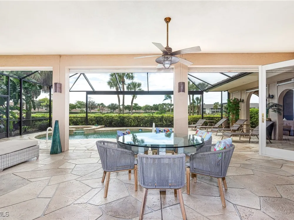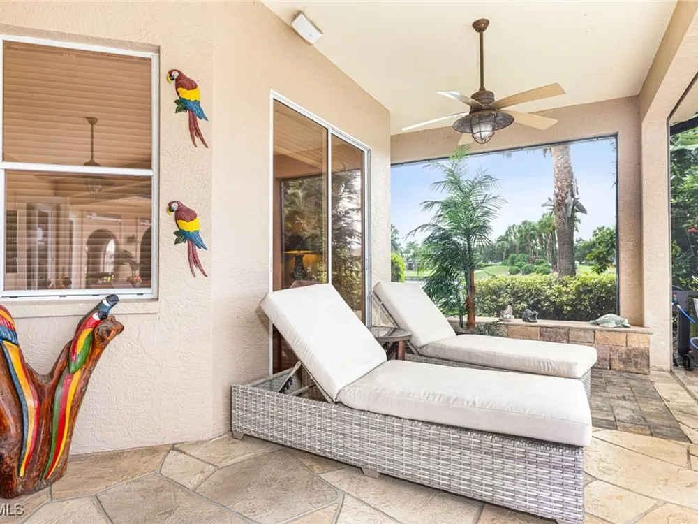 This exceptional home in Heritage Palms is truly one of a kind and possibly the best in the community. If you are seeking to enjoy outdoor living in Florida, look no further. This home features a stunning pool and spa with a "margarita ville" flair, as well as a new Florida room with a fireplace and outdoor kitchen that seamlessly blends indoor and outdoor living. Electric hurricane shutters make it easy to enjoy year-round. The picture window cage and pass-through from the kitchen add to your resort experience in your own home! Upon entering the home, you will be impressed by the elegant living room and dining room. The updated kitchen offers plenty of space for entertaining and opens to a comfortable family room. TV will magically appear out of your beautiful cabinet. There is also surround sound and intercoms throughout. High-end appliances, pull out drawers and a pantry that is to die for! The four bedrooms are split, allowing for two master suites on one floor, a rare find. The spacious home office is equipped with custom built-ins for a professional setting. Crown molding throughout, custom closets and plantation shutters add to the luxury that this home exudes. The floors are all wood or laminate, with no carpet in sight. Additionally, the home boasts a new roof and a three-car garage for all your toys. Offered turnkey, the home comes furnished with high-end furniture that will provide enjoyment for years to come. Situated at the end of a cul-de-sac overlooking ponds and golf, this home offers a private oasis. This is a unique opportunity to own a stunning home in Heritage Palms, a community that has received awards for its golf, restaurants, and amenities. Residents can enjoy 36 holes of bundled golf, a clubhouse, grill room, banquet room, fitness center, tennis courts, nine pools, and a brand new Lodge and Tiki bar set to open soon. Are you ready to start enjoying luxury living in paradise? Don't wait!