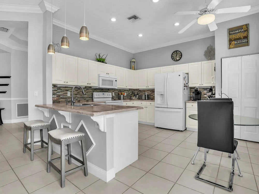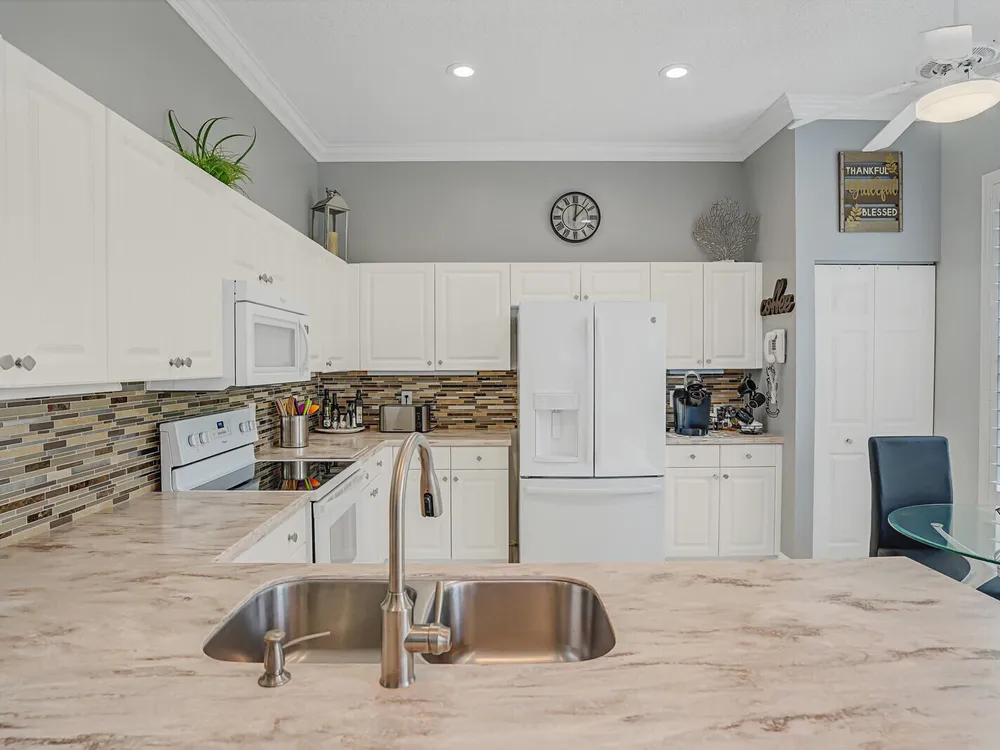 Discover comfort, connection, and community in this beautifully maintained 3-bed, 2-bath home in Brittany Lakes at Aberdeen Country Club (55+ section). Featuring a stylish & designed kitchen with stunning backsplash, custom drawers, updated cabinets, and private in-home laundry, this west facing residence offers effortless living. Aberdeen's world-class amenities include a Tom Fazio golf course, tennis, pickleball, a cutting-edge fitness and aquatic center, and three dining venues. Enjoy a vibrant social calendar, minutes from beaches, shopping, and places of worship. Live the country club lifestyle you've dreamed of--with some of the most accessible dues in South Florida. Mandatory Membership: Initial fee $80,500 + annual dues. Start your next chapter in unmatched style.