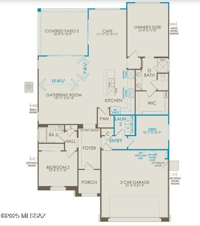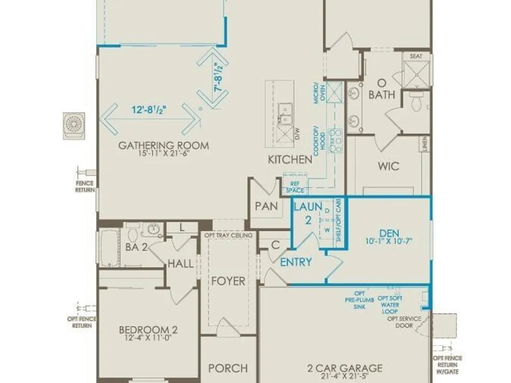 Available August 2025, this Sanctuary floor plan offers 2 bedrooms, a den, 1 full bath and a 3/4 owner's bath. Highlights include 9' ceilings, a walk-in pantry, tankless water heater, gas connections, and a walk-in shower in the owner's suite. The upgraded kitchen boasts Spirit Maple - Natural cabinets, Quartz-Zinc countertops, and a Chef's layout with a stainless-steel cooktop, hood, and wall microwave/oven combo. Pre-wiring for ceiling fans and pendant lighting completes this beautifully designed home. The Clubhouse/Rec Center is set for completion by year-end 2025.