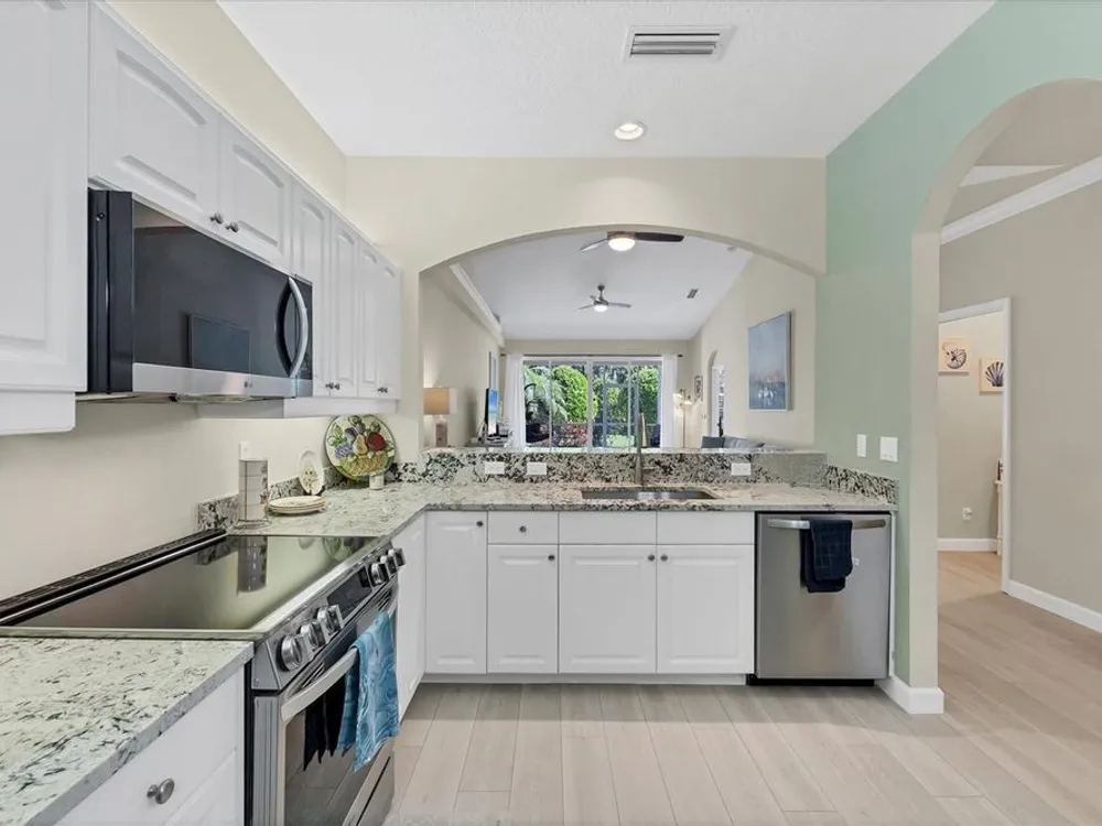 Stunningly Remodeled Villa – A Must-See! This beautifully remodeled Villa stands out as the most impressive in the area! Every detail has been thoughtfully upgraded, featuring high-end vinyl flooring from Floors & Decor, luxurious granite countertops sourced from Brazil, and brand-new stainless steel LG appliances including an LG oven with a built-in air fryer, Stylish new ceiling fans and modern lighting fixtures add to the contemporary feel throughout. Enjoy the serene garden view—lush, mature trees create a picturesque setting unique to this Villa. Just 100 feet from the saltwater community pool, the location couldn’t be more ideal. Just 17 minutes from the stunning Gulf Coast beaches and only 9 minutes from Wellen Park's vibrant boutiques, restaurants, live music, outdoor activities, fishing spots, and weekly farmers markets! Compare this to other Villas in the area with old and outdated finishes and you’ll quickly see the difference. This one is truly in a class of its own. A must-see!