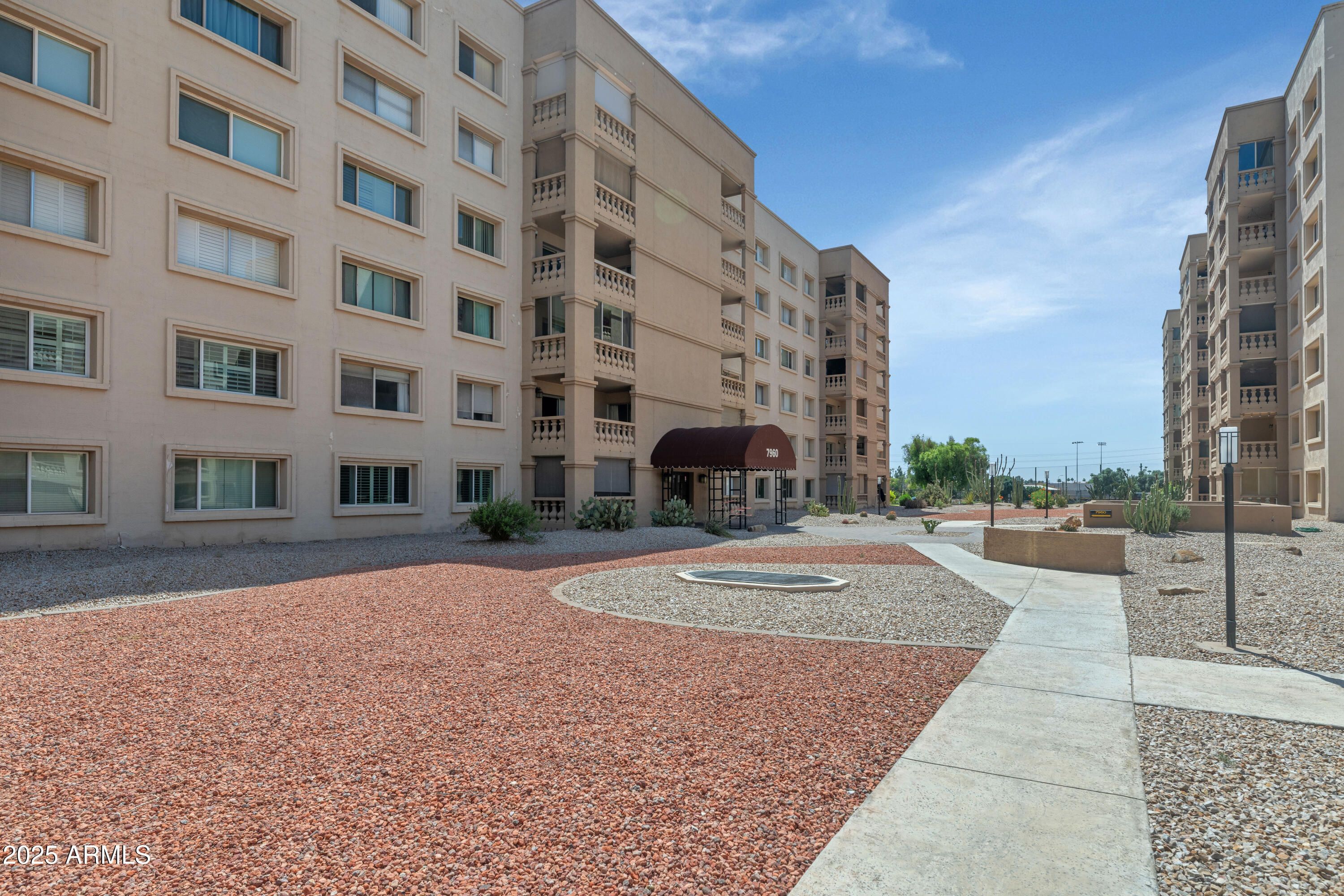Fabulous location within the Guard gated community of Scottsdale Shadows. End unit w/ mountain, park & community views. Large south patio allows you to view the beautiful Arizona sunrises & sunsets. Ready to Move in !!!! Updated in 2016 with SS appliances, cabinets, tile planked flooring, granite countertops & more. Open concept floor plan w/ spacious dining & living area and plenty of room for entertaining family & friends. Large storage/ pantry room is just off the kitchen w/ built-in cabinets. Primary bedroom has large walk-in closet , walk-in shower & Camelback Mtn views. Underground parking garage (1 space) & plenty of guest parking. Take your pick on what to do in the community , you may never want to leave - tennis, golf, swimming, jacuzzis, BBQ grills, sauna, walking, work out facility, library, clubhouse activities, organized events etc... Across the street you can enjoy miles of walking & biking paths, play ground , lakes, picnic areas.......Within a couple miles there is more golf, baseball games, shopping, dining, movies - Old Town Scottsdale & Scottsdale Fashion Square are right there! You will love Scottsdale Shadows for its lifestyle options and proximity to just about everything you can think of.
