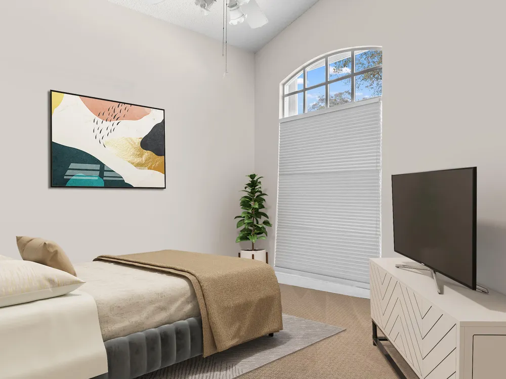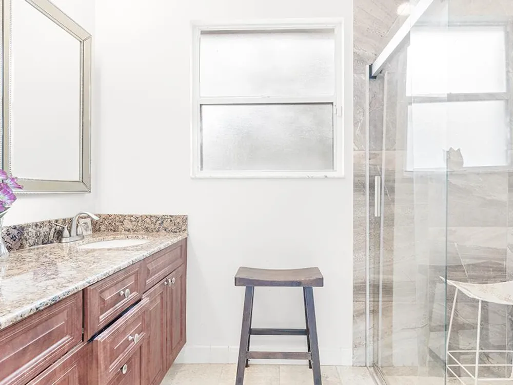 - Cathedral Ceiling(s), Custom Mirrors, Entry Level Living Area, Split Bedrooms, Walk-In Closet(s), Florida Room, Living/Dining Room, Eat-in Kitchen, Arched Window(s), Single Hung Metal Window(s), Window Vertical(s), Dual Sinks, Primary Downstairs, Separate Shower, Storm Shutters