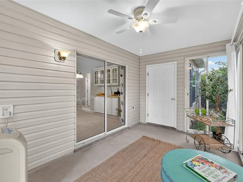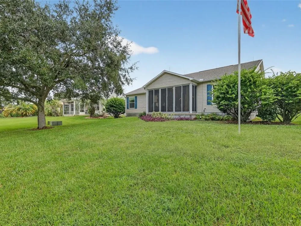 Welcome to this ONE OWNER much loved BANYAN/AMARILLO ranch home, perfectly situated near recreation, shopping, dining, and entertainment. From the moment you arrive, you'll notice the inviting front entertaining space (South Facing), ideal for morning coffee, evening cocktails, or simply enjoying the friendly neighborhood atmosphere. Inside, this home showcases Freshly PAINTED Interior throughout (9/25), Stainless Appliances with NEW GAS STOVE (9/25), OAK Cabinetry, VAULTED Ceilings, Added Cabinetry in DINING area, New Light Fixtures (9/25) STORAGE Cabinets & Work Bench in GARAGE. The primary suite is equally impressive with a large walk-in closet, ensuite with walk-in shower, LINEN Closet and seated Make up area. Your Guest will love their privacy with this split floorplan. TWO Guest bedrooms (one has a MURPHY BED), Private Bath with Tub/Shower combo and Hall Linen Closet. The back guest bedroom has separate exit into the temperature controlled ENCLOSED LANAI (North facing) with Floor to Ceiling Windows. The Interior Laundry has added cabinetry including a Pantry Cabinet. Practical updates provide peace of mind, including ROOF, Gas Water Heater, HVAC all 2019, and lightening striker protection. Make this Blank Canvas yours. LOW BOND BALANCE $1905.99