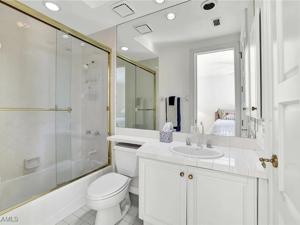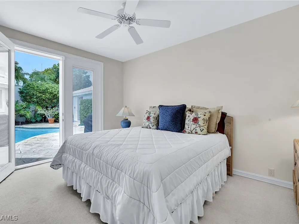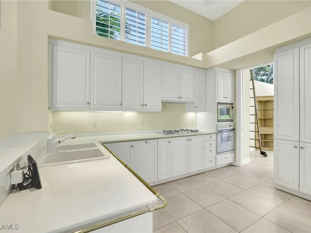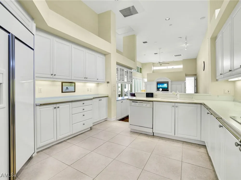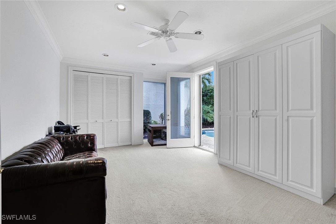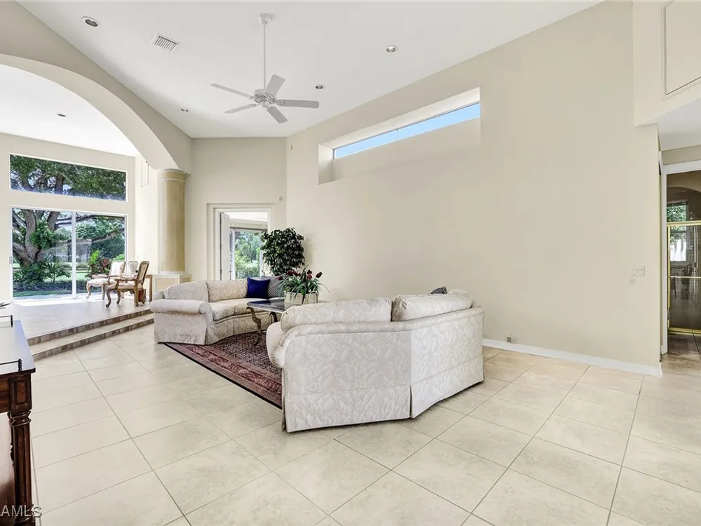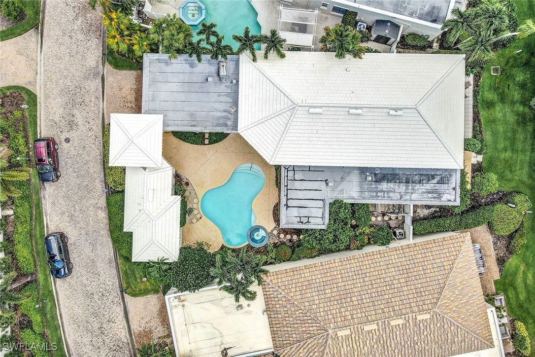 Arguably the finest view in all of Grand Bay. This home is large. There are only a few homes with a two-room cabana in Grand Bay, and this lovely home is one of them. Enter the home through the expanded courtyard and into the spacious living room with soaring ceilings. Enjoy dining while looking out at the beautiful Pelican Bay golf course. A wide-open patio off the dining/living area allows one to enjoy sunsets and watch the golfers through the beautiful private vegetation. Two bedrooms are off the living area. There is a third bedroom off the family room with its private bath. The kitchen is conveniently between the dining room and the breakfast room/family room area. The cabana off the courtyard area gives your guests complete privacy. This property is for the buyer who wants to renovate from top to bottom and make it their own. You will be pleasantly surprised when you visit this courtyard home. It shows light and airy with a south-facing lot and lots of windows.