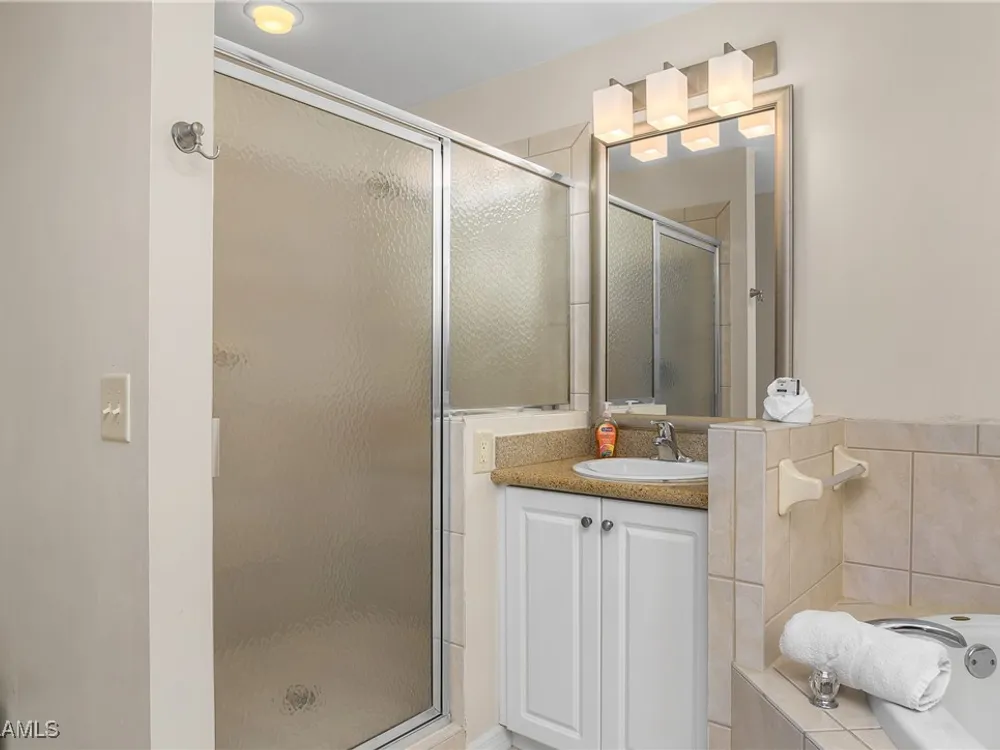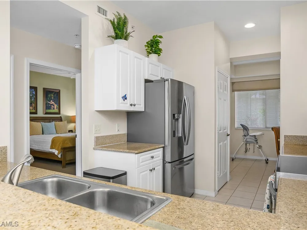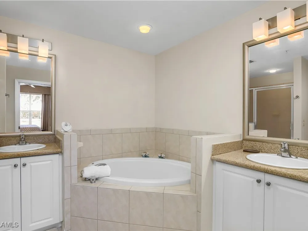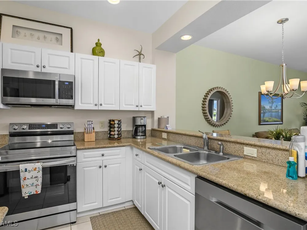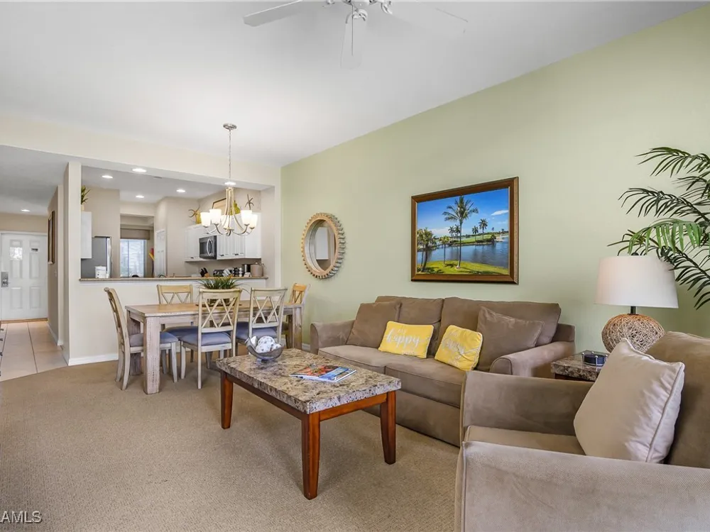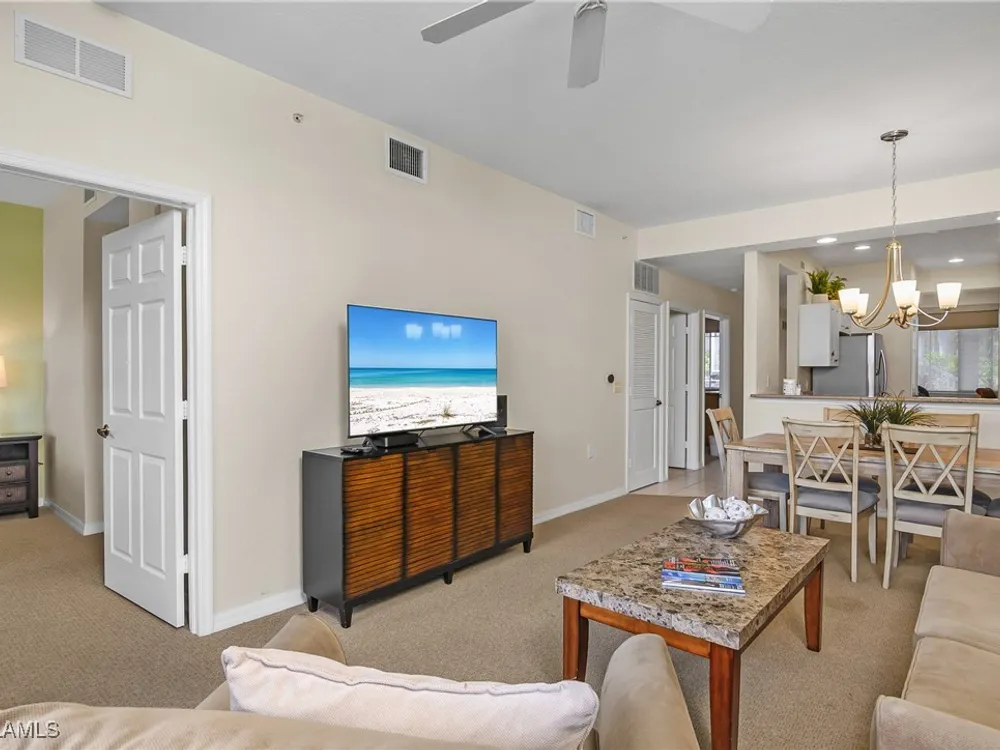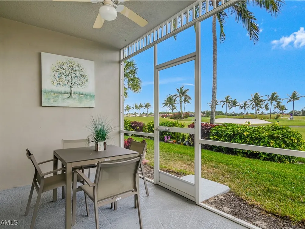 This fully furnished 2-bedroom, 2-bath first-floor condo is located in Greenlinks at Lely Resort, offering beautiful views of the Lely Flamingo golf course and driving range. Conveniently situated next to Sam Snead’s Tavern, you can easily stroll over for lunch or dinner. The condo is turnkey ready, complete with furnishings, bed and bath linens, and housewares package. The kitchen features granite countertops, a pantry, and a stacked washer and dryer. The spacious master bedroom includes golf course views and two large walk-in closets. The master bath boasts a walk-in tile shower, dual vanities, and a garden tub, while the guest bath also has a large walk-in tile shower and can be accessed directly from the guest bedroom, creating the option for a second master suite. Both bathrooms have updated lighting and mirrors. Greenlinks offers outstanding amenities, including two tennis courts, a pickleball court, shuffleboard, bocce ball, a resort-style pool and spa, and a clubhouse with a fitness center.