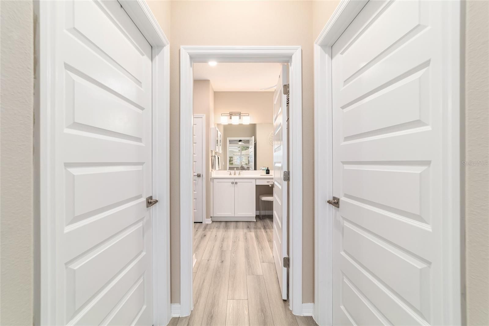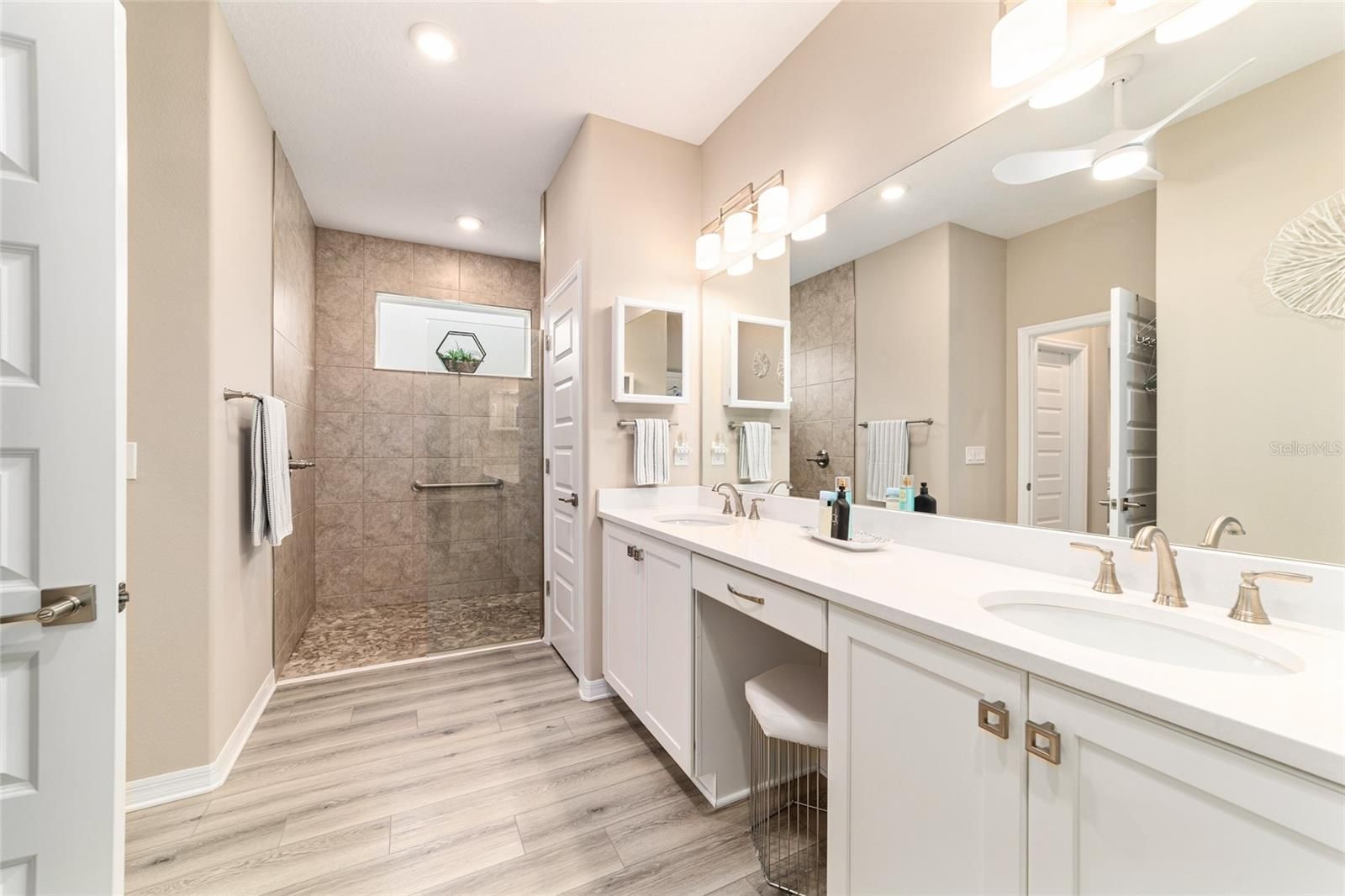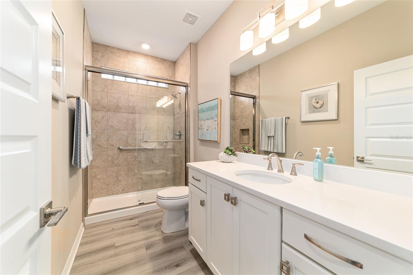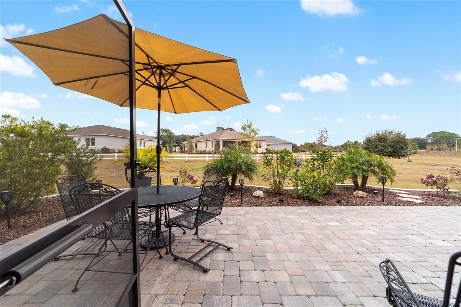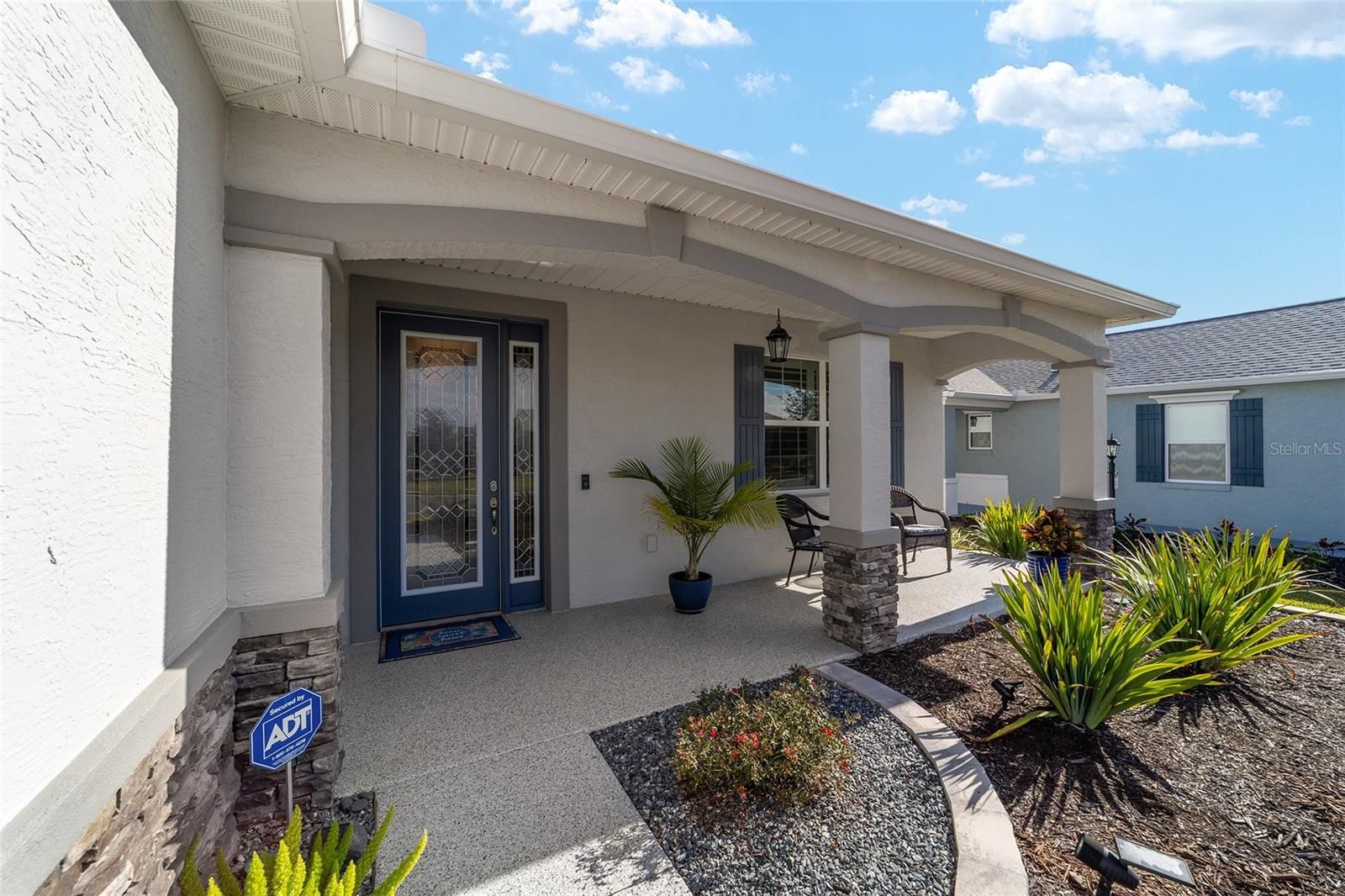 Looking for a Wisteria in Weybourne Landing with tons of upgrades? Look no further! This 2023-built Wisteria is a true showstopper, offering 3 bedrooms, 2 bathrooms, and a 4' extended 2-car garage situated on a premium lot. Step inside to a gourmet kitchen that any chef will love featuring a spacious island, under-cabinet lighting, quartz counters and backsplash, walk-in pantry, and stainless-steel appliances including a built-in oven/microwave and a gas cooktop. The staggered white cabinets are beautifully finished with crown molding, dovetail drawers, and soft-close hardware. The primary suite includes two walk-in closets with custom shelving and an elegant ensuite bathroom with dual sinks and an oversized walk-in shower with upgraded tile. Throughout the home, enjoy luxury vinyl plank flooring, shutter blinds, tray ceilings, crown molding, extra recessed lighting, designer fans and fixtures, and diamond-epoxied driveway, garage, and lanai. Outdoor living is a highlight with an eastern-facing lanai and custom patio offering deep space between rear neighbors and a distant southern view of the Candler golf course. Enhanced curb appeal comes from raised landscape beds and an upgraded front elevation. This home is truly extraordinary. Weybourne Landing offers fee-simple ownership, low HOA fees, and private amenities including a swimming pool, pickleball, mini-golf, fitness center, clubhouse, and curbside waste collection. On Top of the World is Ocala's premier 55+ active adult golf resort community, providing golf-cart access to shopping, dining, entertainment, health services, and more.