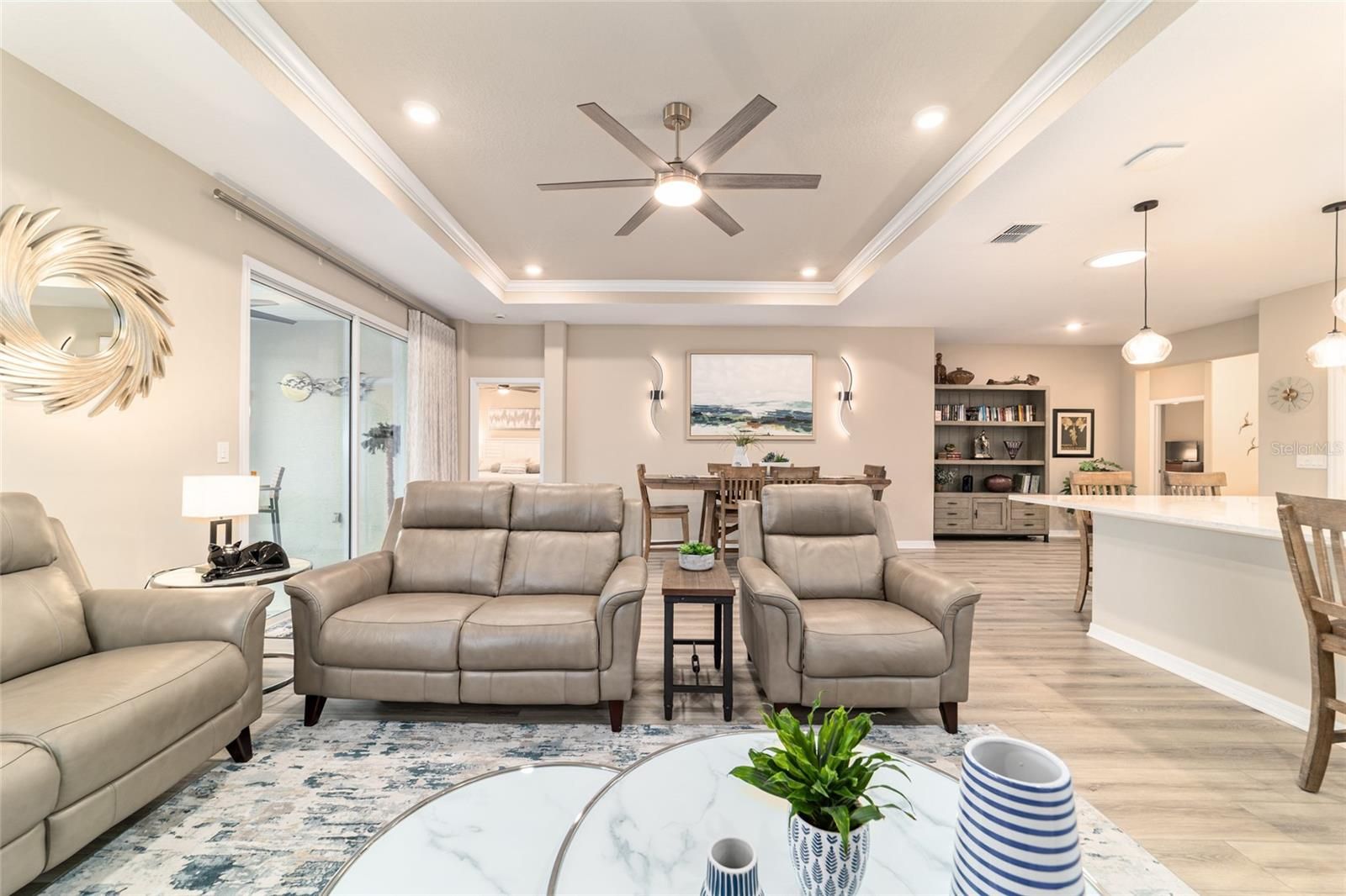 - Ceiling Fan(s), Crown Molding, High Ceilings, Open Floorplan, Smart Home, Stone Counters, Thermostat, Tray Ceiling(s), Walk-In Closet(s), Window Treatments