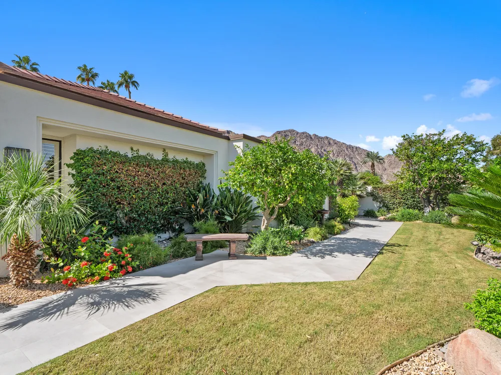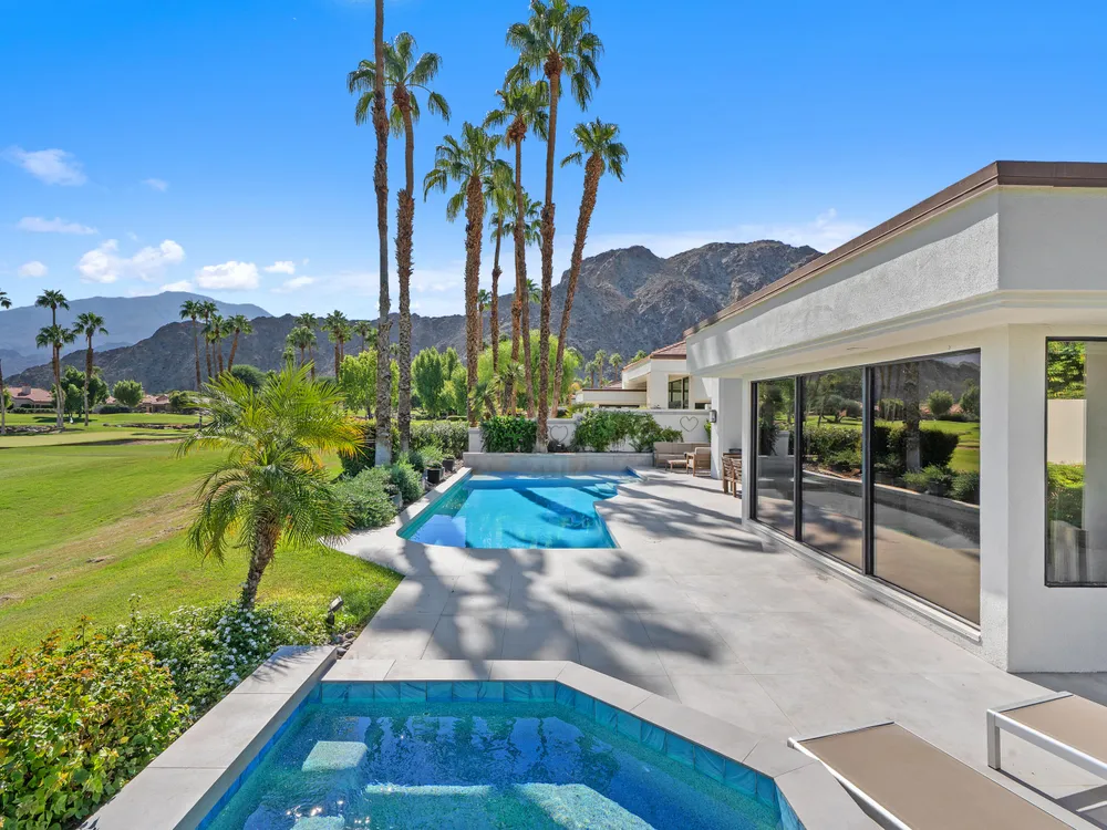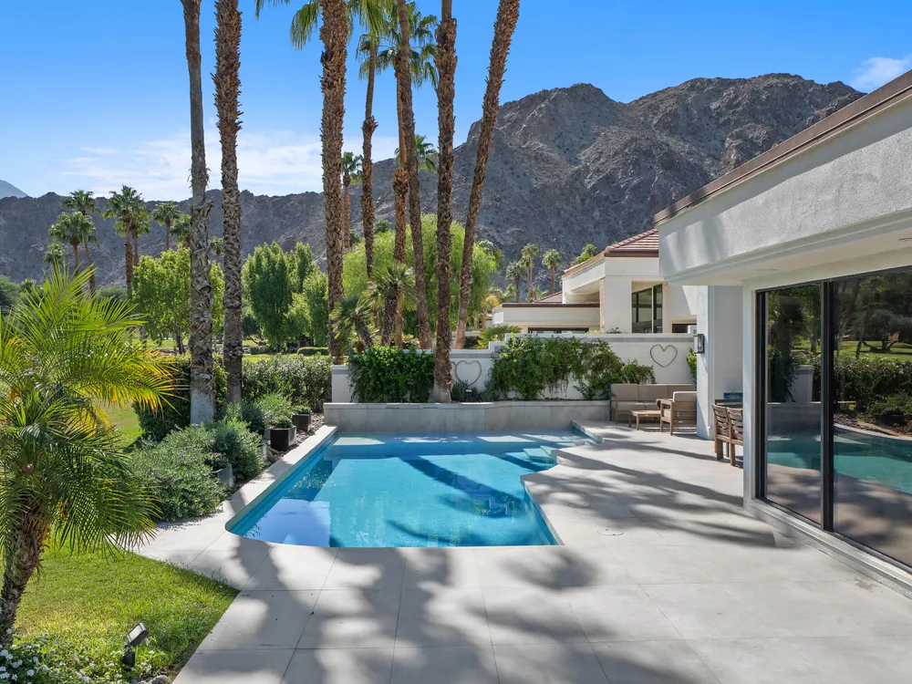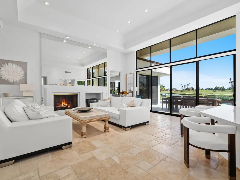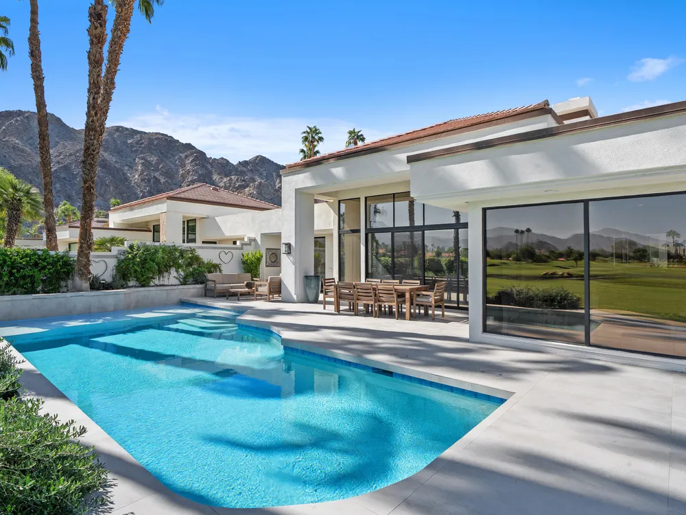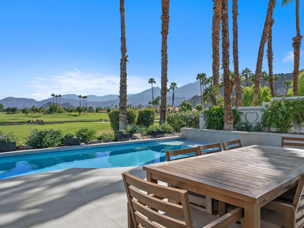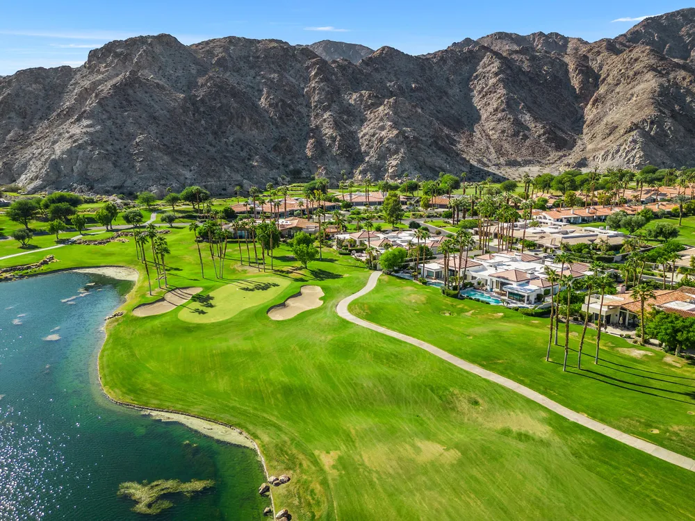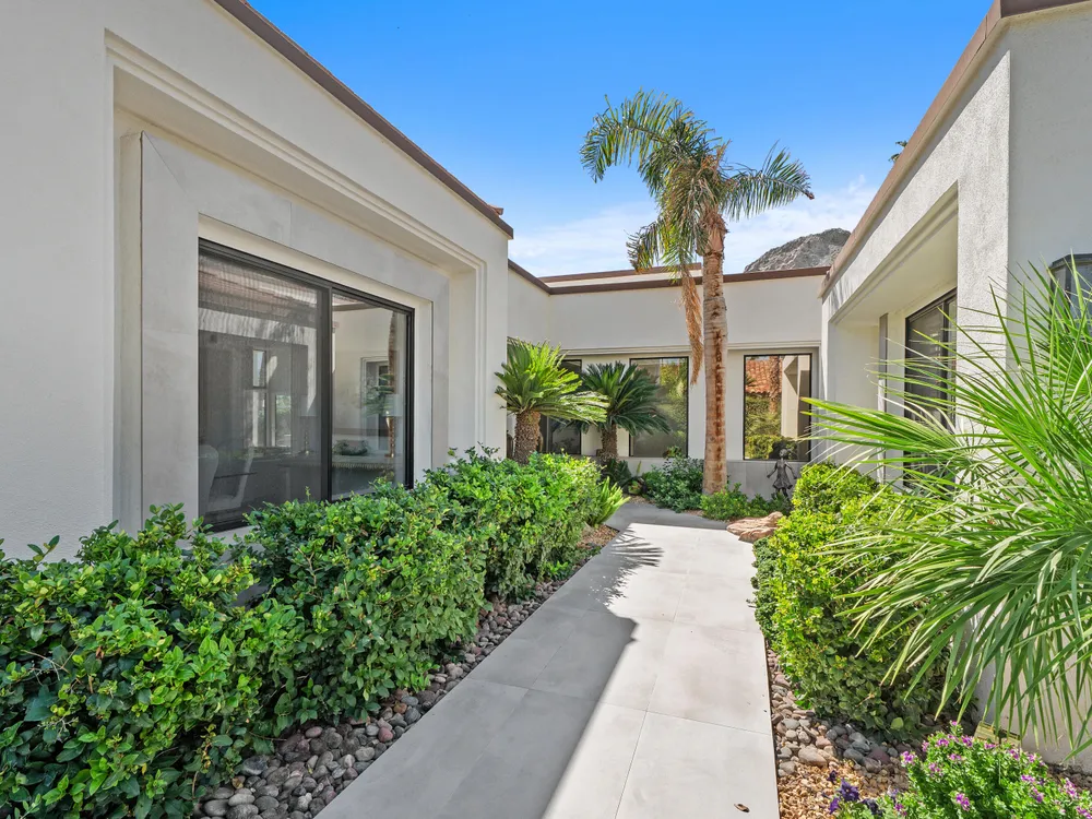Incredible Southern views highlight this highly upgraded Classic 100 floor plan located on the prestigious Palmer Private Course at PGA West. From nearly every room, you'll enjoy sweeping panoramas of the sparkling lake, the lush10th fairway, the private clubhouse, and the dramatic backdrop of the Santa Rosa and Coral Mountains. A private, gated courtyard sets the stage for the highly upgraded refined interiors within. Step inside to a light-filled great room with high ceilings, a cozy fireplace, and a full wet bar with refrigerator, ideal for both intimate evenings and grand-scale entertaining. Expansive sliding doors capture the unforgettable scenery and blur the lines between indoor and outdoor living. The upgraded designer kitchen is a true showpiece, blending beauty and functionality with sleek quartz countertops, a large center island, walk-in pantry, abundant cabinetry, and all-new stainless-steel appliances. Designed for connection, the kitchen flows seamlessly into the formal dining and family areas, creating the perfect gathering space for family and friends while showcasing panoramic views. The primary suite is a serene retreat, opening to a private courtyard with Santa Rosa Mountain views. A large walk-in closet and spa-inspired bathroom complete the suite, featuring a soaking tub, walk-in shower, bidet, and abundant built-in storage. Two additional en-suite guest rooms offer comfort and privacy, ensuring every visitor feels at home. Step outside to one of the most coveted vantage points in all of PGA West. The recently resurfaced pebble tec saltwater pool and spa are enhanced by a soothing water feature, tanning deck, and brand-new, top-of-the-line non-slip tile. Fully automated with smartphone technology and outfitted with all-new equipment, this resort-style escape was designed for effortless desert living.