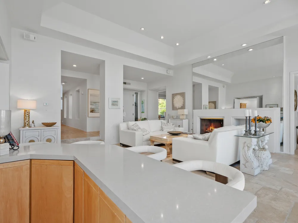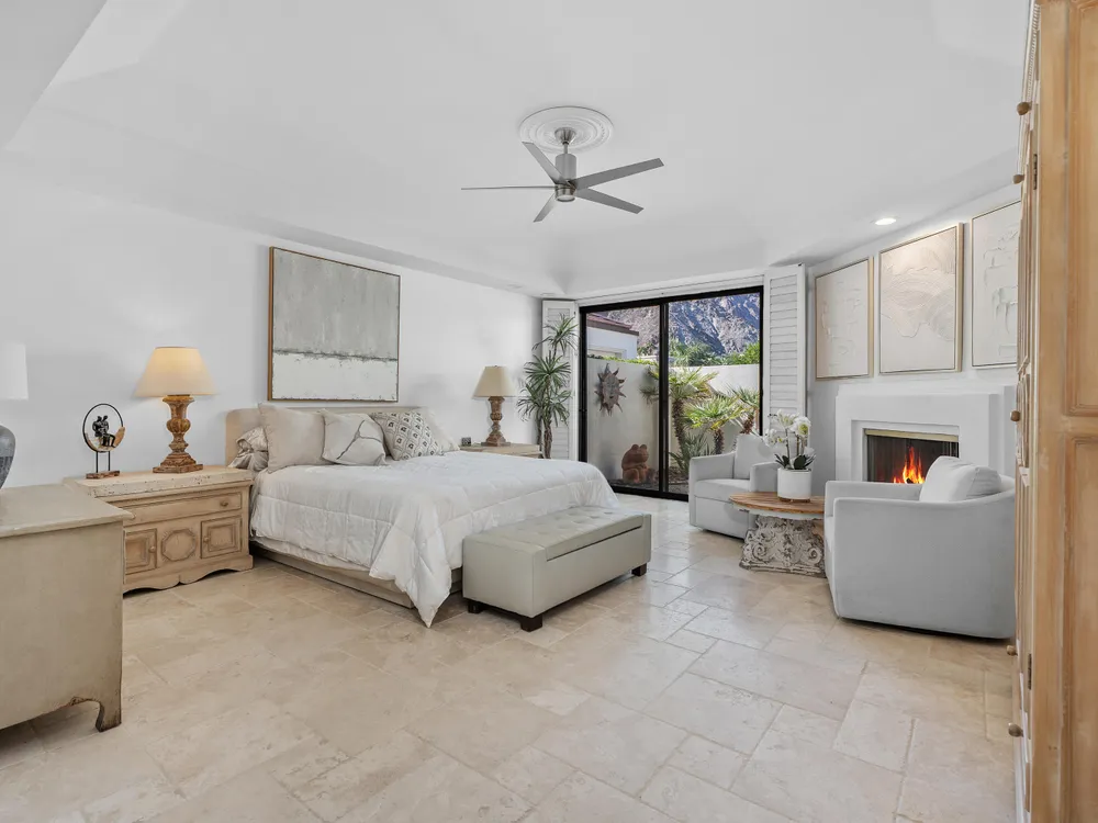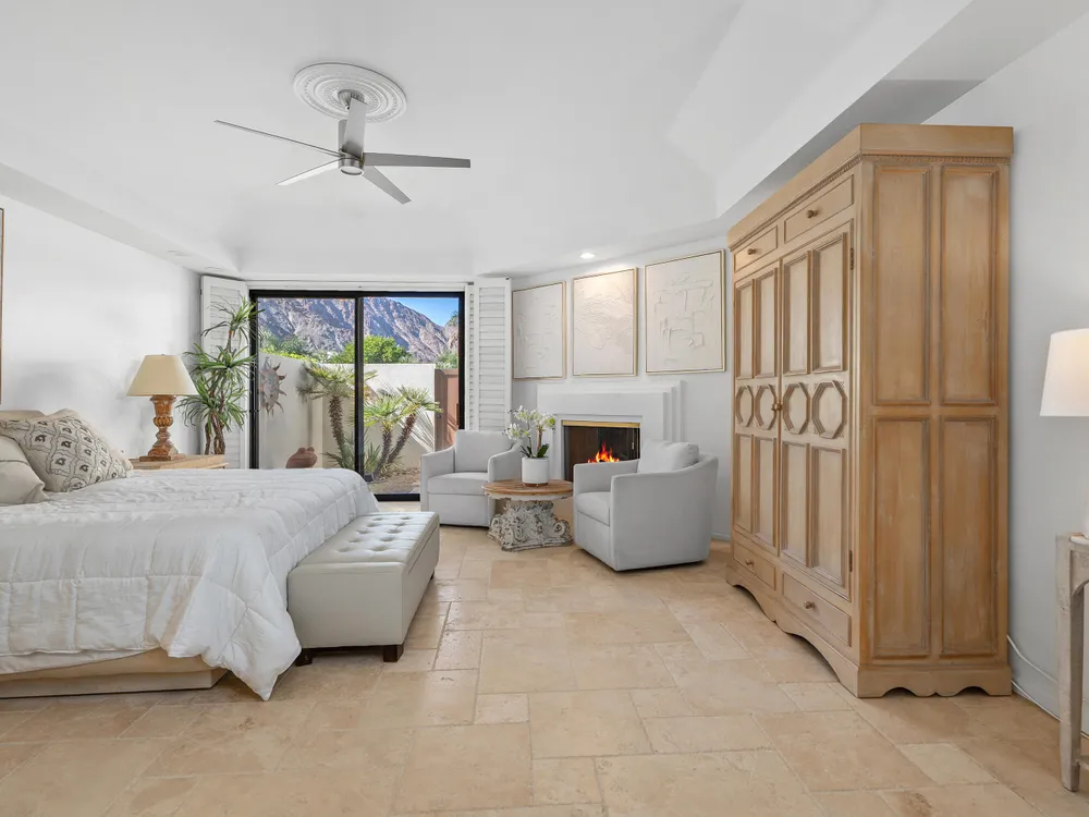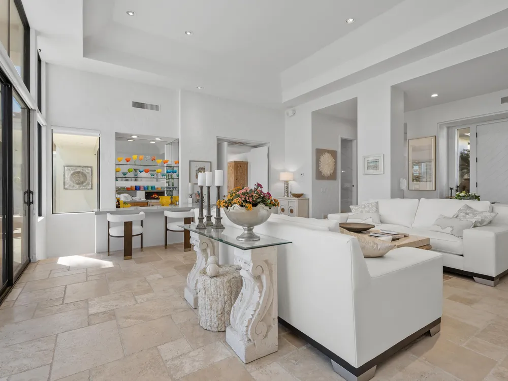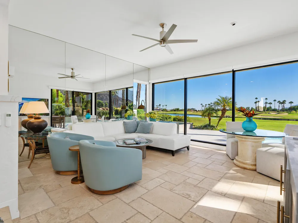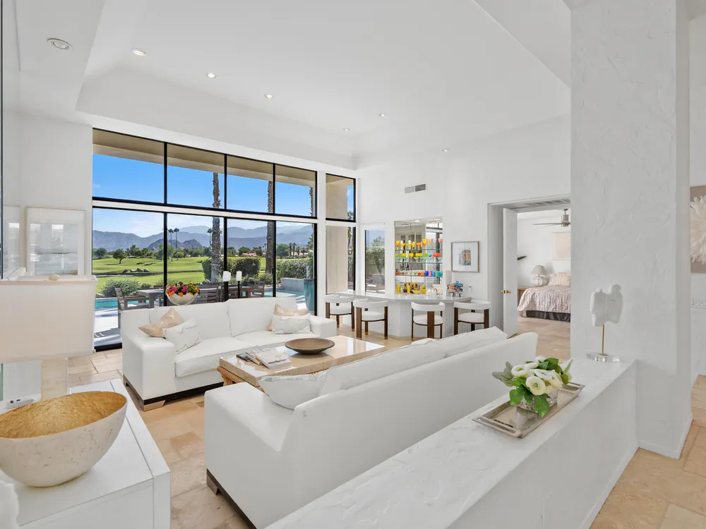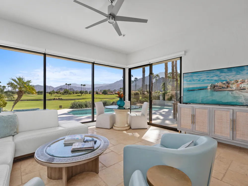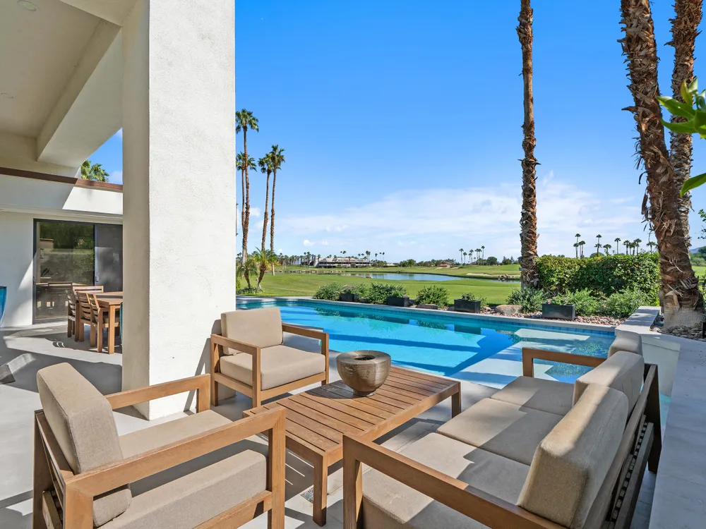 Incredible Southern views highlight this highly upgraded Classic 100 floor plan located on the prestigious Palmer Private Course at PGA West. From nearly every room, you'll enjoy sweeping panoramas of the sparkling lake, the lush10th fairway, the private clubhouse, and the dramatic backdrop of the Santa Rosa and Coral Mountains. A private, gated courtyard sets the stage for the highly upgraded refined interiors within. Step inside to a light-filled great room with high ceilings, a cozy fireplace, and a full wet bar with refrigerator, ideal for both intimate evenings and grand-scale entertaining. Expansive sliding doors capture the unforgettable scenery and blur the lines between indoor and outdoor living. The upgraded designer kitchen is a true showpiece, blending beauty and functionality with sleek quartz countertops, a large center island, walk-in pantry, abundant cabinetry, and all-new stainless-steel appliances. Designed for connection, the kitchen flows seamlessly into the formal dining and family areas, creating the perfect gathering space for family and friends while showcasing panoramic views. The primary suite is a serene retreat, opening to a private courtyard with Santa Rosa Mountain views. A large walk-in closet and spa-inspired bathroom complete the suite, featuring a soaking tub, walk-in shower, bidet, and abundant built-in storage. Two additional en-suite guest rooms offer comfort and privacy, ensuring every visitor feels at home. Step outside to one of the most coveted vantage points in all of PGA West. The recently resurfaced pebble tec saltwater pool and spa are enhanced by a soothing water feature, tanning deck, and brand-new, top-of-the-line non-slip tile. Fully automated with smartphone technology and outfitted with all-new equipment, this resort-style escape was designed for effortless desert living.