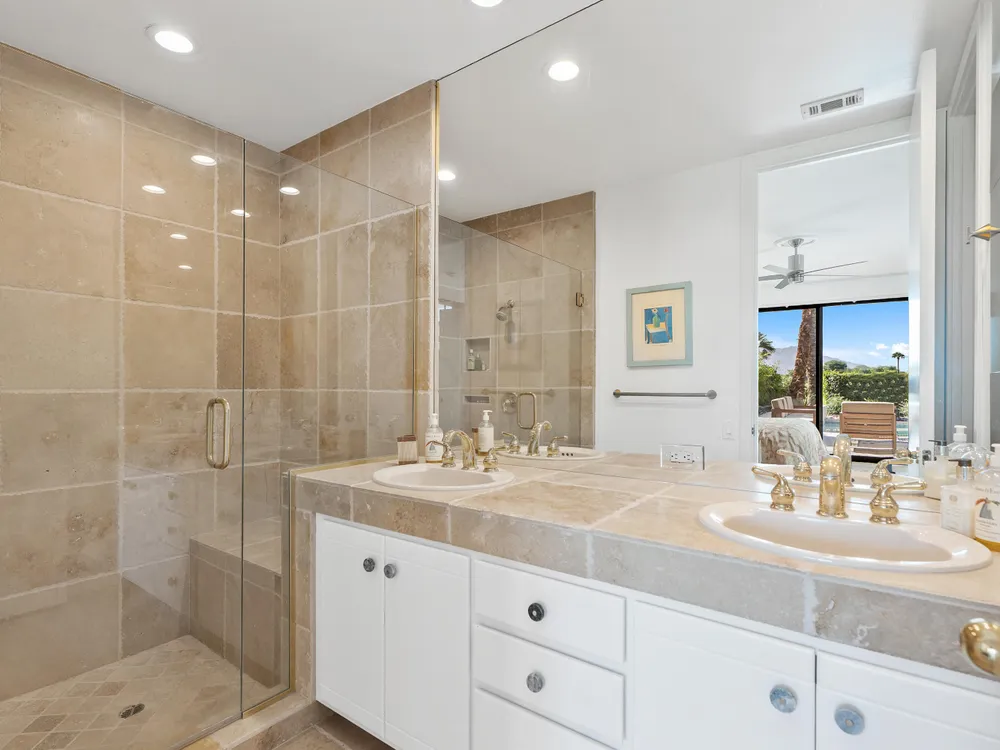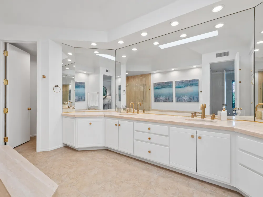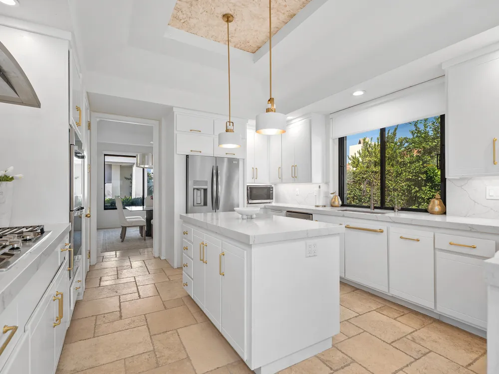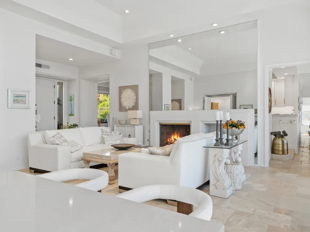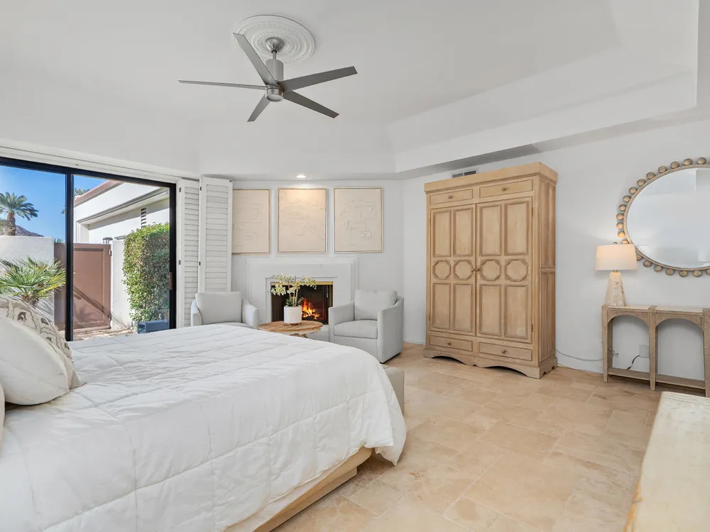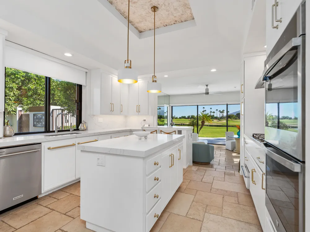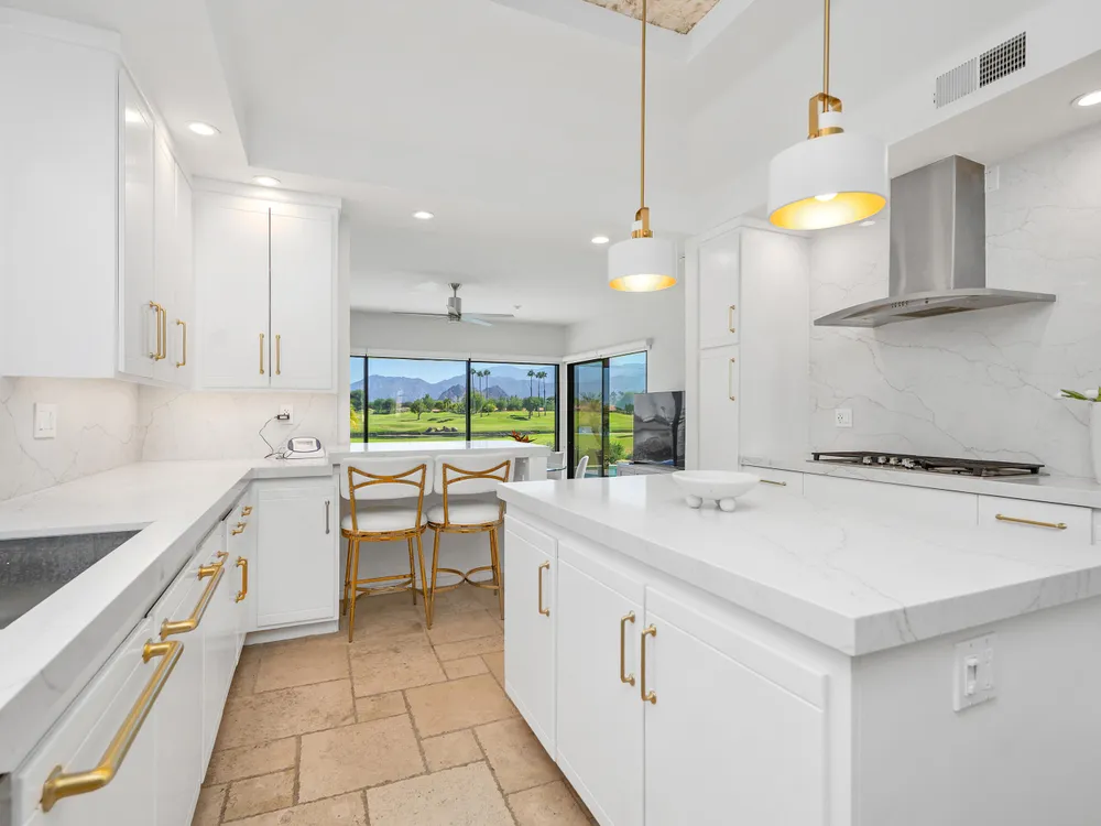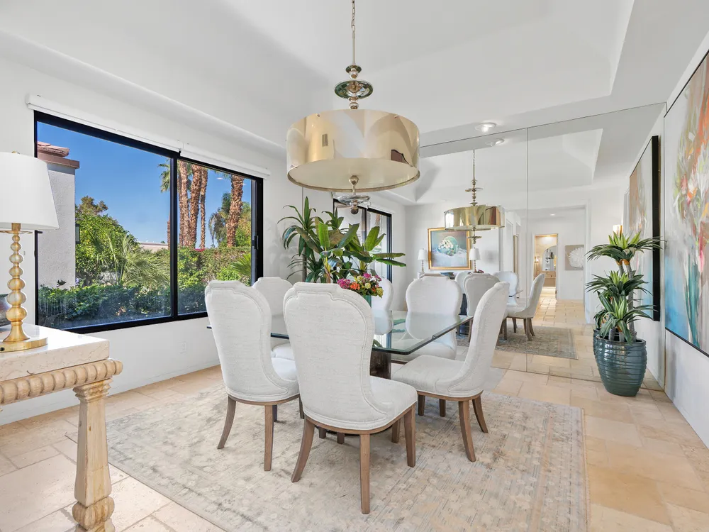 Incredible Southern views highlight this highly upgraded Classic 100 floor plan located on the prestigious Palmer Private Course at PGA West. From nearly every room, you'll enjoy sweeping panoramas of the sparkling lake, the lush10th fairway, the private clubhouse, and the dramatic backdrop of the Santa Rosa and Coral Mountains. A private, gated courtyard sets the stage for the highly upgraded refined interiors within. Step inside to a light-filled great room with high ceilings, a cozy fireplace, and a full wet bar with refrigerator, ideal for both intimate evenings and grand-scale entertaining. Expansive sliding doors capture the unforgettable scenery and blur the lines between indoor and outdoor living. The upgraded designer kitchen is a true showpiece, blending beauty and functionality with sleek quartz countertops, a large center island, walk-in pantry, abundant cabinetry, and all-new stainless-steel appliances. Designed for connection, the kitchen flows seamlessly into the formal dining and family areas, creating the perfect gathering space for family and friends while showcasing panoramic views. The primary suite is a serene retreat, opening to a private courtyard with Santa Rosa Mountain views. A large walk-in closet and spa-inspired bathroom complete the suite, featuring a soaking tub, walk-in shower, bidet, and abundant built-in storage. Two additional en-suite guest rooms offer comfort and privacy, ensuring every visitor feels at home. Step outside to one of the most coveted vantage points in all of PGA West. The recently resurfaced pebble tec saltwater pool and spa are enhanced by a soothing water feature, tanning deck, and brand-new, top-of-the-line non-slip tile. Fully automated with smartphone technology and outfitted with all-new equipment, this resort-style escape was designed for effortless desert living.