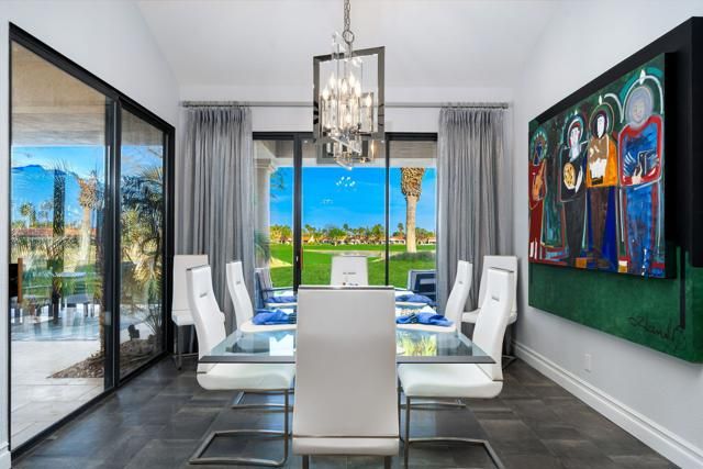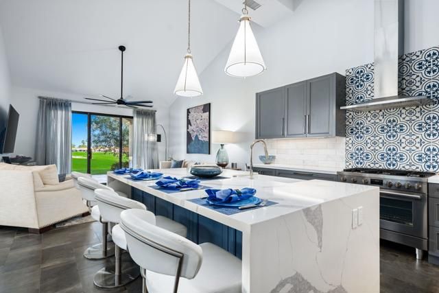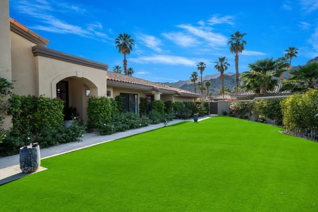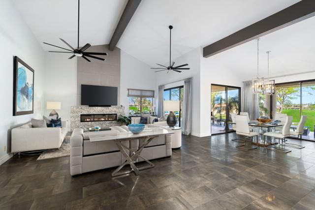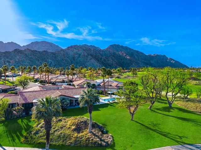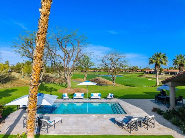 This Point lot is overlooking the triple fairways of #1, 9, & 18 of the Nicklaus Private Course. With far reaching views, the Point lot boasts Western sunsets, Eastern morning sun, Southern mountains, & the Northern desert! The oversized lot has amazing entertainment space with a beautiful saltwater pool & spa, expansive travertine patios offering unencumbered panoramic views. The interior of this home, detailed by the pictures is simply stunning! Tall vaulted ceilings, beautiful modern flooring with an architecturally designed fireplace enhancing the beauty of this home. Spacious kitchen with abundant storage & pull out pantry to enhance any chef's dreams. Large island with waterfall feature stands as an entertaining space or work area. This Legends 40 has been completely renovated to bring a contemporary open floor plan & maximize views of the outdoor living spaces. There are 2 separate living areas off the kitchen, 3 large bedrooms, all with en-suites, making this property ideal for weekend getaways or a full time residence. Throughout you will find natural stone in the primary, & secondary baths, with waterfall counter tops & Rohl polished nickel fixtures. The bathrooms also feature walls beautifully accented with wallpaper. Our desert is meant for enjoying early morning sun & warm summer nights. The outdoor entertaining space indulges those desires. Envision yourself through the outdoor pictures, relaxing, entertaining, & enjoying your new home!