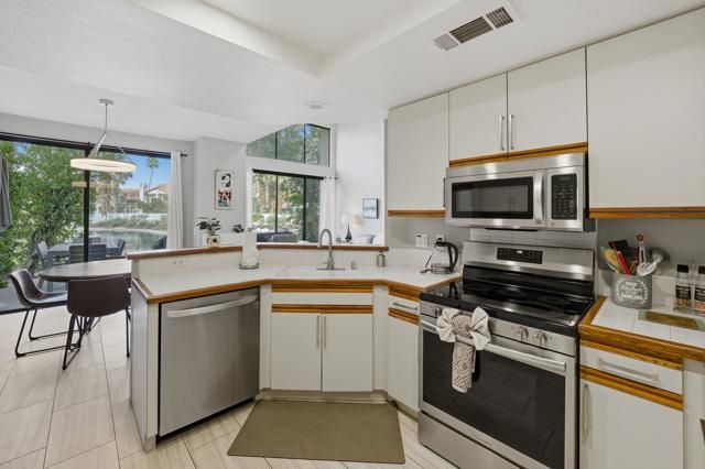 Nestled in South La Quinta behind the gates of the renowned PGA West Country Club and set within the Palmer Private Golf Course, this beautifully appointed condo offers a light-filled desert retreat with stunning lake and mountain views. The peaceful setting creates an idyllic backdrop for relaxed desert living.This 3-bedroom, 2-bath residence features an open, airy layout designed for both comfortable everyday living and effortless entertaining. Expansive windows and sliding glass doors invite natural light to pour in while creating a seamless connection to the outdoors. Start your mornings with coffee overlooking the water or unwind at sunset as the mountains glow--your own private slice of desert paradise.The kitchen flows into the main living areas, making it easy to host gatherings or enjoy quiet evenings after a day on the course. The primary suite serves as a tranquil sanctuary, offering privacy, comfort, and soothing views to wake up to each morning. Two additional bedrooms provide flexible options for guests, a home office, or creative space.Ideally located in South La Quinta, this home is just minutes from championship golf, upscale dining, boutique shopping, and scenic hiking trails. Whether you're seeking a full-time residence, a seasonal escape, or a smart investment, this exceptional property delivers on lifestyle, location, and views.