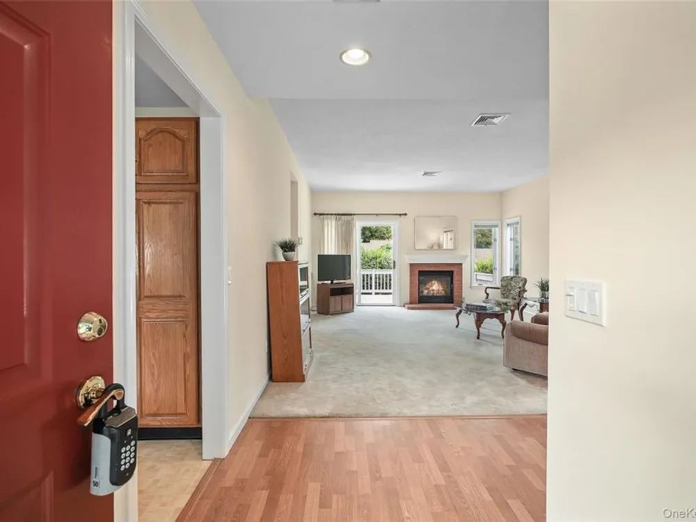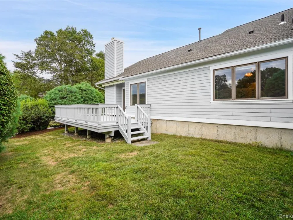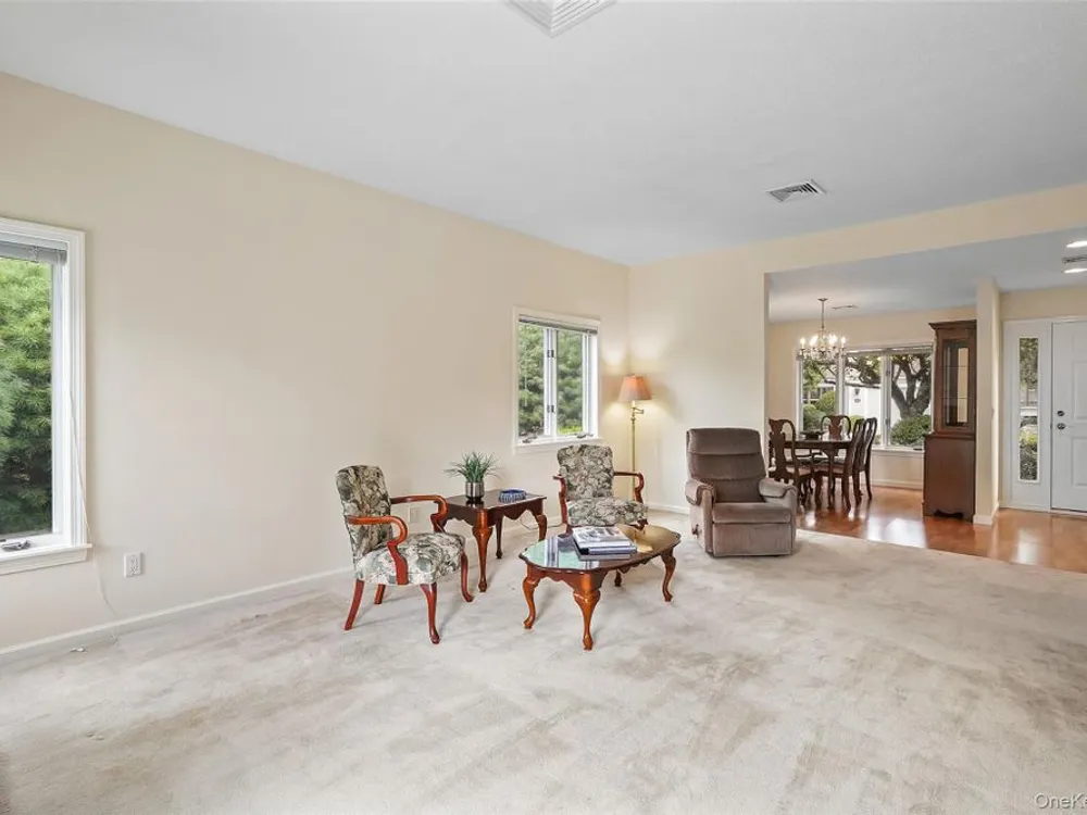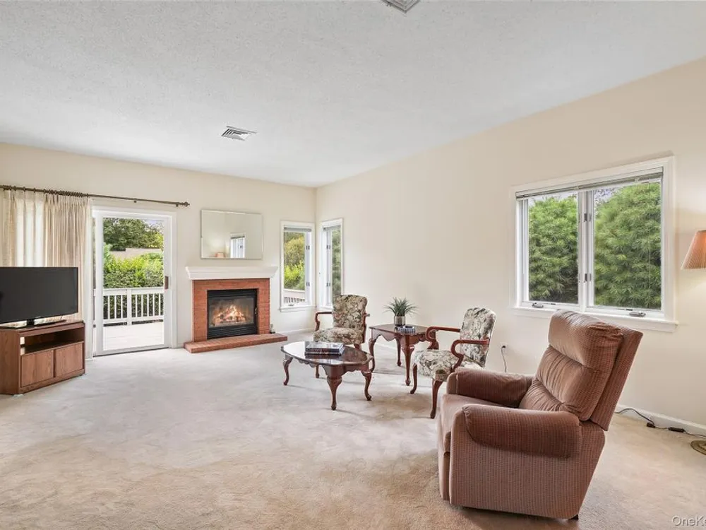 Welcome to 798D Heritage Hills! This lovely two-bedroom, two-bath, one-level end unit offers 1,296 sq. ft. of comfortable living space, is located in a quiet cul-de-sac, and features gas heat. The inviting floor plan features a bright eat-in kitchen with classic oak cabinetry, gas range, a formal dining room, and a spacious formal living room with a cozy gas fireplace and sliders leading to the freshly painted (2025) backyard deck with a manual awning—perfect for relaxing or entertaining. Spacious primary bedroom with walk-in closet and ensuite bathroom. Hall bathroom. Large second bedroom with two closets. Additional highlights include freshly painted interior (2025), wall-to-wall carpeting just steam-cleaned (2025), and recent community updates with new roofs and freshly painted exteriors. Hot water heater (2014). A/C (2009). Please note: no dishwasher in the kitchen. Condo is being sold as-is. Enjoy the Heritage Hills lifestyle: 5 pools, tennis courts, pickleball courts, paddle tennis, Fitness and Activity center, 24-hour security with EMS, free shuttle to train and shops, and much, much more. HOA of $594.66 = (Condo 27 fee $428.98) + (Society fee $165.68). Capital Rejuvenation Assessment: $185/month 6/1/24-6/30/27. Capital Assessment (for roofs) of $189.81/month 6/1/24-12/31/25. Buyers are required to pay a Capital Contribution fee of $1500 to Society at closing. Taxes are without Basis STAR exemption of $1586.49.