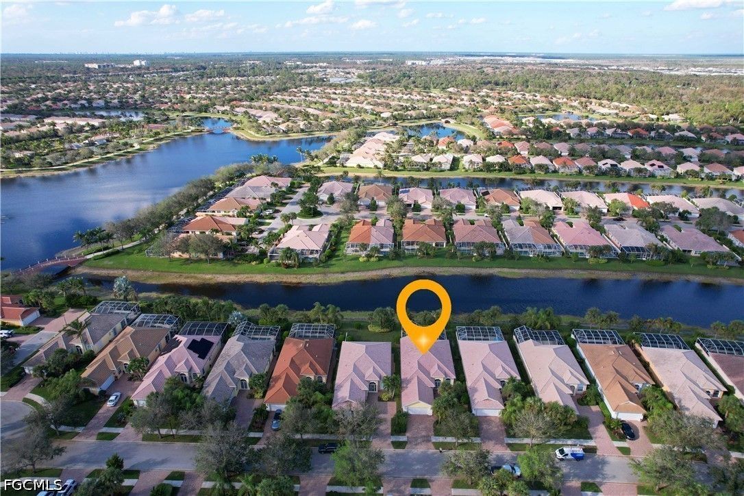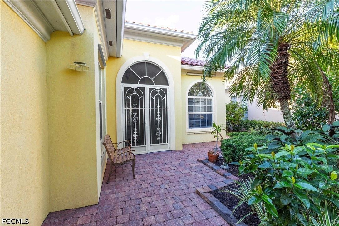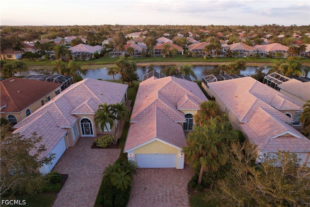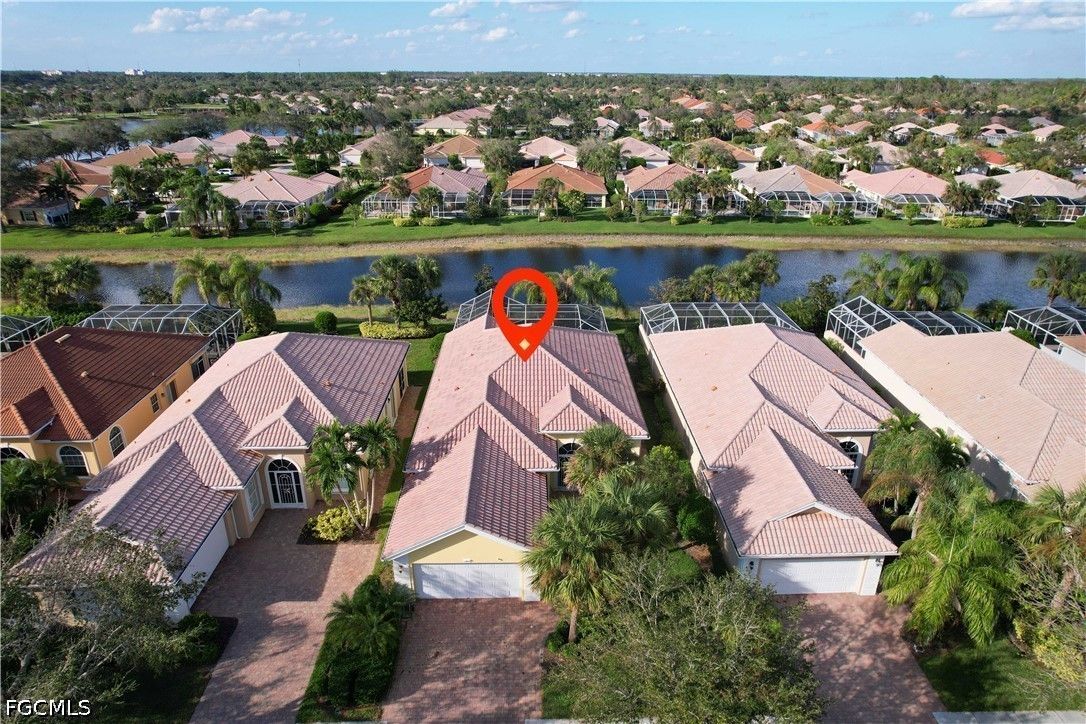 Welcome to this highly sought-after Oakmont model in the premier 24-hour guard-gated community of Verona Walk. Offering nearly 2,200 square feet of living space, this 3-bedroom plus den, 2.5-bathroom home is specifically designed for privacy and effortless flow. The expansive interior is defined by impressive 12-foot-plus ceilings, paired with large sliding glass doors that frame serene water views and maximize natural light for a remarkably bright and airy atmosphere. These sliders open to a huge covered lanai, seamlessly blending indoor and outdoor living while overlooking the tranquil water. Completely move-in ready, the home showcases fresh paint (2024) and upgraded recessed lighting in every room, creating a clean and bright aesthetic. Verona Walk delivers an unparalleled resort-style lifestyle with amenities designed for total convenience. The vibrant Town Center features a resort-style lagoon pool, a temperature-controlled lap pool, a state-of-the-art 24/7 fitness center, and lighted courts for tennis, pickleball, and bocce. Residents enjoy exclusive access to an on-site restaurant and bar, gas station, car wash, hair salon, post office, and over 20 miles of scenic walking and biking trails connected by picturesque bridges. With HOA dues that conveniently cover lawn care, irrigation, cable, and internet, this property offers an exceptional, low-maintenance waterfront opportunity in a prime Naples location. Information provided is deemed reliable but not guaranteed. Buyer is responsible for verifying all facts, including square footage, measurements, permits, HOA requirements and community amenities. Listing subject to change or correction without notice