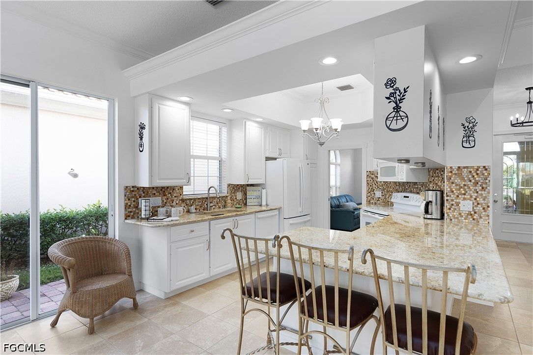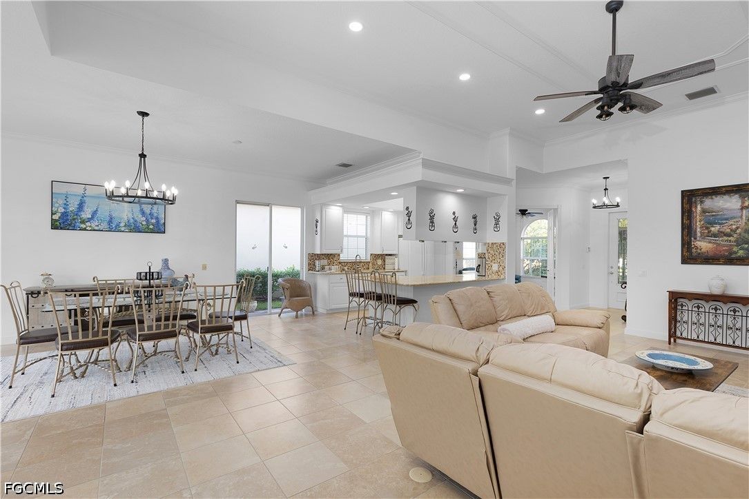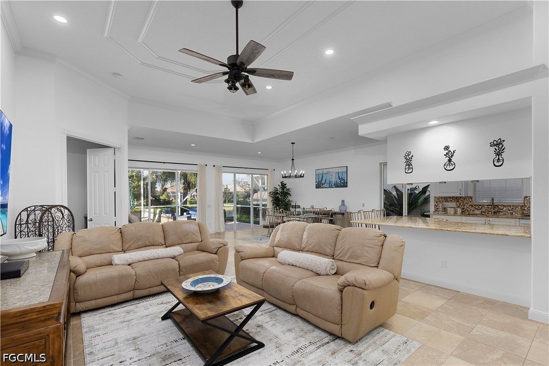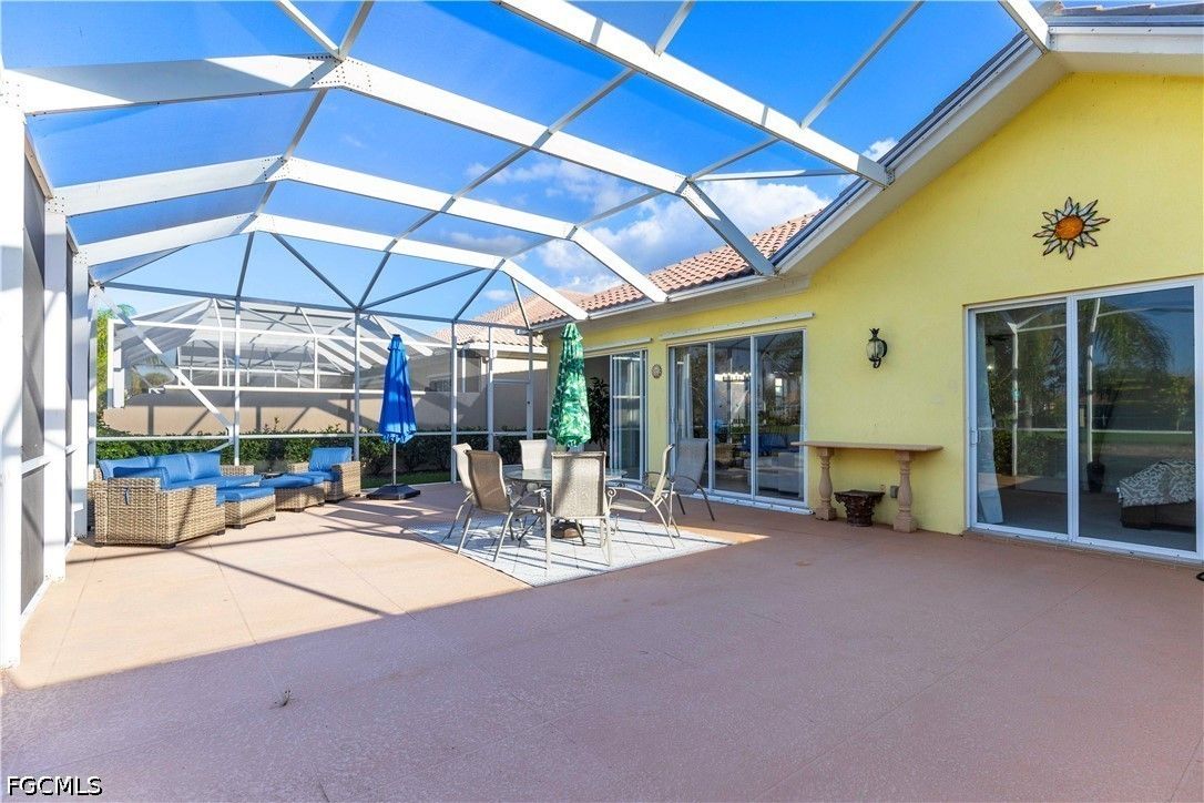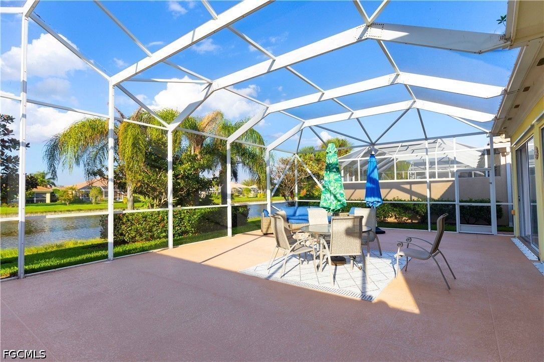 Welcome to this highly sought-after Oakmont model in the premier 24-hour guard-gated community of Verona Walk. Offering nearly 2,200 square feet of living space, this 3-bedroom plus den, 2.5-bathroom home is specifically designed for privacy and effortless flow. The expansive interior is defined by impressive 12-foot-plus ceilings, paired with large sliding glass doors that frame serene water views and maximize natural light for a remarkably bright and airy atmosphere. These sliders open to a huge covered lanai, seamlessly blending indoor and outdoor living while overlooking the tranquil water. Completely move-in ready, the home showcases fresh paint (2024) and upgraded recessed lighting in every room, creating a clean and bright aesthetic. Verona Walk delivers an unparalleled resort-style lifestyle with amenities designed for total convenience. The vibrant Town Center features a resort-style lagoon pool, a temperature-controlled lap pool, a state-of-the-art 24/7 fitness center, and lighted courts for tennis, pickleball, and bocce. Residents enjoy exclusive access to an on-site restaurant and bar, gas station, car wash, hair salon, post office, and over 20 miles of scenic walking and biking trails connected by picturesque bridges. With HOA dues that conveniently cover lawn care, irrigation, cable, and internet, this property offers an exceptional, low-maintenance waterfront opportunity in a prime Naples location. Information provided is deemed reliable but not guaranteed. Buyer is responsible for verifying all facts, including square footage, measurements, permits, HOA requirements and community amenities. Listing subject to change or correction without notice