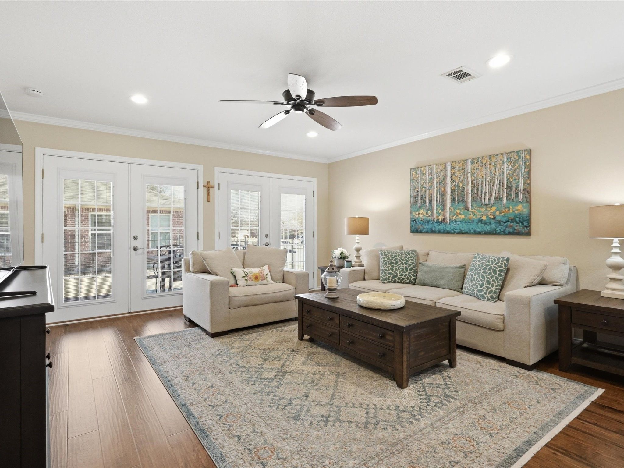 Welcome to this charming 2-bedroom, 2-bathroom home situated on a corner lot in the highly sought-after Frisco Lakes community, where comfort and lifestyle come together. Step inside to an open floor plan filled with natural light, creating a bright and welcoming atmosphere. The expansive kitchen features granite countertops, stainless steel appliances, and a breakfast nook, offering both style and functionality for everyday living. The dining area flows seamlessly into the living room, where beautiful French doors add character and provide easy access to the outdoors. The primary bedroom, located at the back of the home, offers privacy and peaceful views. The ensuite bathroom includes dual sinks, a large walk-in shower, and a spacious walk-in closet, providing comfort and convenience. A secondary bedroom is tucked away, making it ideal for guests or visiting family. A full bathroom is located just next to it, offering added flexibility. An additional office space with a closet provides the option to convert the room into a third bedroom, hobby space, or private study. Living in Frisco Lakes means enjoying a vibrant and active lifestyle. Residents have access to sparkling swimming pools, state-of-the-art fitness centers, scenic ponds, and a pristine golf course. The community also offers a wide variety of social clubs, recreational activities, and gathering spaces, making it easy to connect with neighbors and stay active. Whether you’re enjoying a round of golf, time at the clubhouse, or relaxing at home, this property offers the perfect balance of comfort and community. Don’t miss the opportunity to experience the lifestyle that Frisco Lakes has to offer.