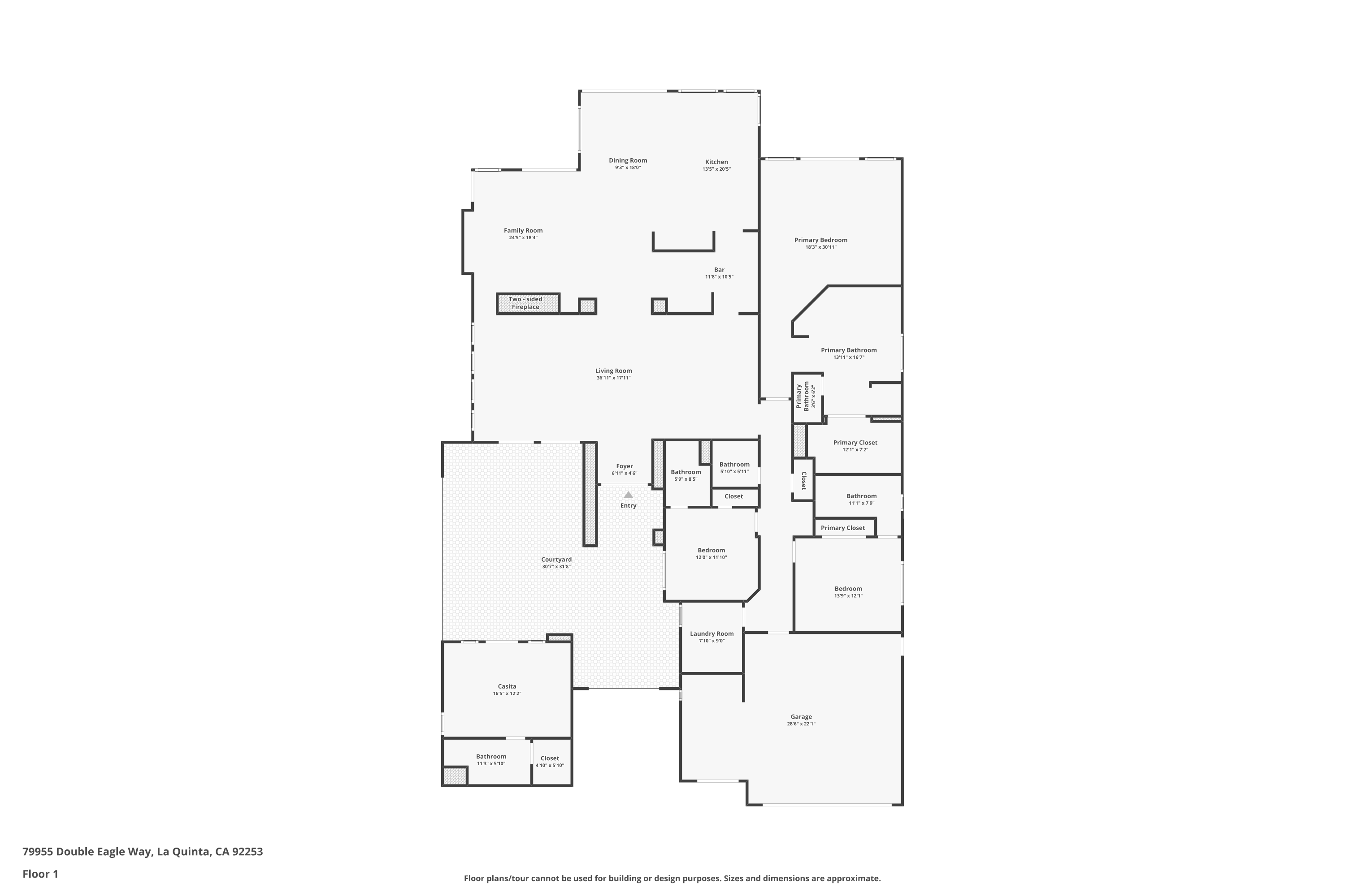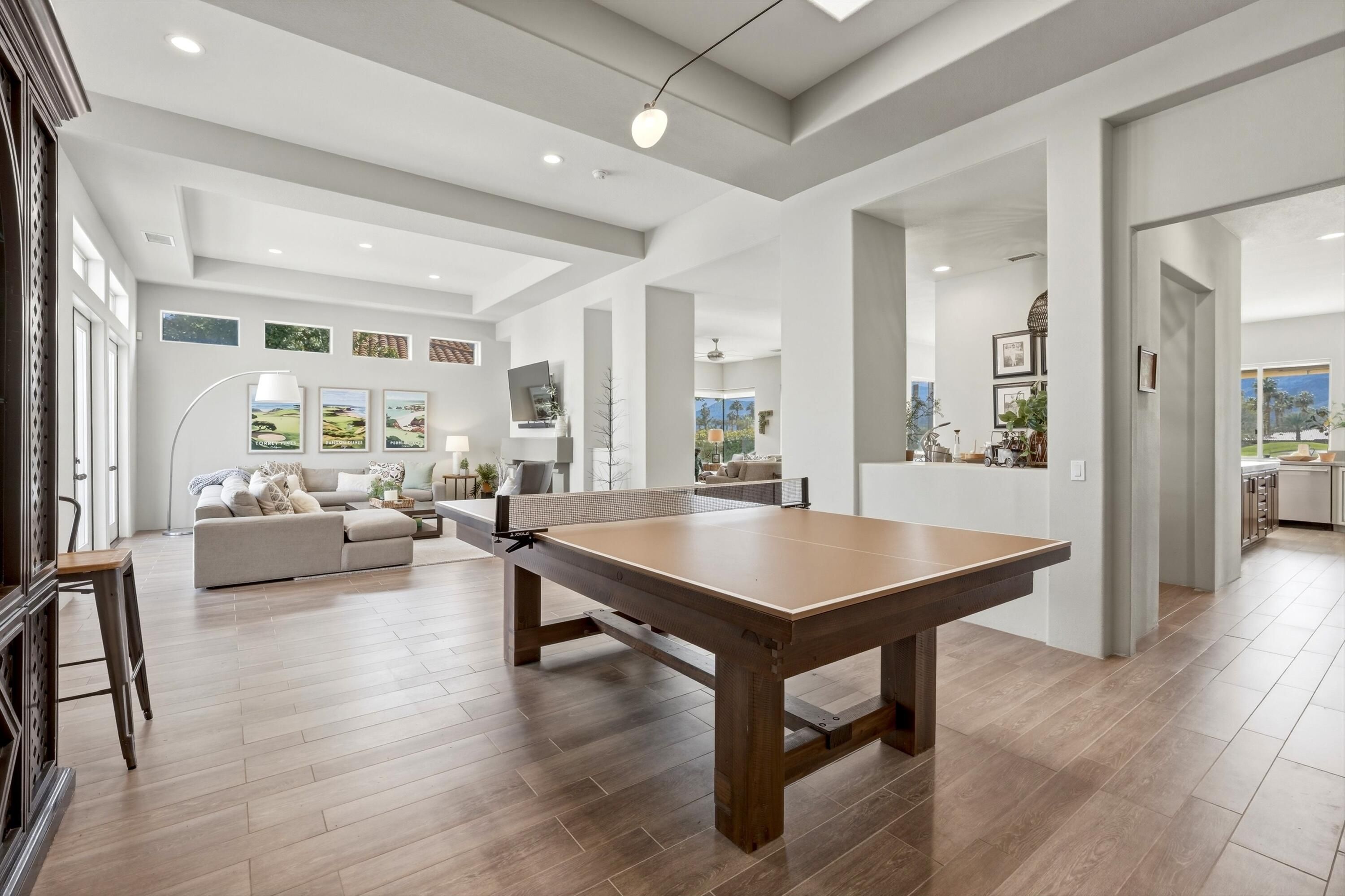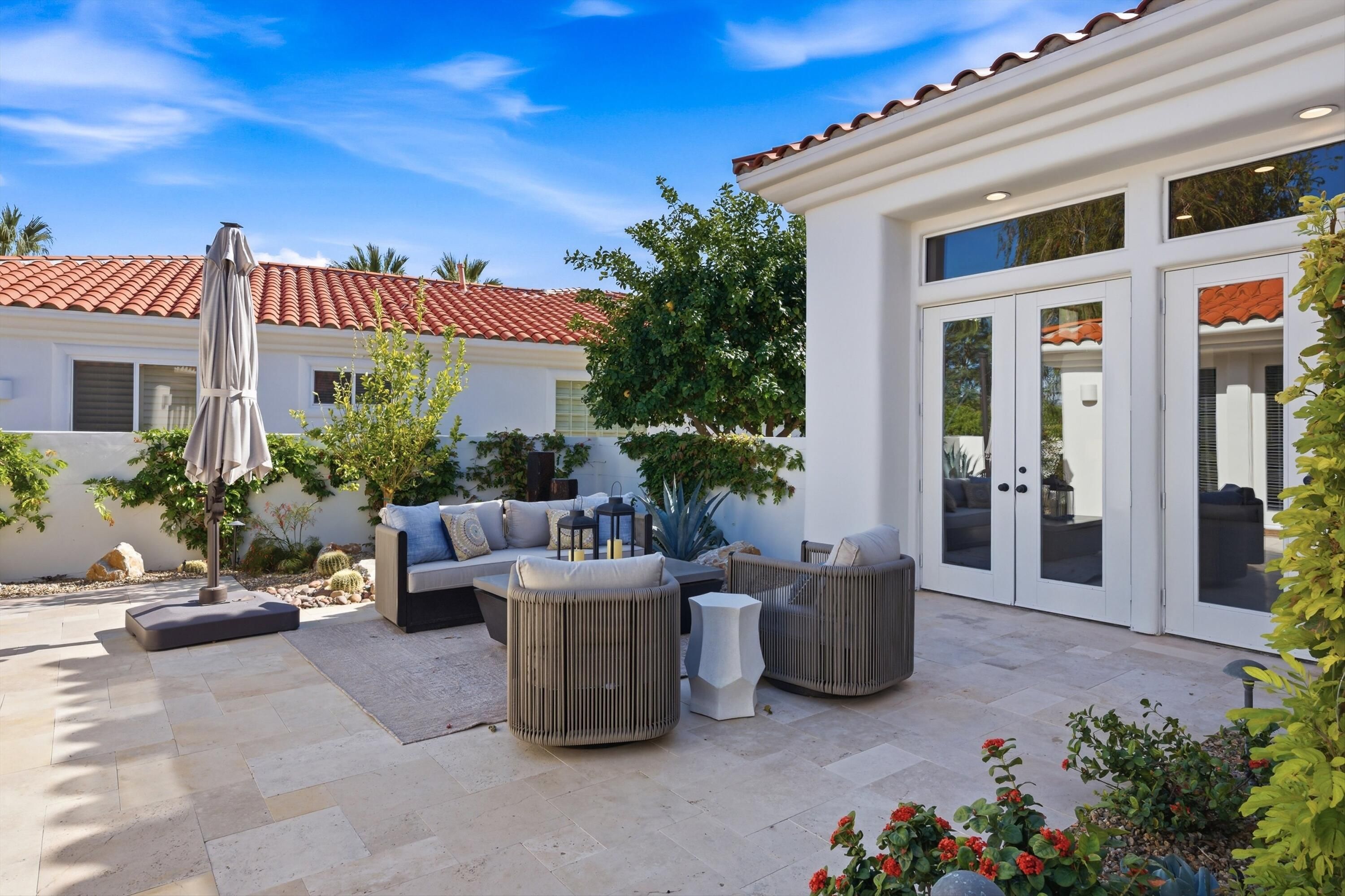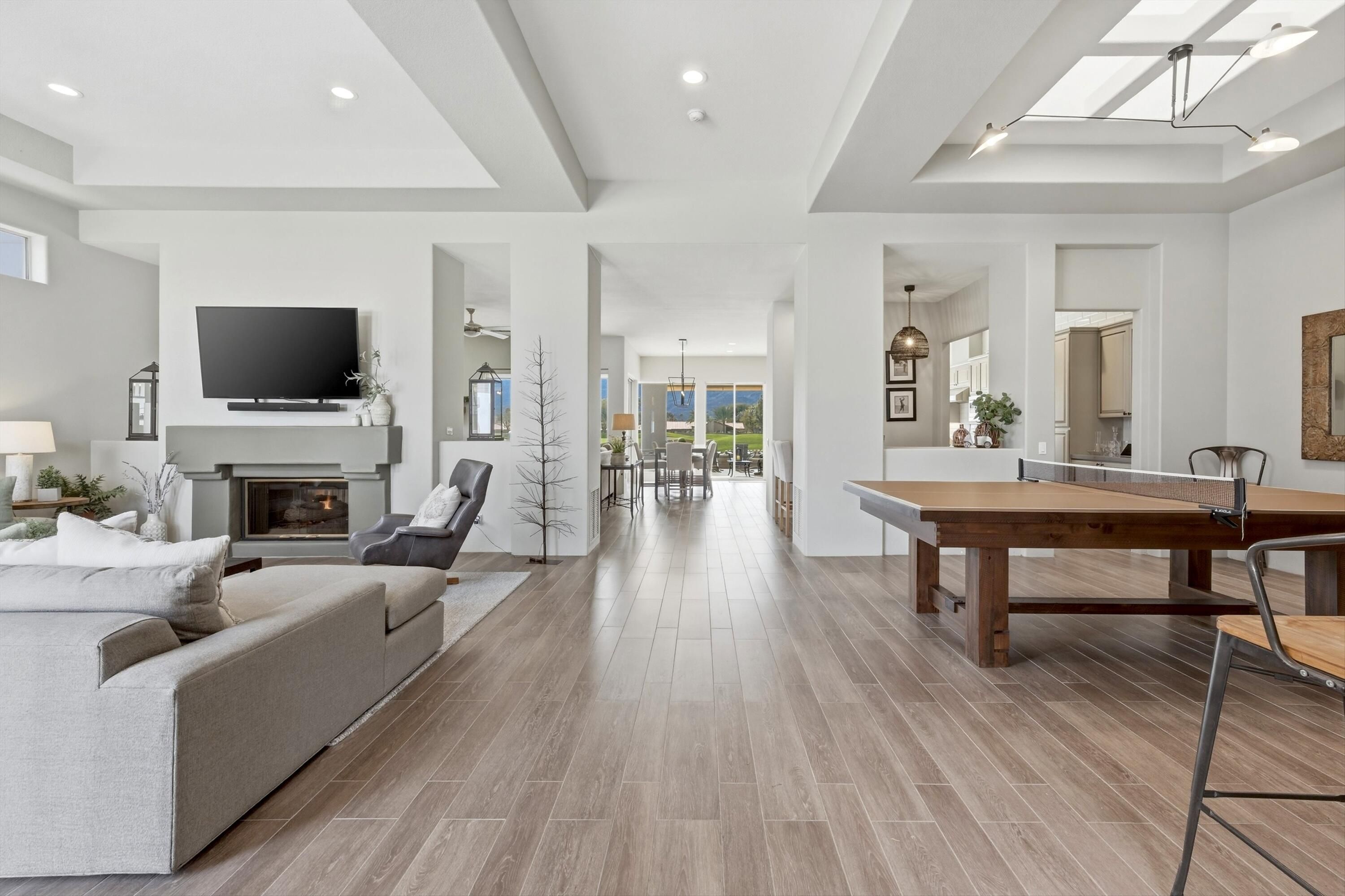 One of the most sought-after locations in PGA West. This is a rare opportunity to own on one of the most coveted streets in the community, offering panoramic lake, golf course, and Santa Rosa Mountain views that truly feel endless. Positioned directly across from the clubhouse, this home delivers one of the most convenient and desirable settings in all of PGA West. Featuring 4 bedrooms and 4.5 bathrooms, including a private detached casita, the layout is ideal for hosting family and guests while maintaining privacy. A striking dual-sided fireplace creates warmth and architectural interest between the main living areas, while expansive windows frame the Santa Rosa Mountains, allowing you to enjoy breathtaking views from nearly every primary room in the home. The newly refreshed courtyard is enhanced by a tranquil water feature, adding a sense of arrival and serene ambiance the moment you enter. The residence has been thoughtfully remodeled and enhanced, including fresh exterior paint, and upgraded outdoor living spaces designed for year-round desert enjoyment. The backyard patio captures breathtaking views while remaining safely positioned out of range from errant golf shots, providing both scenery and peace of mind. Enjoy evenings around the dramatic outdoor firepit, entertain with the built-in BBQ area, and stay comfortable even in warmer months with the integrated misting system. The location places you just moments from the private clubhouse, driving range, golf practice facilities, sports club with tennis, pickleball, fitness center, resort-style pool, and the community dog park. Offered furnished per inventory, this home provides a seamless opportunity to begin enjoying the PGA West lifestyle immediately. Opportunities on streets like this rarely come available.