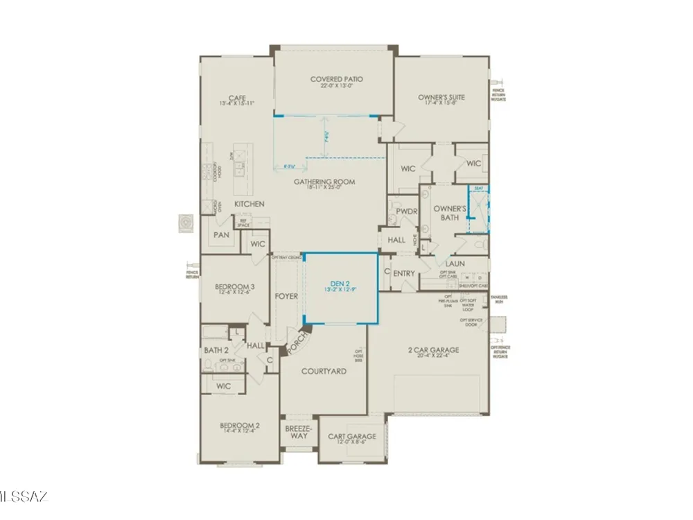 Quick move-in home set for completion September 2025. This is the Voyage open floor plan with three bedrooms plus den, 1 full bath, 1 3/4 bath and a powder room. This home features 10' ceilings, walk-in pantry, tankless water heater, gas in kitchen/laundry/backyard, and zero entry walk-in shower in owner's suite. The kitchen features upgraded stacked cabinets in Grant Alder (Butternut), Miami Oro Quartz countertops, Chef's kitchen layout (stainless steel cooktop, hood, wall microwave/oven combo). Pre-wire for ceiling fans and pendant lighting and many other tasteful design selections round out this amazing quick move-in home. Clubhouse/Rec Center estimated year end 2025.
