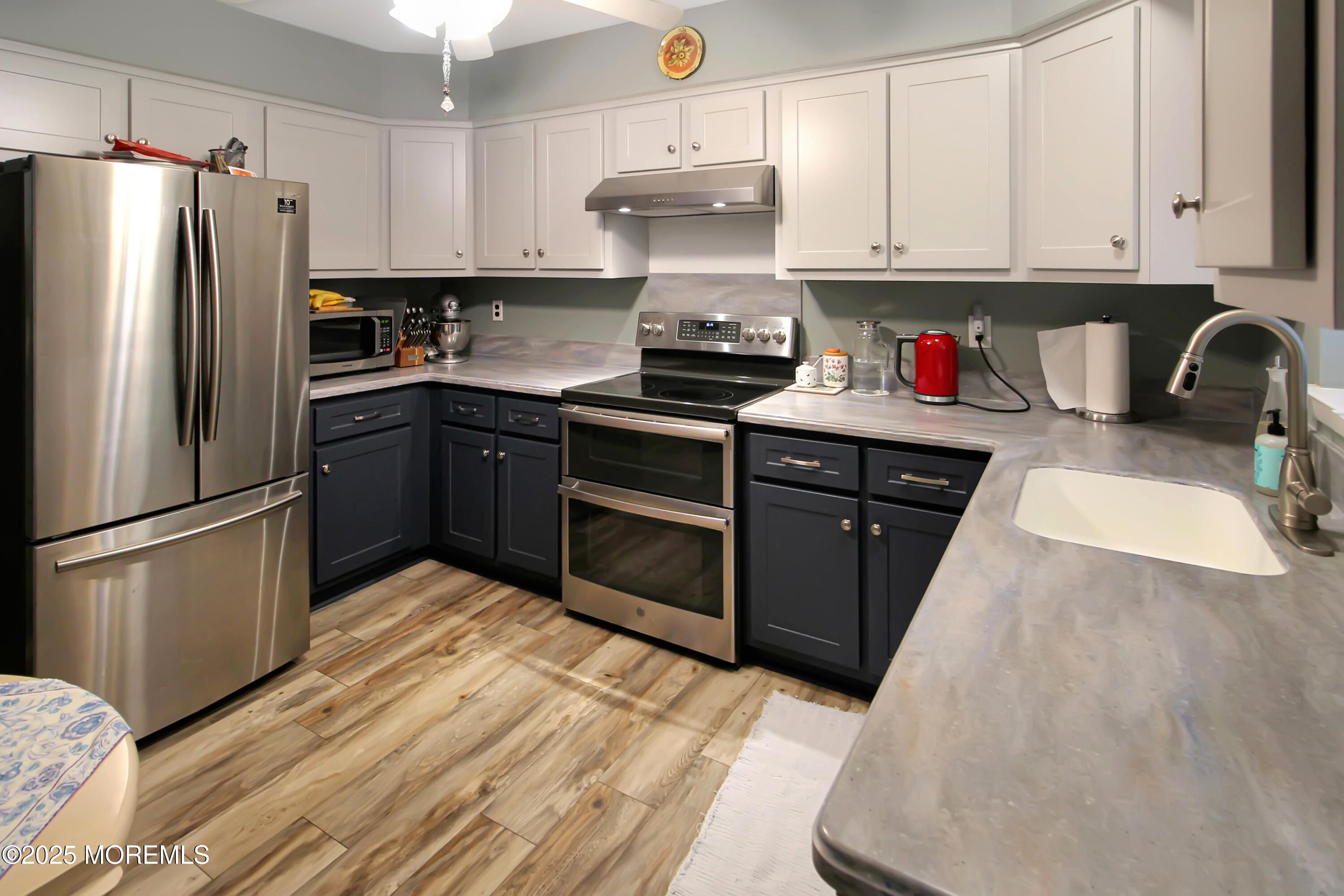 Bake me a cake as fast as you can in the double oven stove's convection oven in this Lexington's RENOVATED KITCHEN. Welcome to 7b Musket Lane in the 55+ community of Crestwood Village Co-op 4. This is the 2 bedroom Lexington model. Besides the renovated kitchen, this home has vinyl plank floors in the large Living Room, Dining Room, Kitchen, Hallway and Primary Bedroom. This is the largest attached model in the Crestwood's offering 2 bedrooms, 2 full bathrooms, eat-in kitchen with a side door out to a screen porch, a sunroom/den, laundry room with a laundry sink and a garage with a newer overhead garage door. The home is located close to the CV4 Clubhouse and with easy access in and out of the community. This is a move-in ready home that won't disappoint. Ocean County Living At Its Best! New Beginnings Start In Whiting! Call a knowledgeable Whiting 55+ real estate specialist today to find out more and see this home.