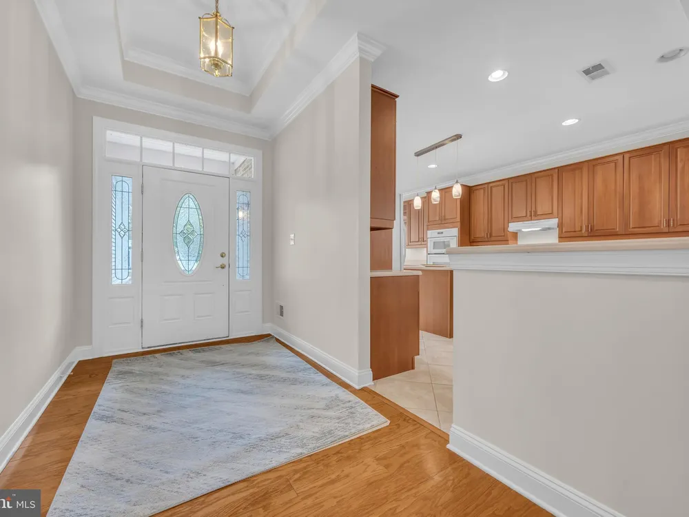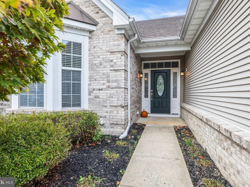 Welcome to Enchantment—Hamilton’s premier 55+ community where luxury meets lifestyle. Nestled on a premium cul-de-sac lot, this meticulously maintained Fountainbleau model features 2 bedrooms, 2 full bathrooms, a dedicated office, and over $50,000 in thoughtful builder upgrades. Designed by its original owners with comfort and elegance in mind, this home radiates warmth and sophistication. Step inside to gleaming hardwood floors, soaring ceilings, and abundant natural light that create a bright, airy ambiance. Crown molding and recessed lighting add refined touches throughout. The eat-in kitchen features Corian countertops, premium maple cabinetry, a bay window, a large center island, pantry, and generous cabinet space—perfect for both casual meals and entertaining. Enjoy seamless one-level living with an open-concept layout that flows from the spacious dining and living areas to a sunroom with serene backyard views. French doors and sliders lead to a private patio overlooking tranquil woods—ideal for quiet mornings or evening relaxation. The expansive primary suite boasts a tray ceiling, walk-in closet, and a spa-like bath with soaking tub, shower stall, and double sinks. A large laundry room with a deep sink adds convenience, while the dedicated office provides flexible space for work or hobbies. Enchantment offers an active lifestyle with amenities like bocce, pickleball, tennis courts, a fitness center, clubhouse, and a sparkling saltwater pool—all within a gated community. Every detail has been carefully crafted for the next chapter of elegant living. Minutes from major shopping, commuting routes and train stations. See this today!