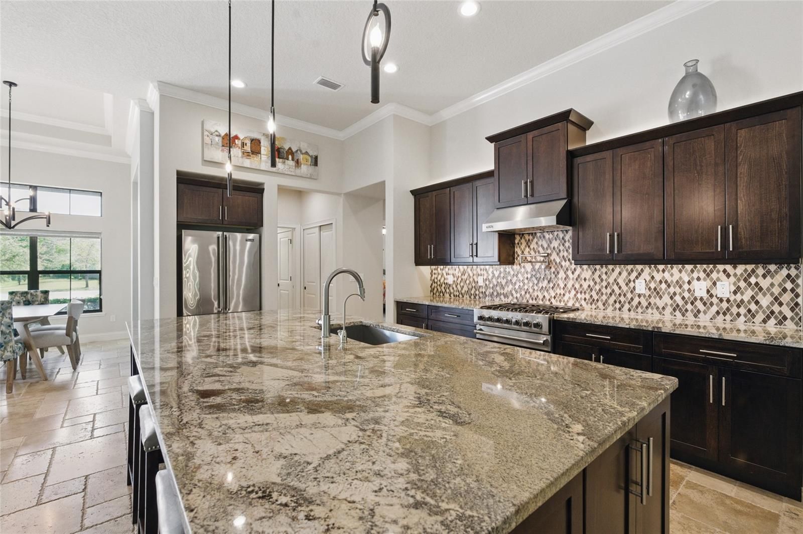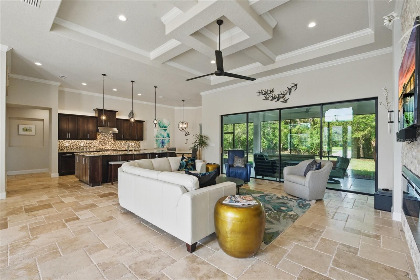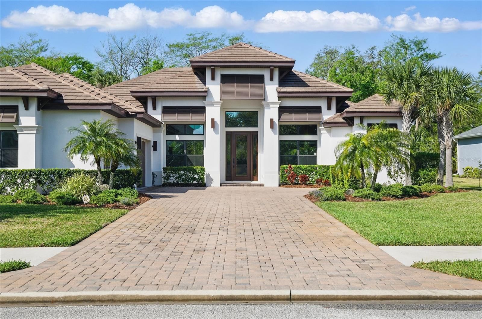 Under contract-accepting backup offers. Welcome to 8 Blue Oak Lane, a stunning residence offering luxury living in the highly sought-after private, gated community of Wild Oaks in Grand Haven. This meticulously designed home spans nearly 2,500 square feet of living space, providing ample room for both relaxation and entertaining. Step inside to discover a spacious, open-concept layout featuring high-end finishes and abundant natural light. The large, chef-inspired kitchen is a highlight of the home, featuring a gas range, a generously sized granite island with plenty of storage, and a perfect flow for cooking and entertaining. Whether you're preparing a gourmet meal or enjoying casual dining, this kitchen is designed to meet all your culinary needs. The oversized lot is beautifully landscaped with mature trees, creating a serene and private atmosphere. Enjoy outdoor living at its finest with a large screened-in back patio that overlooks the lush yard and tranquil creek — perfect for morning coffee, evening gatherings, or simply unwinding in nature. The home offers a versatile floor plan, including a 4th bedroom that serves as an ideal den or office. This room features beautiful glass French doors and a bright window, offering both privacy and elegance. The 3rd bedroom includes an ensuite bathroom with direct access to the back porch, providing a peaceful retreat for guests. The master suite is a true sanctuary, boasting dual walk-in closets and a luxurious ensuite bathroom adorned with exquisite travertine tile. This space exudes sophistication, offering a spa-like experience with a soaking tub, separate shower, and double vanities. HVAC with air scrubber, security system, electric fireplace with heat, instant hot water, hurricane impact garage doors, reverse osmosis system in kitchen, Viking range with pot filler, 14ft soaring ceilings with accent trays, irrigation-reclaimed water, regular pest control, energy efficient hot water heater, and MORE! Schedule a private tour today and see why this exceptional home is the perfect place to call your own.