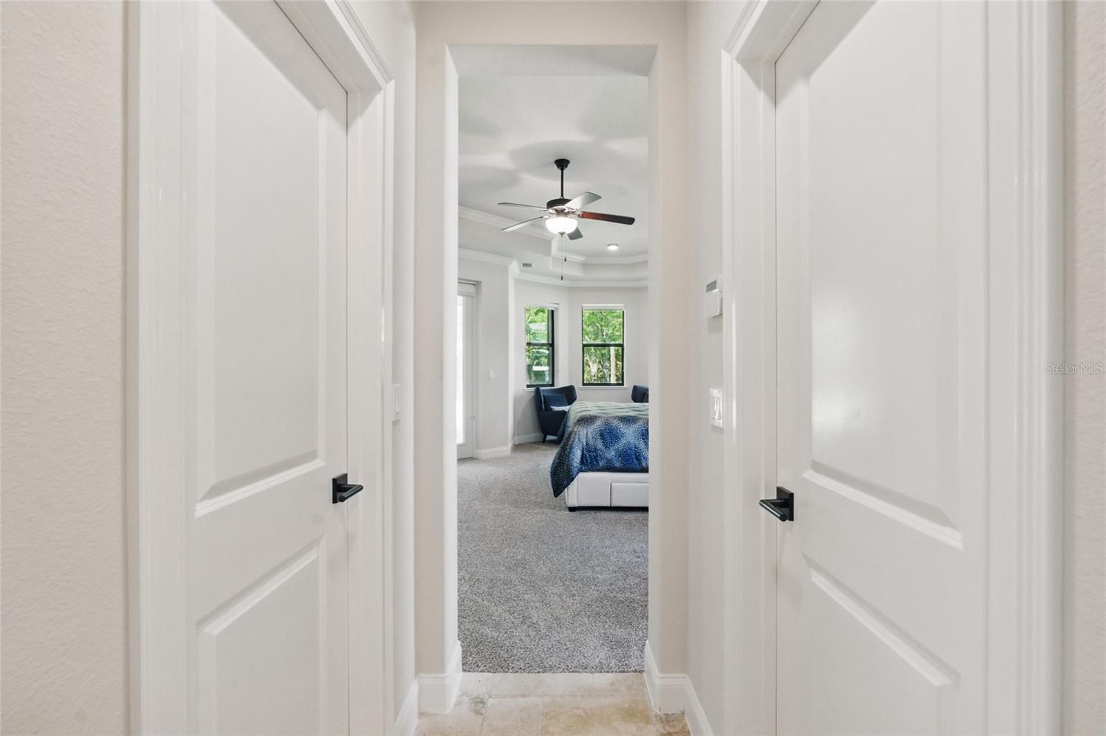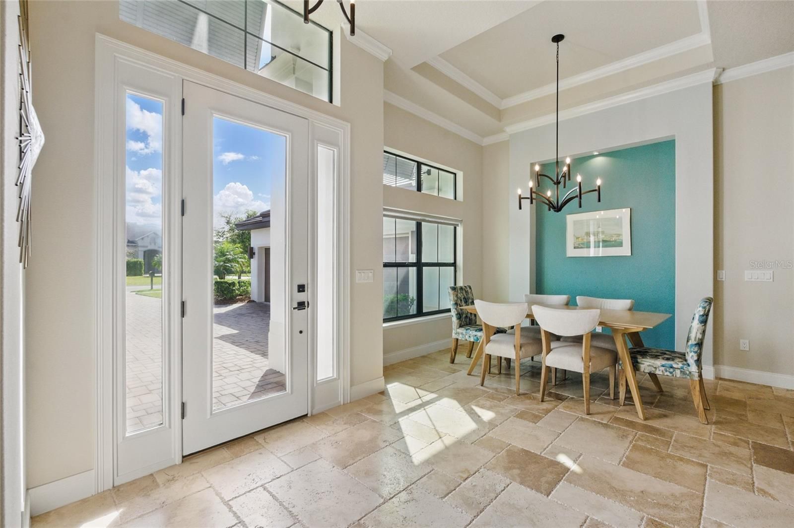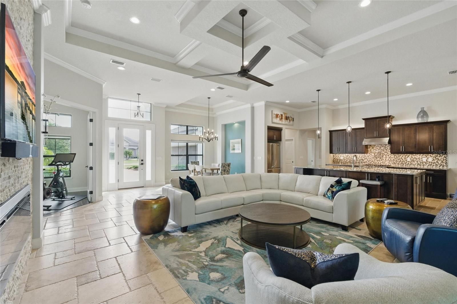 Under contract-accepting backup offers. Welcome to 8 Blue Oak Lane, a stunning residence offering luxury living in the highly sought-after private, gated community of Wild Oaks in Grand Haven. This meticulously designed home spans nearly 2,500 square feet of living space, providing ample room for both relaxation and entertaining. Step inside to discover a spacious, open-concept layout featuring high-end finishes and abundant natural light. The large, chef-inspired kitchen is a highlight of the home, featuring a gas range, a generously sized granite island with plenty of storage, and a perfect flow for cooking and entertaining. Whether you're preparing a gourmet meal or enjoying casual dining, this kitchen is designed to meet all your culinary needs. The oversized lot is beautifully landscaped with mature trees, creating a serene and private atmosphere. Enjoy outdoor living at its finest with a large screened-in back patio that overlooks the lush yard and tranquil creek — perfect for morning coffee, evening gatherings, or simply unwinding in nature. The home offers a versatile floor plan, including a 4th bedroom that serves as an ideal den or office. This room features beautiful glass French doors and a bright window, offering both privacy and elegance. The 3rd bedroom includes an ensuite bathroom with direct access to the back porch, providing a peaceful retreat for guests. The master suite is a true sanctuary, boasting dual walk-in closets and a luxurious ensuite bathroom adorned with exquisite travertine tile. This space exudes sophistication, offering a spa-like experience with a soaking tub, separate shower, and double vanities. HVAC with air scrubber, security system, electric fireplace with heat, instant hot water, hurricane impact garage doors, reverse osmosis system in kitchen, Viking range with pot filler, 14ft soaring ceilings with accent trays, irrigation-reclaimed water, regular pest control, energy efficient hot water heater, and MORE! Schedule a private tour today and see why this exceptional home is the perfect place to call your own.