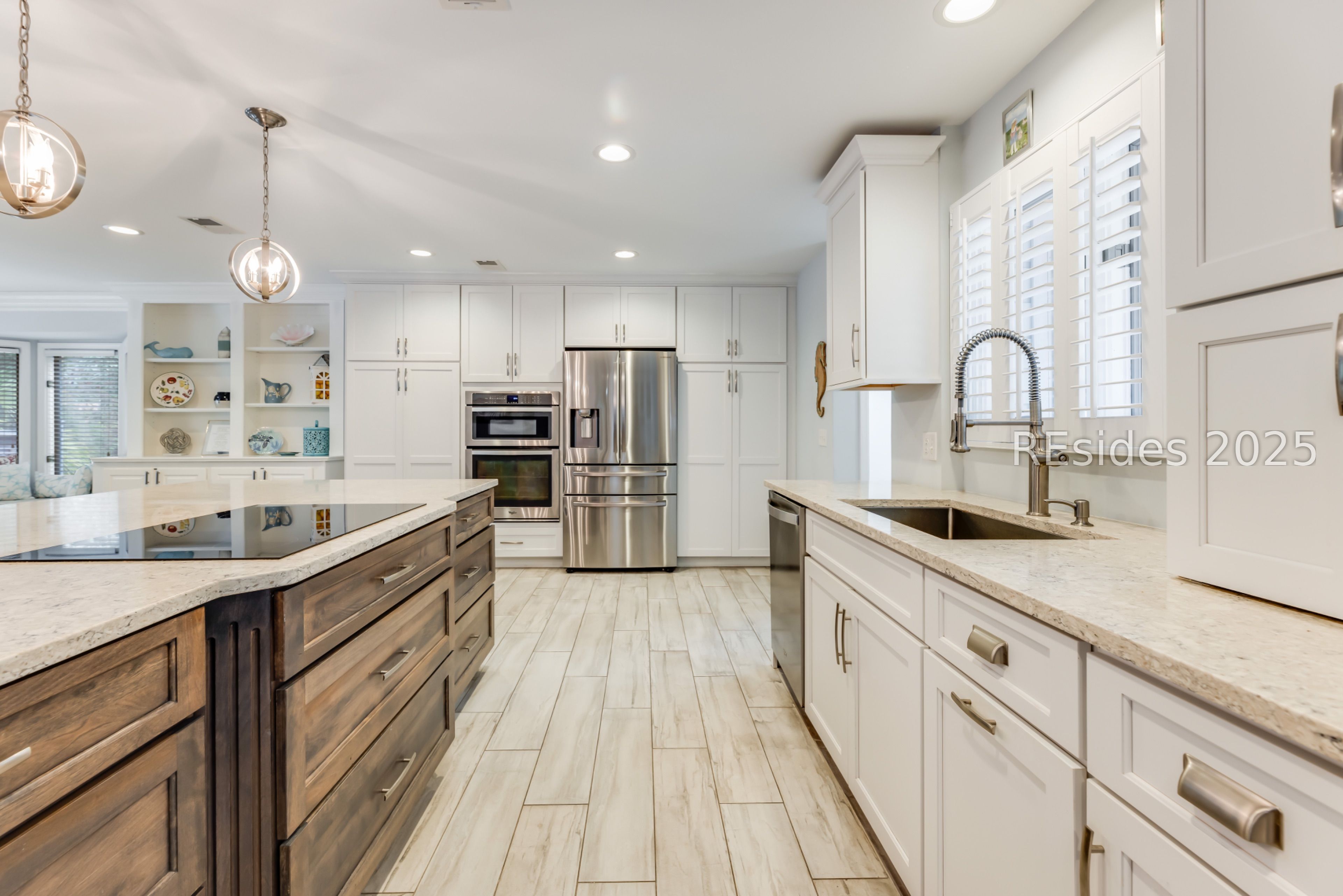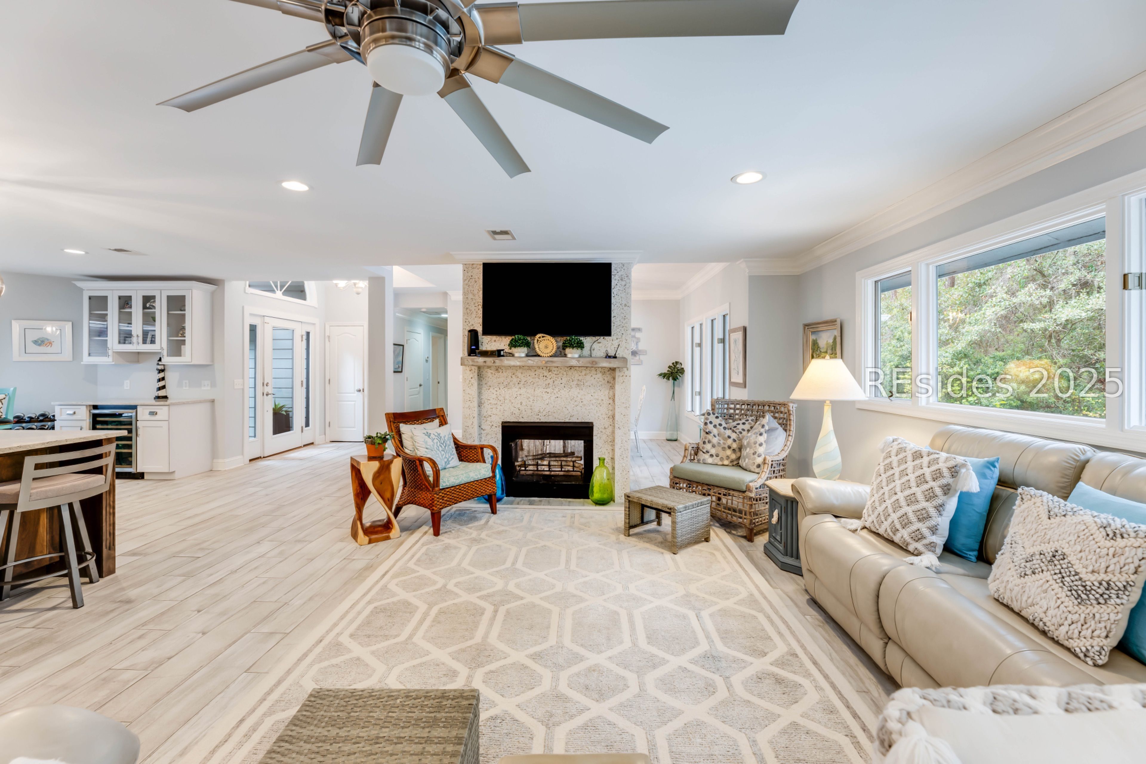 Everything has already been done! Located in the gated community of Hilton Head Plantation, this 3-bedroom, 2.5-bath home has been completely renovated with an open-concept layout that makes the space feel bright and spacious. The living area flows easily into the kitchen and dining spaces, centered around a welcoming fireplace. Inside, you'll find durable porcelain tile flooring throughout the main areas, newer cabinets, modern stainless steel appliances and wine cooler. The updates in 2024 include a new HVAC system and water heater for reliable comfort. Step out back to your own private retreat: a saltwater pool and hot tub, overlooking a peaceful wooded view with mature trees and plenty of privacy. Hilton Head Plantation offers residents miles of trails for walking and biking, community pool, tennis courts, private beach access on Port Royal Sound, golf courses, a marina, and more. This move-in-ready home is perfect for enjoying the relaxed Hilton Head Island lifestyle. This one is a must see on Hilton Head Island!