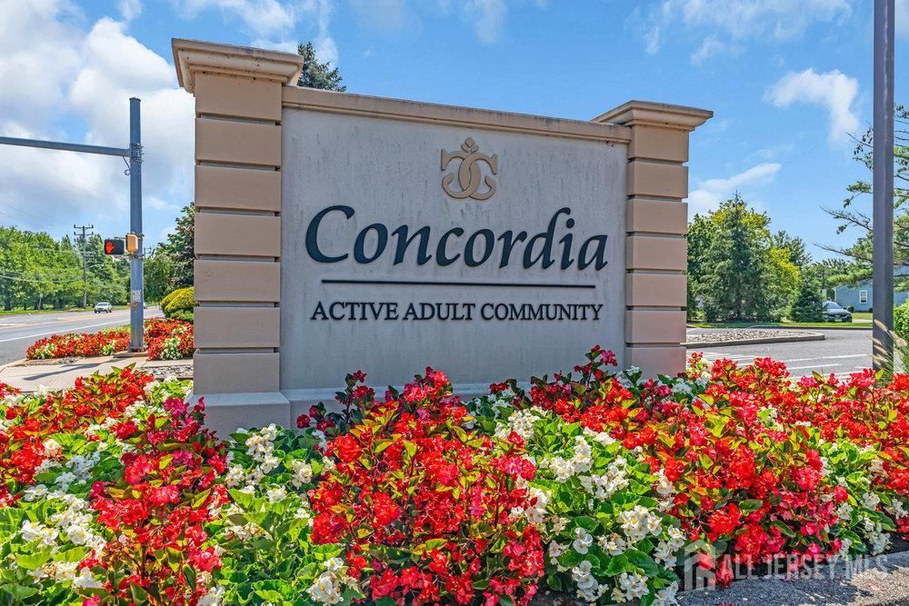 Look no further, a real showstopper! SPACIOUS AND STUNNING! This sought-after Brandon Model home with two-bedrooms, two-baths, den and garage in the premium 55+ gated community of Concordia, features luxurious upgrades and an impressive open, seamless layout. This open floor plan begins with a L-shaped spacious entrance and hallway featuring porcelain tile. This open floor plan offers a large living room, open to the dining room with solid wood built-ins, the kitchen, and the den, which leads to the patio with professional landscaping which overlooks a picturesque, quiet, and hilly setting: the living room, dining room, and den feature Brazilian hardwood floors. The wall separating the dining room and kitchen was removed, resulting in a seamless floor plan that connects the kitchen, dining room, and other spaces for a smooth, open flow. The remodeled kitchen features new elements, including porcelain tiles, solid wood cabinets, undercabinet lighting, new stainless-steel appliances, granite countertops with an undermount sink, and an entire wall of additional cabinets and storage, including three pantries. Continue to two spacious bedrooms, each with new carpeting, window seats, and spacious closets. Two remodeled granite baths feature solid wood cabinetry and porcelain tiles, a hall linen closet, and a laundry room with an additional whole wall of closets. The spacious en-suite features a large sleeping area with a wall of custom-built-ins, a full bath, a separate linen closet, a WI, and two additional closets. Top-of-the-line insulated windows and sliders with argon glass, recessed lighting and fans, new roof, and siding. Community amenities include a clubhouse with a billiards room, a sewing room, a stage, indoor and outdoor pools, 18-hole golf course, tennis/pickleball, and shuffleboard, all situated on scenic grounds. Near shopping, houses of worship, and the library. It offers easy access to NYC transportation via major highways, trains, and buses, with a NYC bus stop at the Grand Clubhouse.