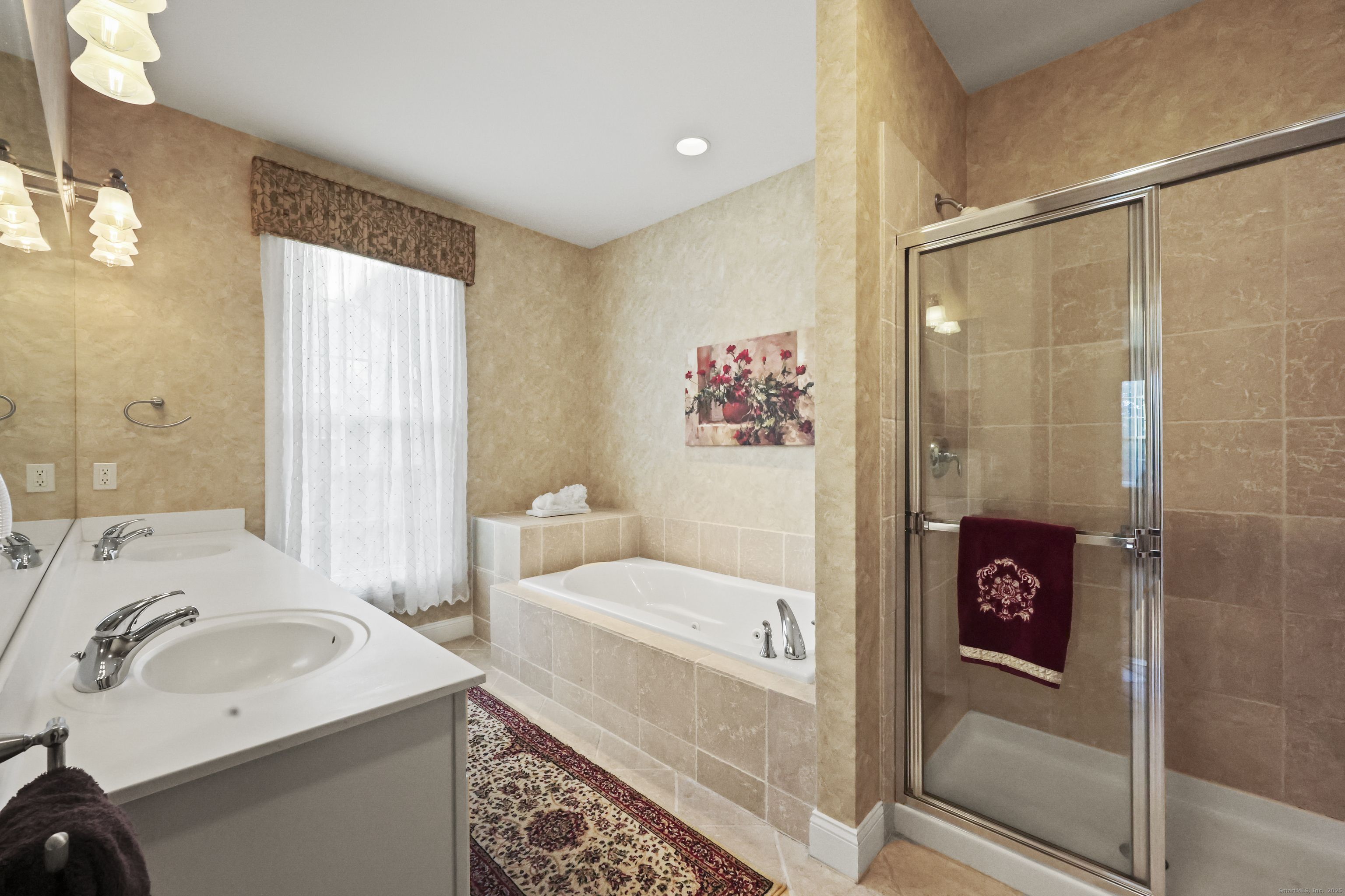 Welcome to carefree living in this sought-after 55+ adult community! This beautifully maintained 3-bedroom home offers an ideal blend of comfort, convenience, and modern design, featuring a first-floor primary suite complete with a spacious walk-in closet and a luxurious bath with double sinks, a stall shower, and a soaking tub. The open floor plan is highlighted by gleaming hardwood floors, natural gas heat, central air, and the peace of mind of a whole-house generator. The inviting living room with a gas fireplace flows seamlessly into the family room, which opens to the well-appointed kitchen-perfect for gatherings and everyday living. A formal dining room and first-floor laundry add ease and functionality. Upstairs, you'll find a second bedroom suite plus an additional large bedroom, offering plenty of space for guests, hobbies, or a home office. Generous closet space is found throughout the home. A full basement provides excellent potential for finishing should you desire even more living space. The property also includes an attached 2-car garage for added convenience. This vibrant community offers wonderful amenities, including a clubhouse with fitness/exercise room and meeting space, walking trails, and a playground/tot lot. A perfect home for those seeking style, comfort, and an active lifestyle-don't miss this opportunity! Seller is Marilyn E Larose Trust, Mark A Larose, Trustee