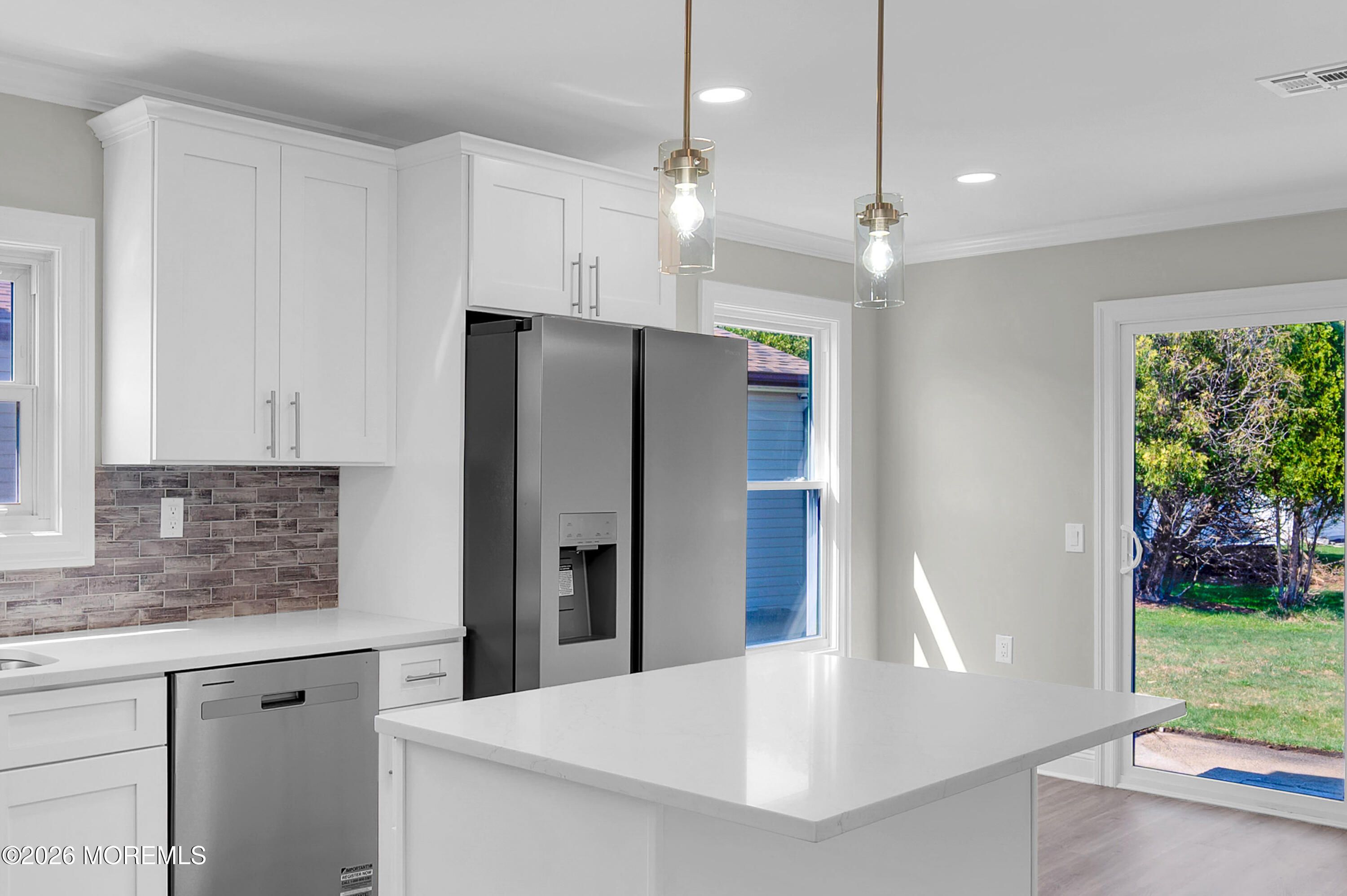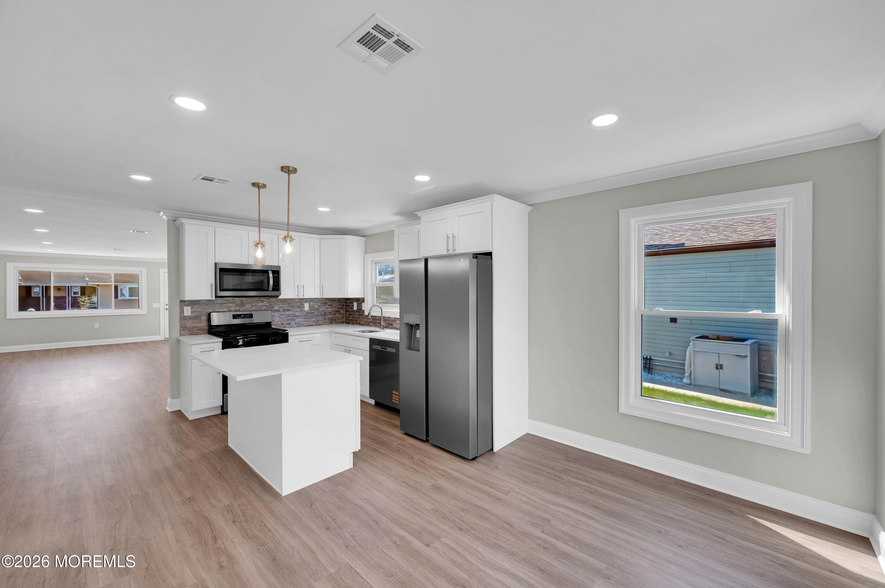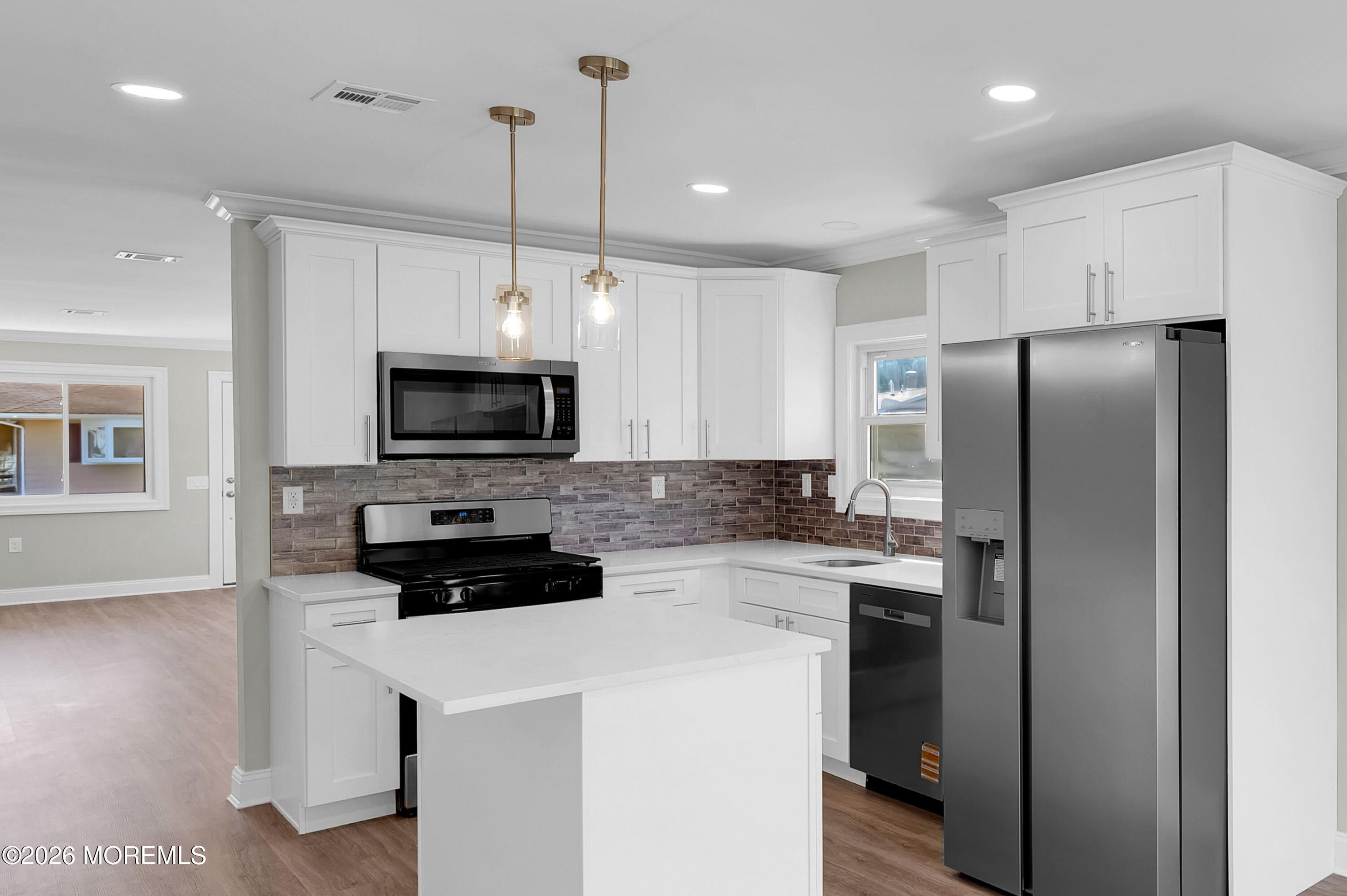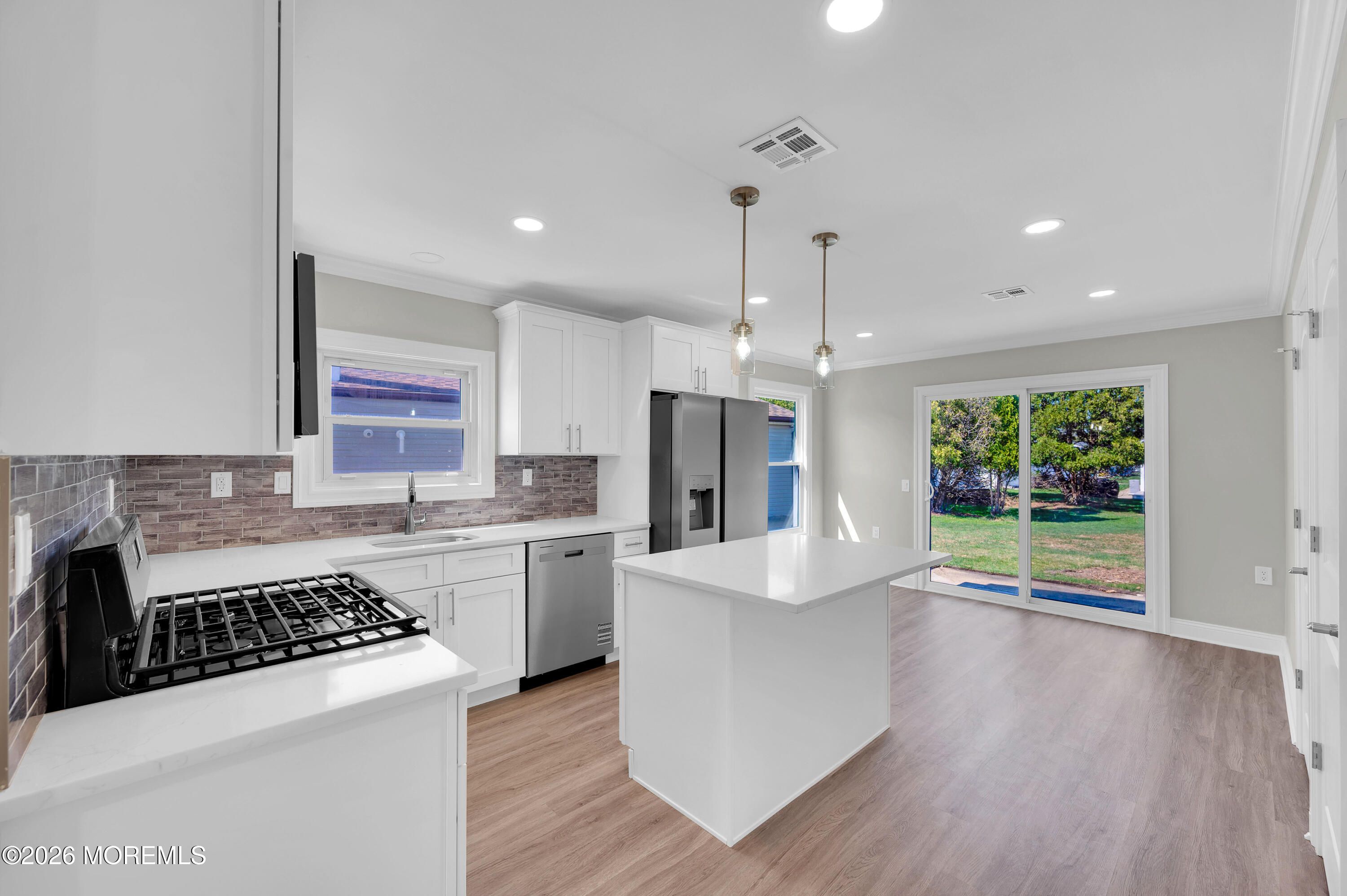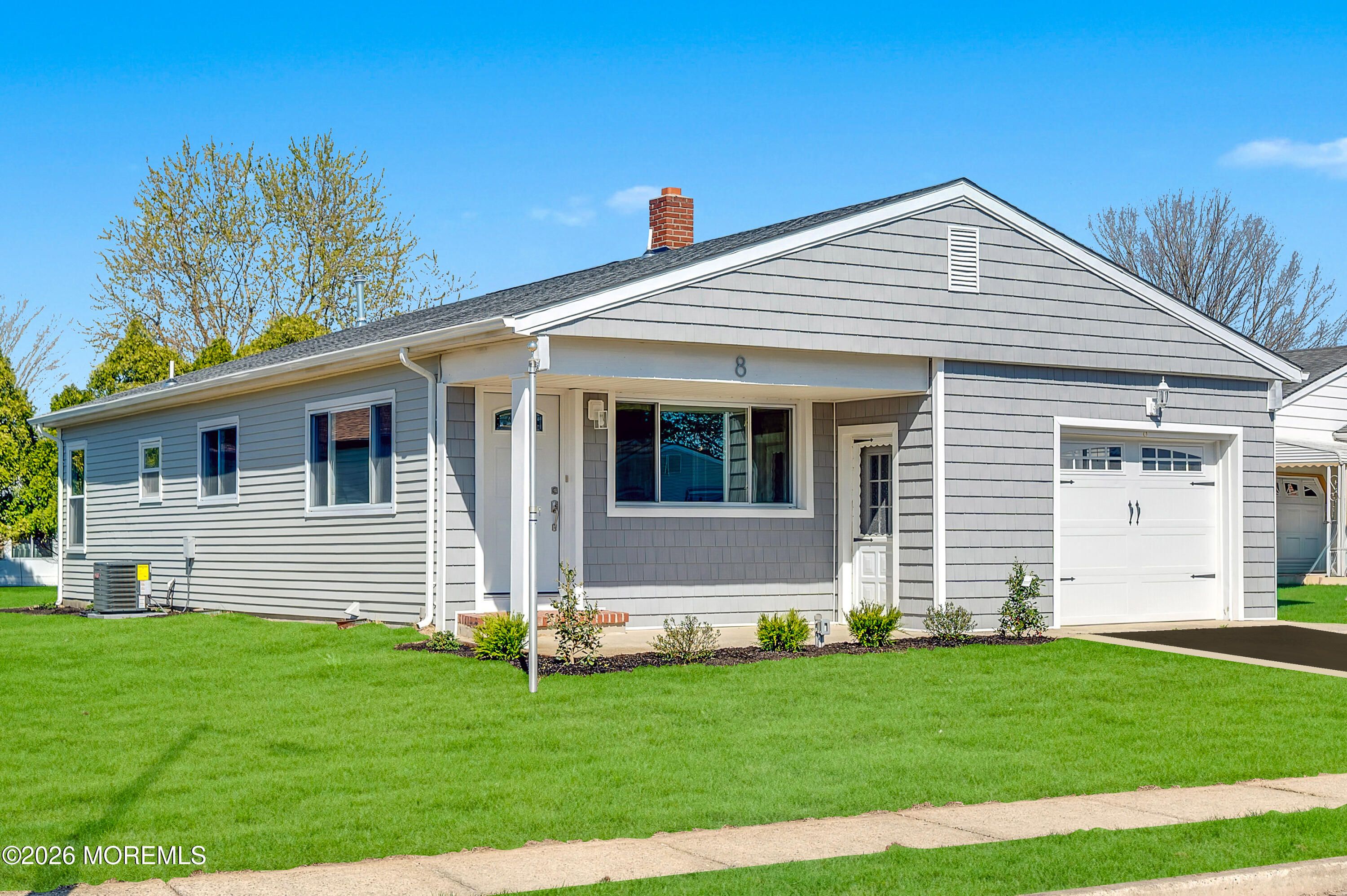 FULLY RENOVATED Lakeview model in the Holiday City West 55+ community with 2 bedrooms, 2 full bathrooms, and a 1-car garage! Step inside to find a refreshed interior featuring decorative molding, vinyl plank flooring, and recessed lighting throughout. There is a spacious living room and an eat-in kitchen, complete with quartz countertops, a center island, and a full new appliance package. The dining area includes sliding doors leading to the patio. The primary bedroom includes a ceiling fan and a luxurious en suite bathroom with a sleek shower stall. Other major updates include a new roof, new furnace, new cedar shake siding, and a new driveway. Enjoy all that Holiday City West has to offer, including a clubhouse, pool, and tennis courts! Check out this stunning renovated home today!