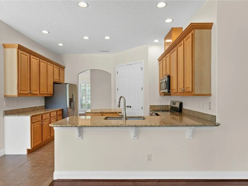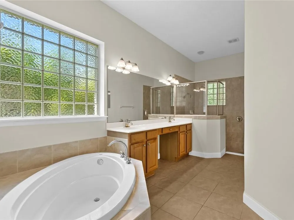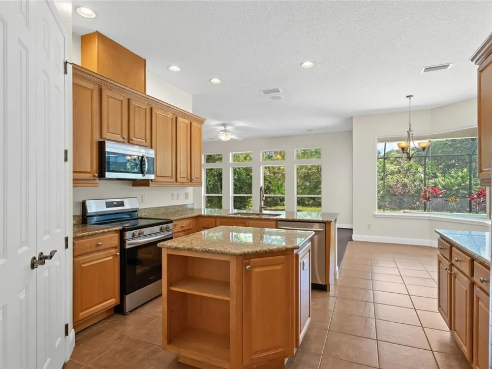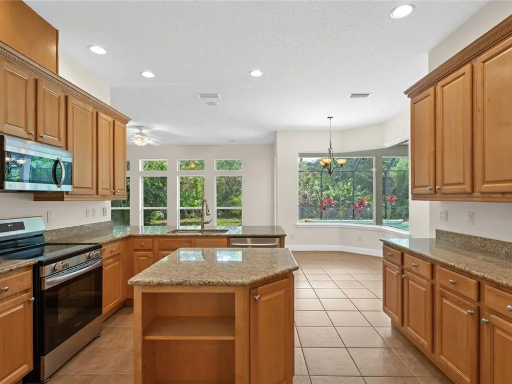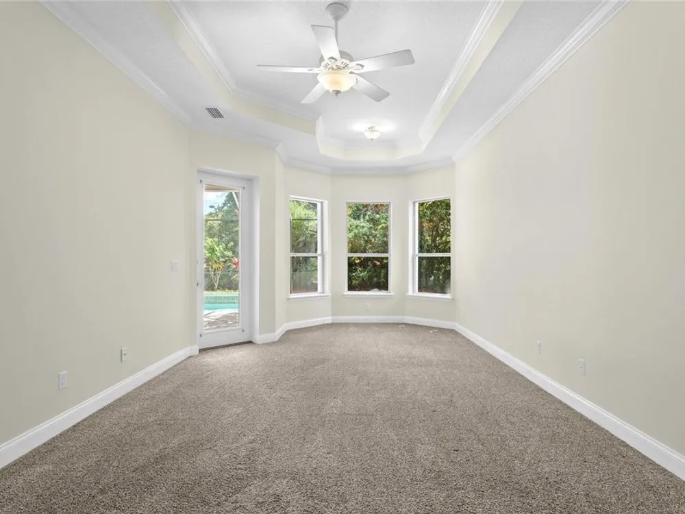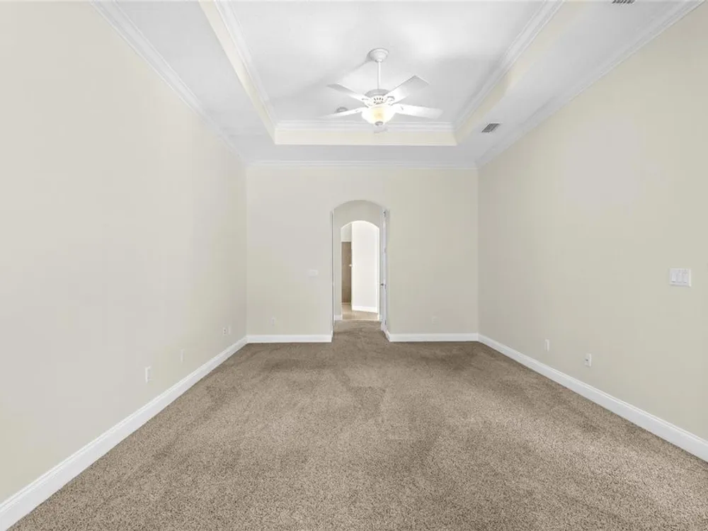- Ceiling Fan(s), Crown Molding, Eat-in Kitchen, High Ceilings, Kitchen/Family Room Combo, Main Level Primary, Split Bedrooms, Stone Counters, Tray Ceiling(s), Walk-In Closet(s)