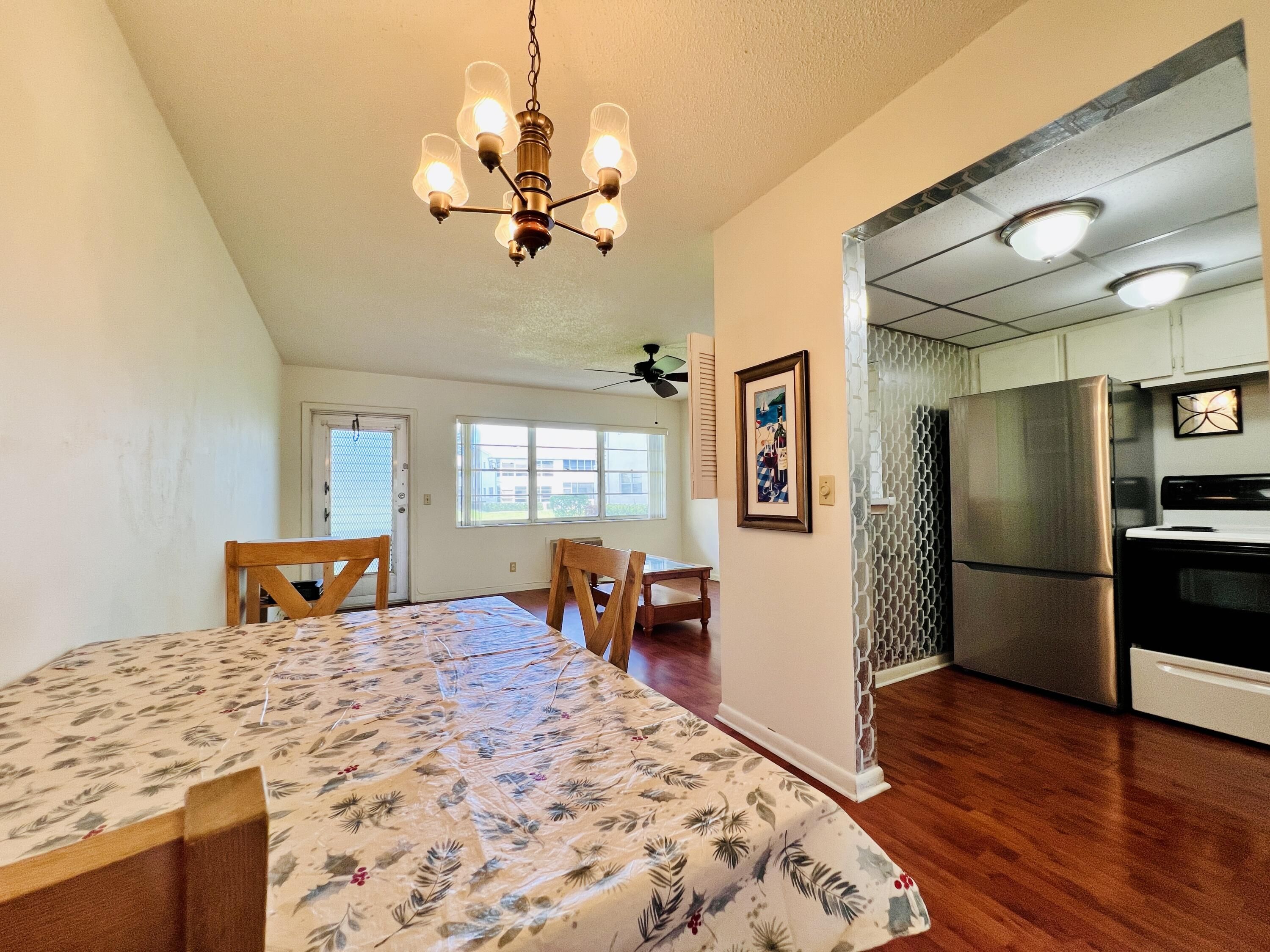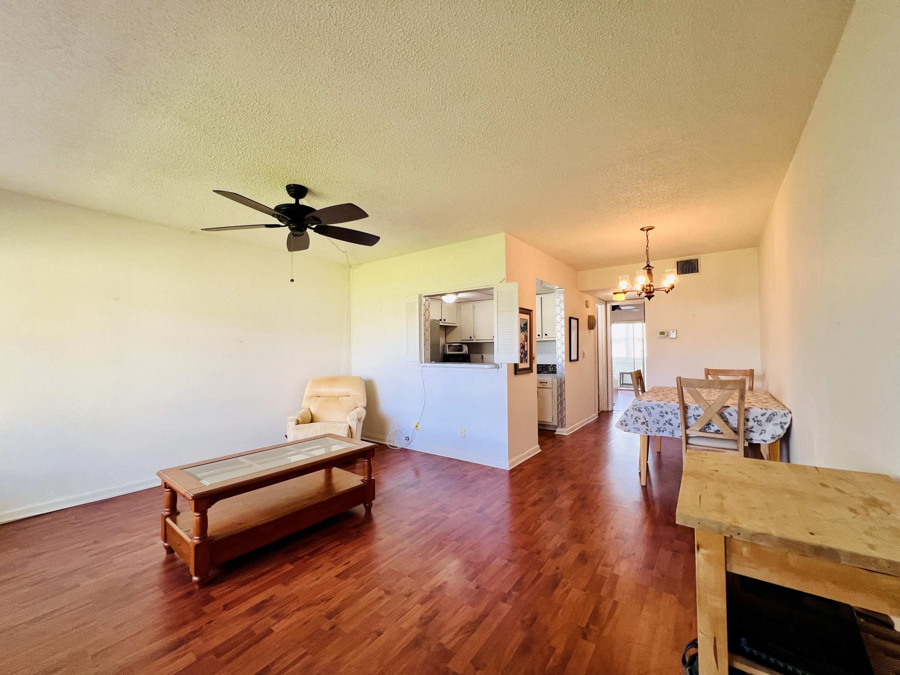 A DELIGHT WITH SPECIAL FEATURES IN 55+ CENTURY VILLAGE! Nicely Maintained FIRST FLOOR 1/1 With CENTRAL AC (Rare For a 1/1 Unit)! Pretty Kitchen With White Painted Cabinets and Granite Look Counters. Updated Full Bath Features A Step-in Shower. Upgraded Gleaming Wood Look Flooring Flows Throughout. Long Lanai Includes A Door For Easy Access to the Parking Area. Nicely Maintained Building With New Roof (2023), No Special Assessments, and Reserves! Fantastic Location Close to the Popular Kent Pool! Century Village is a Vibrant 55+ Resort Style Community Centrally Located In Desirable Palm Beach County, Florida! Century Village... is a 55+ Resort Style community with so much to offer - Much To Offer - shows, movies, clubs, pools, security, and transportation service. The Clubhouse features a theater, indoor pool, card room, community/party room, billiard room, shuffleboard, tennis, pickleball, bocce, and two outdoor pools, Numerous heated outdoor pools throughout the community. Separate fitness center with gym and outdoor heated pool & resistance pool. Two guarded gates and 24-hour roving security patrol.