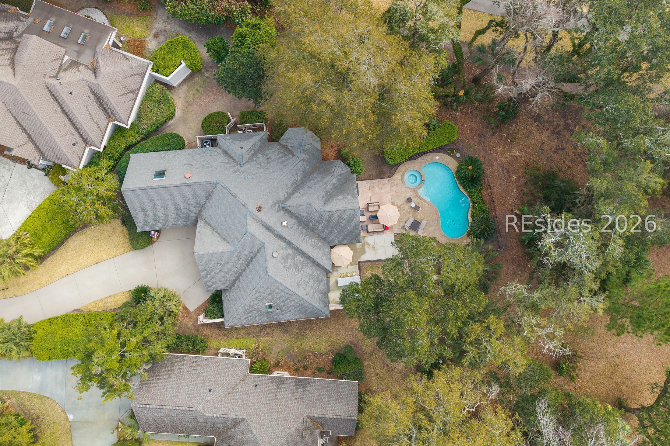 Perfectly located near the Country Club of Hilton Head, a boat club, and the back gate of Hilton Head Plantation. Enjoy outdoor living with mature live oak views overlooking the 10th hole of the Country Club of Hilton Head golf course, plus a private heated pool and spa. Situated on a quiet cul-de-sac, this home offers desirable one-level living with 3 bedrooms and 2.5 baths. A dual-sided fireplace connects the formal living room and family room. Upstairs features a bonus room and an expansive walk-in attic with excellent storage and future expansion potential.