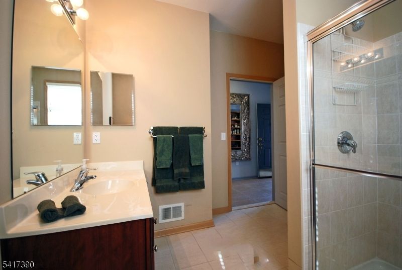 Finally, a RIESLING Villa (end location) is available in this 55+ PREMIER GATED COMMUNITY! Everything you need is on one level filled with windows and natural light. An artistic touch is evident throughout this home complemented by the architecturally pleasing ceilings. An impressive primary bedroom suite w/two walk-in closets, sitting area & luxurious bathroom w/jetted tub. Featuring upscale lighting, built-in shelving, custom blinds, solid wood Murphy bed & wardrobe closet, two-car garage w/storage and balcony w/sunset views. Resort style living with a 25,000 sq. ft. clubhouse w/the BEST amenities: indoor & outdoor pool, tennis/pickleball, card rooms, Mahjong, putting/driving, fitness center, grand ballroom, clubs, activities & more. Bordering Montclair with terrific restaurants, shops & boutiques. Very short distance to NYC Bus & Train Station. A delightful lifestyle is here to enjoy!