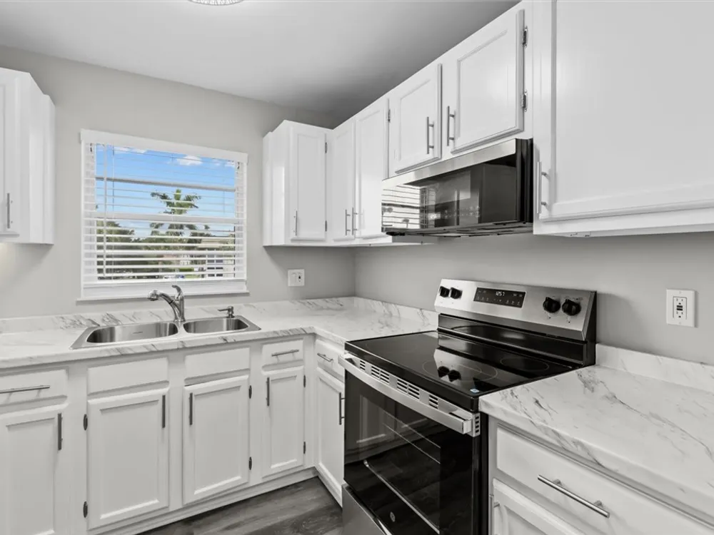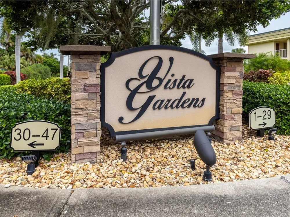 Wonderfully updated 2/2 2nd floor corner unit in Active 55+ Vista Gardens Community. New LVP & Carpet throughout. White kitchen with pass-through to dining area, new fixtures & new paint inside. Balcony overlooks the front garden area and has additional storage unit on the screened balcony. This unit is Move-In Ready! This is a Fannie Mae HomePath property.
