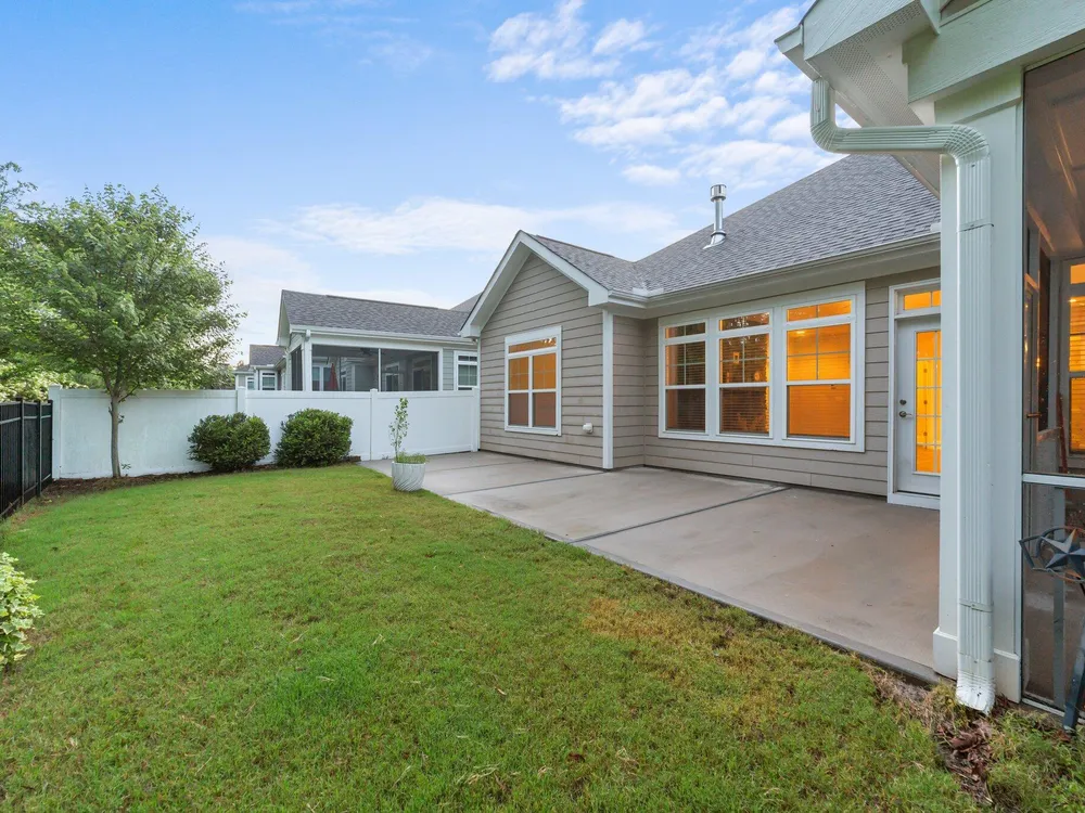 Step into style in this beautifully designed 3 bed 3 bath home featuring thoughtful upgrades throughout.Main level includes spacious primary suite w/zero entry tiled shower for ease & accessibility plus an office/study ideal for remote work or quiet reading.The heart of the home is the oversized kitchen island perfect for entertaining with stylish backsplash & modern appliances.A striking stone fireplace adds warmth & character to this open concept plan.Upstairs has bonus rm along w/private bedrm & full bath ideal for guests or media space.Enjoy outdoor living year round w/screened porch,expansive patio & fenced yard-great for gatherings! ALL NEW INTERIOR PAINT 9/2025! Lawn maint. is included!Just a minute from the new Flowers Plantation Waterfront District!Up to $2500 lender credit w/First Home Mortgage!